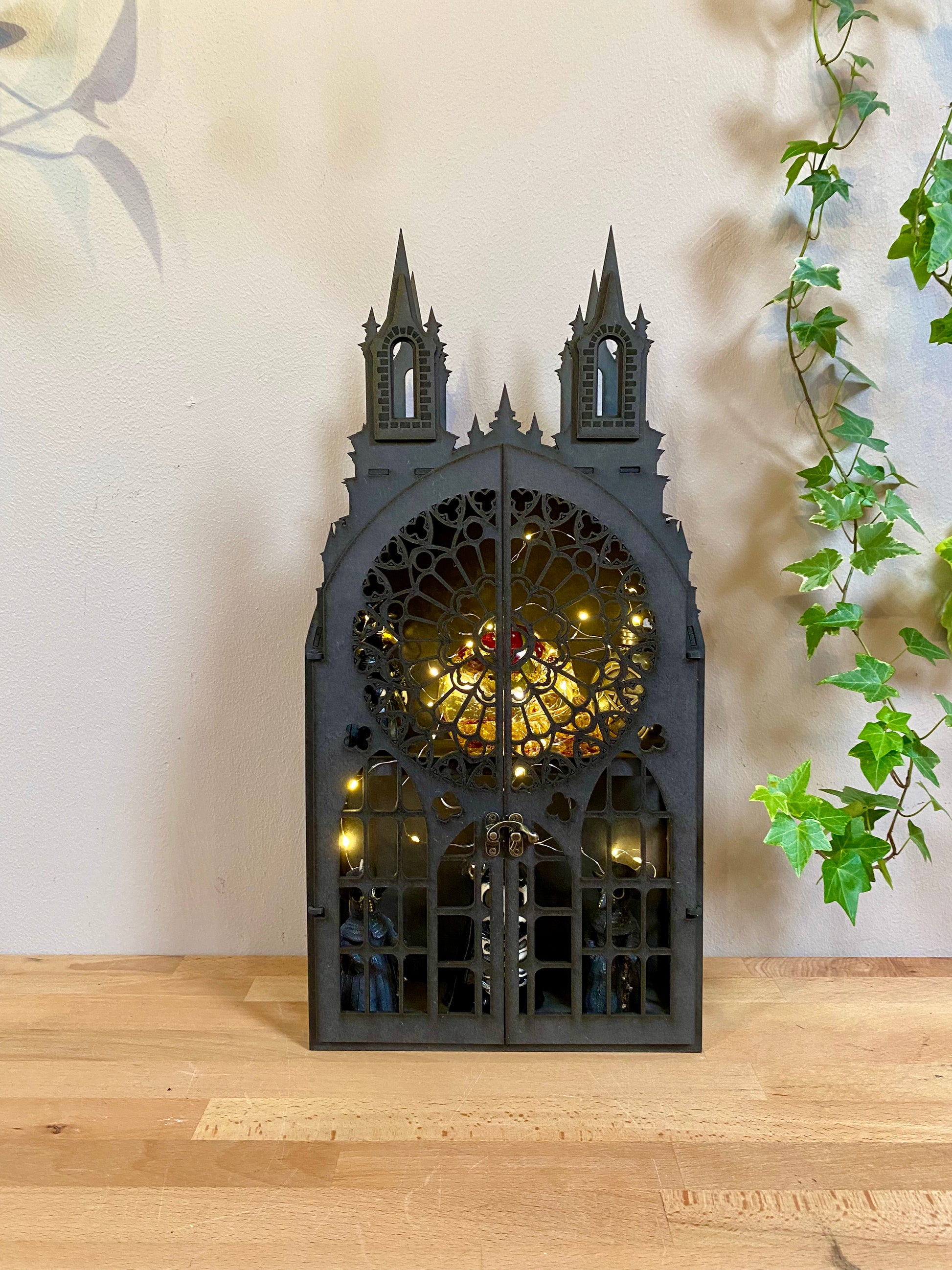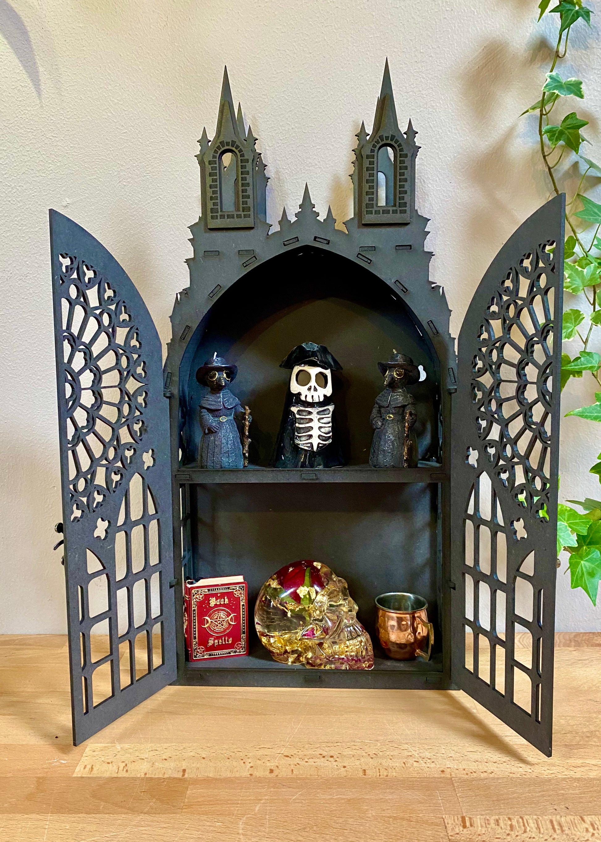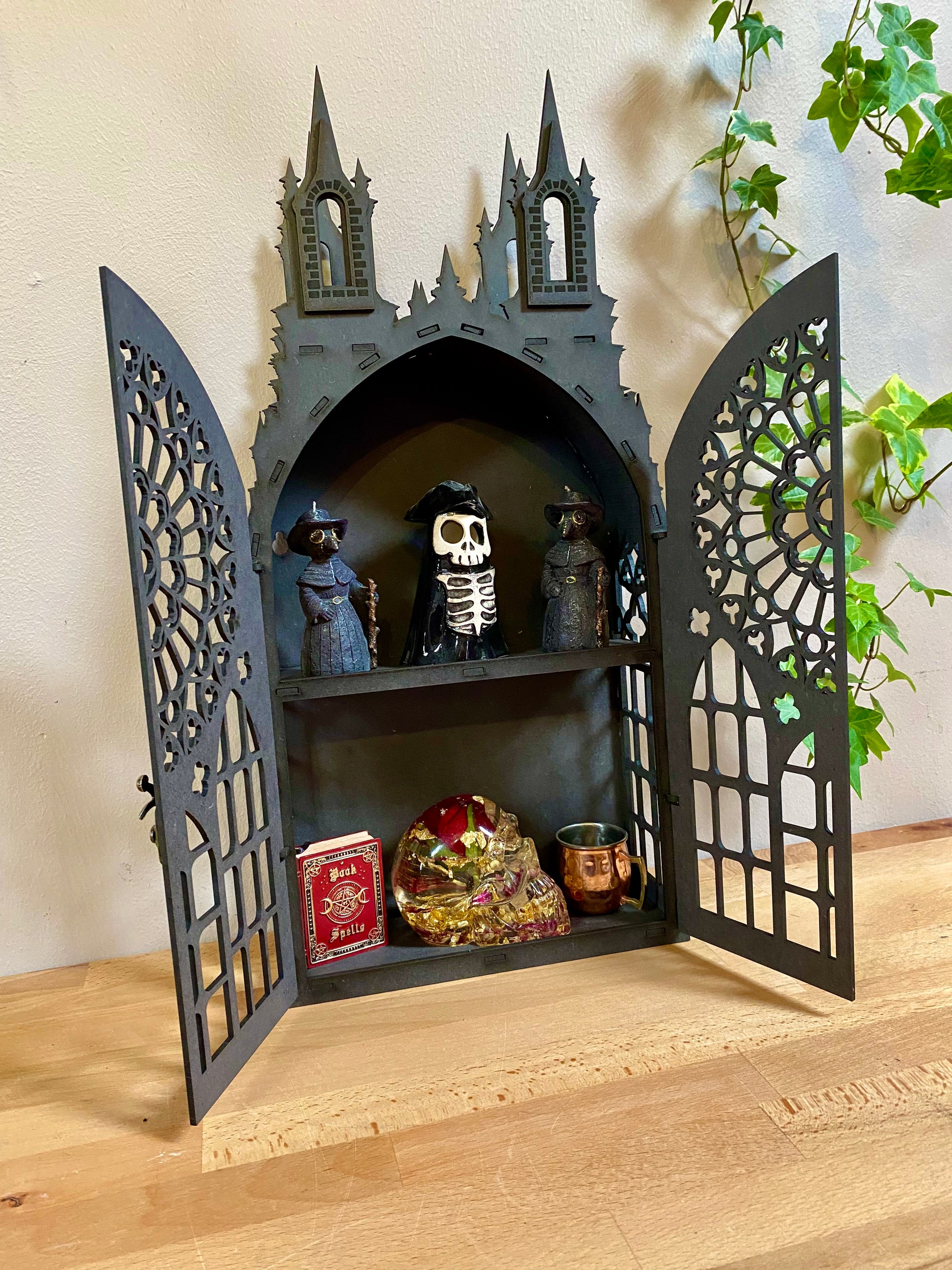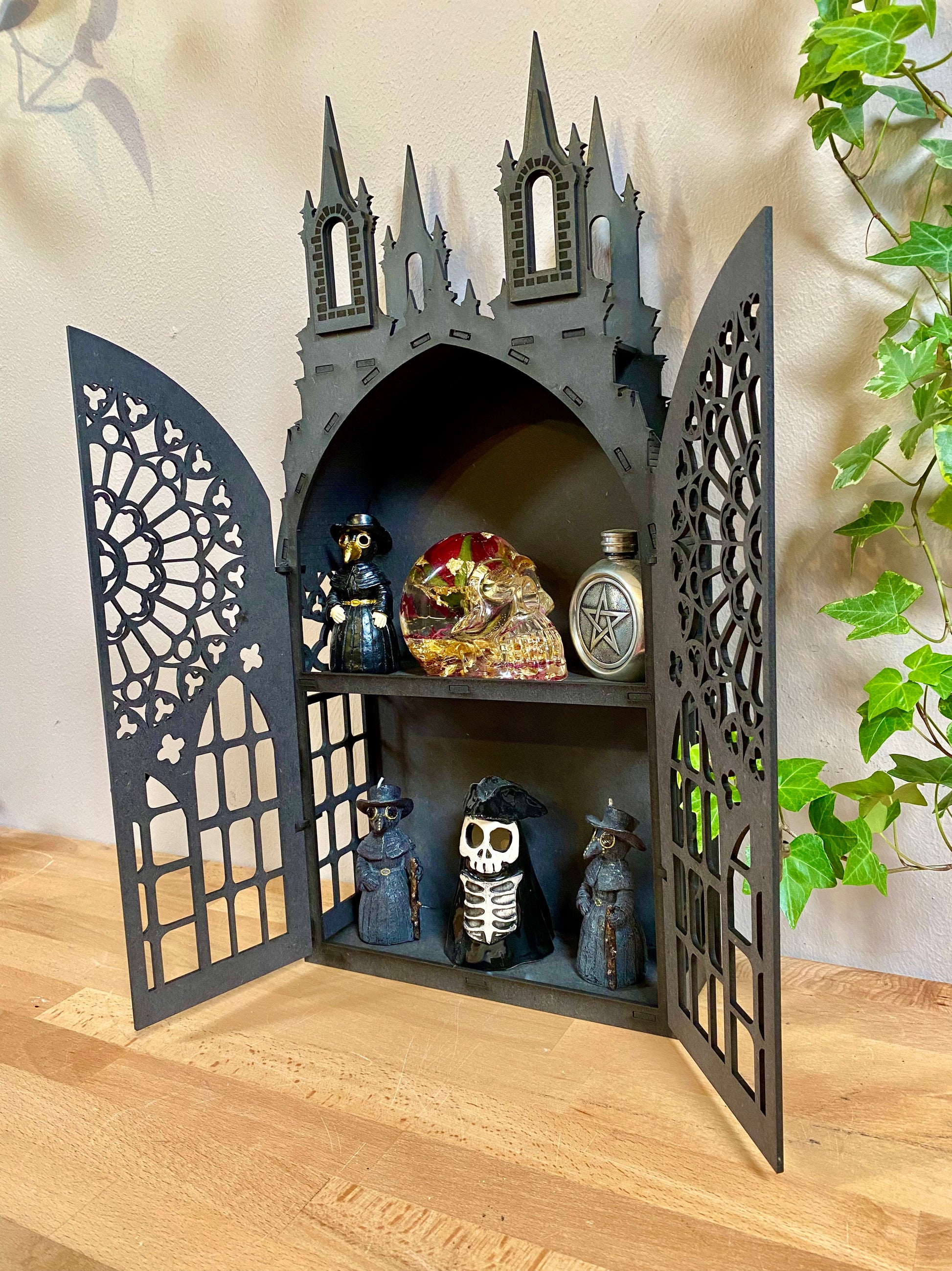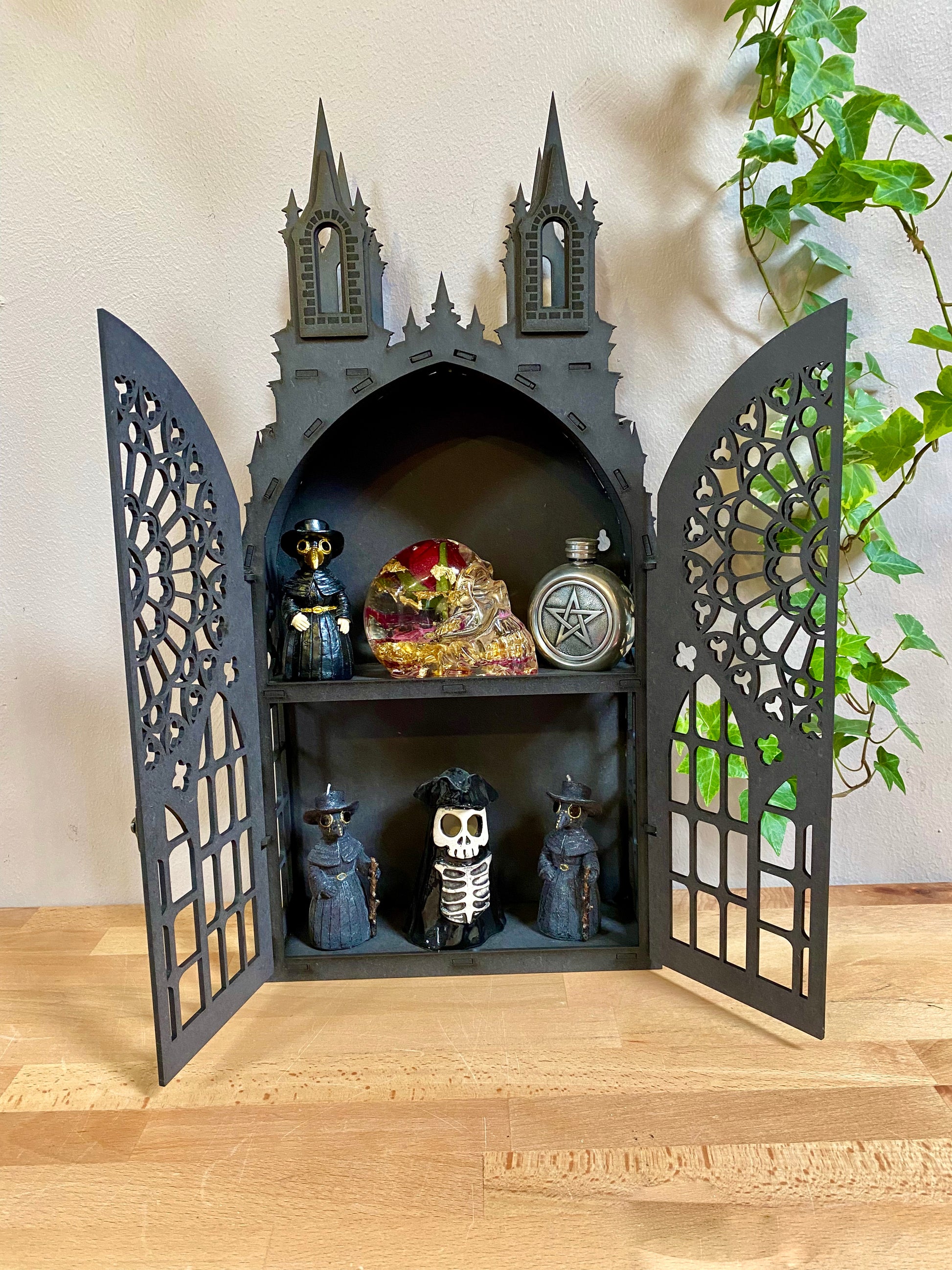 These units are designed to display your precious crystals, prized dark trinkets, and your treasured dark collections. They are made from 3mm Black MDF, so there is no need to paint.