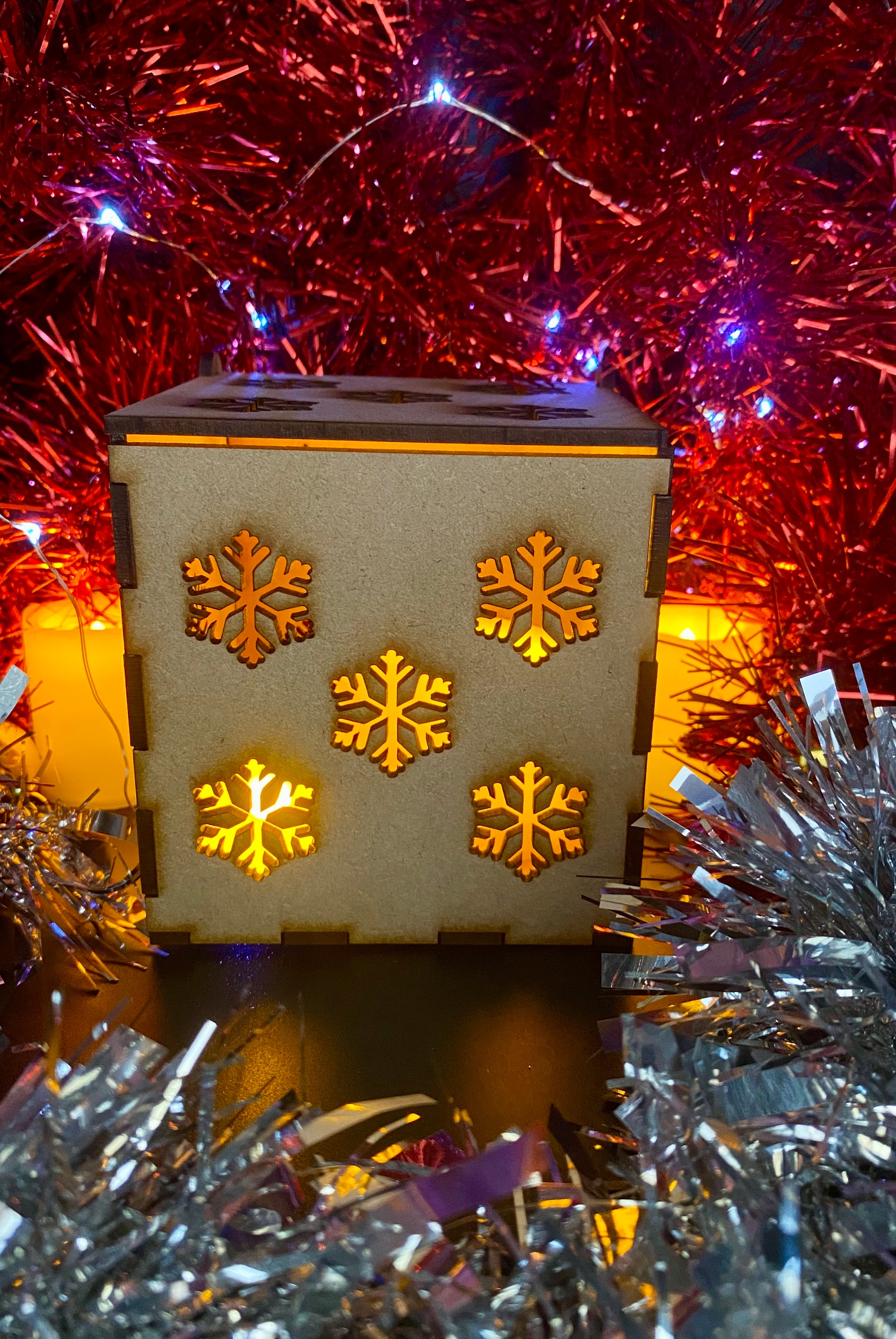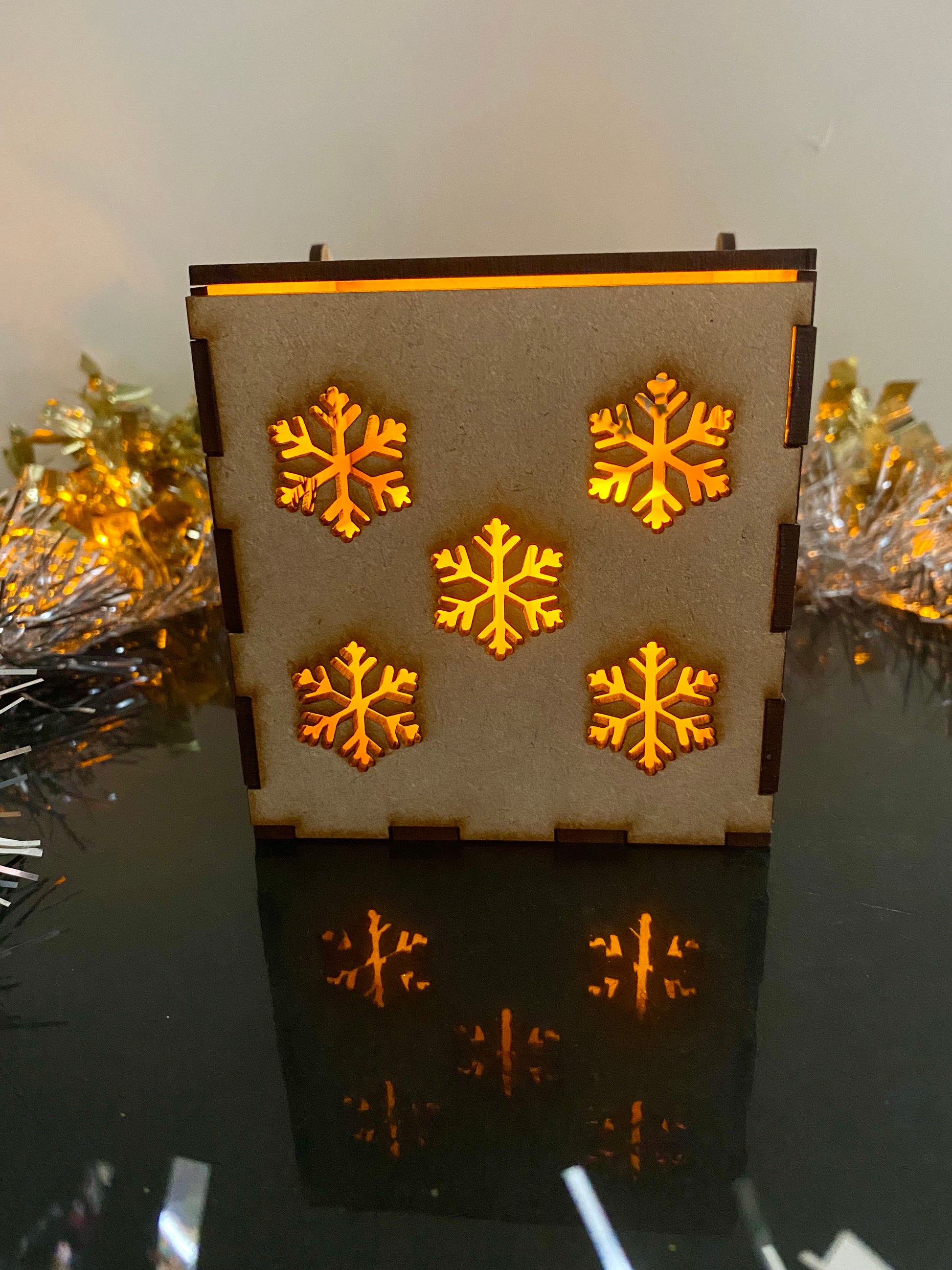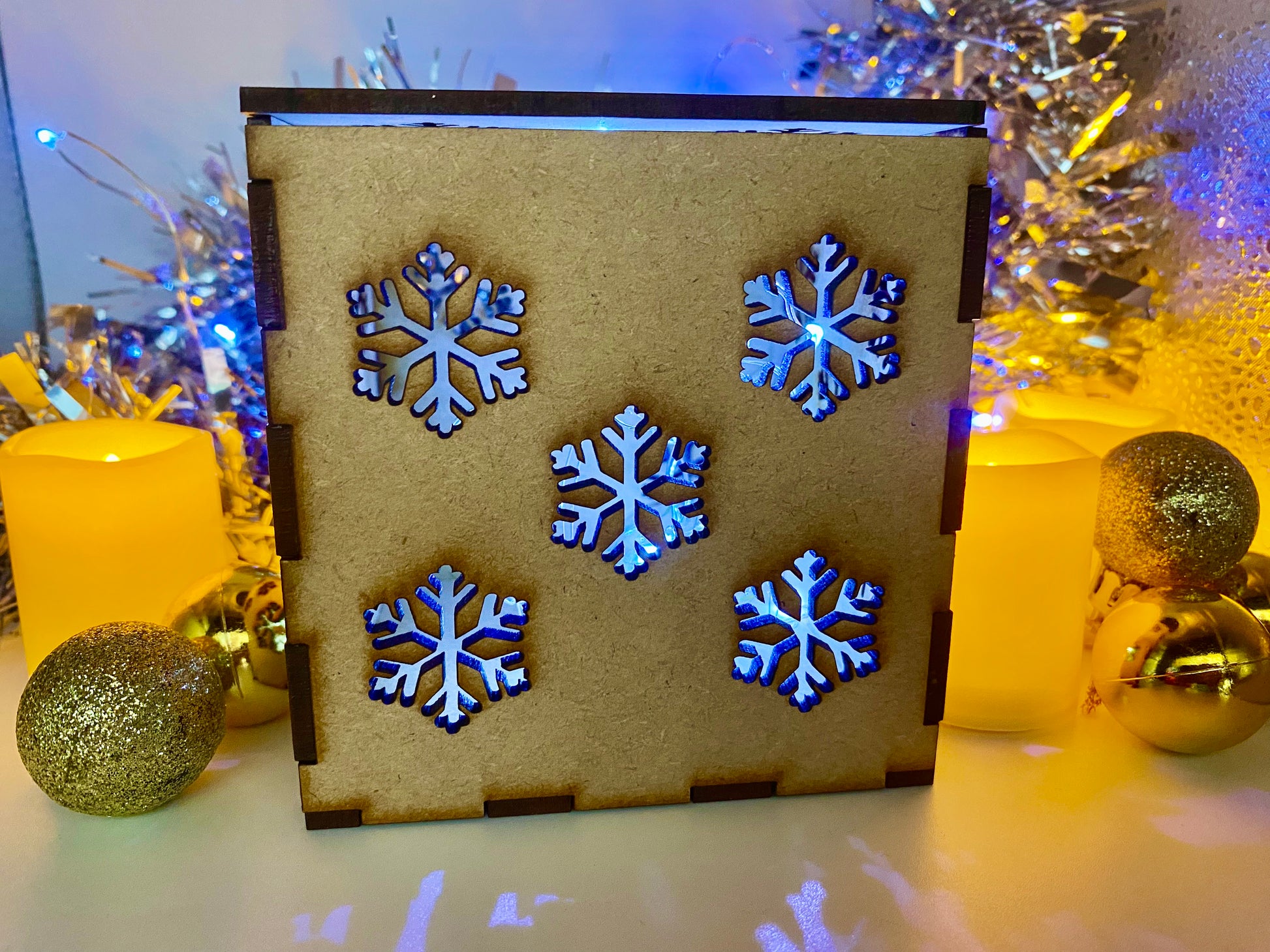 Snowflakes MDF Night Light Craft Kit - 3D Ornate MDF Shadow Box with Snowflake Cut-outs