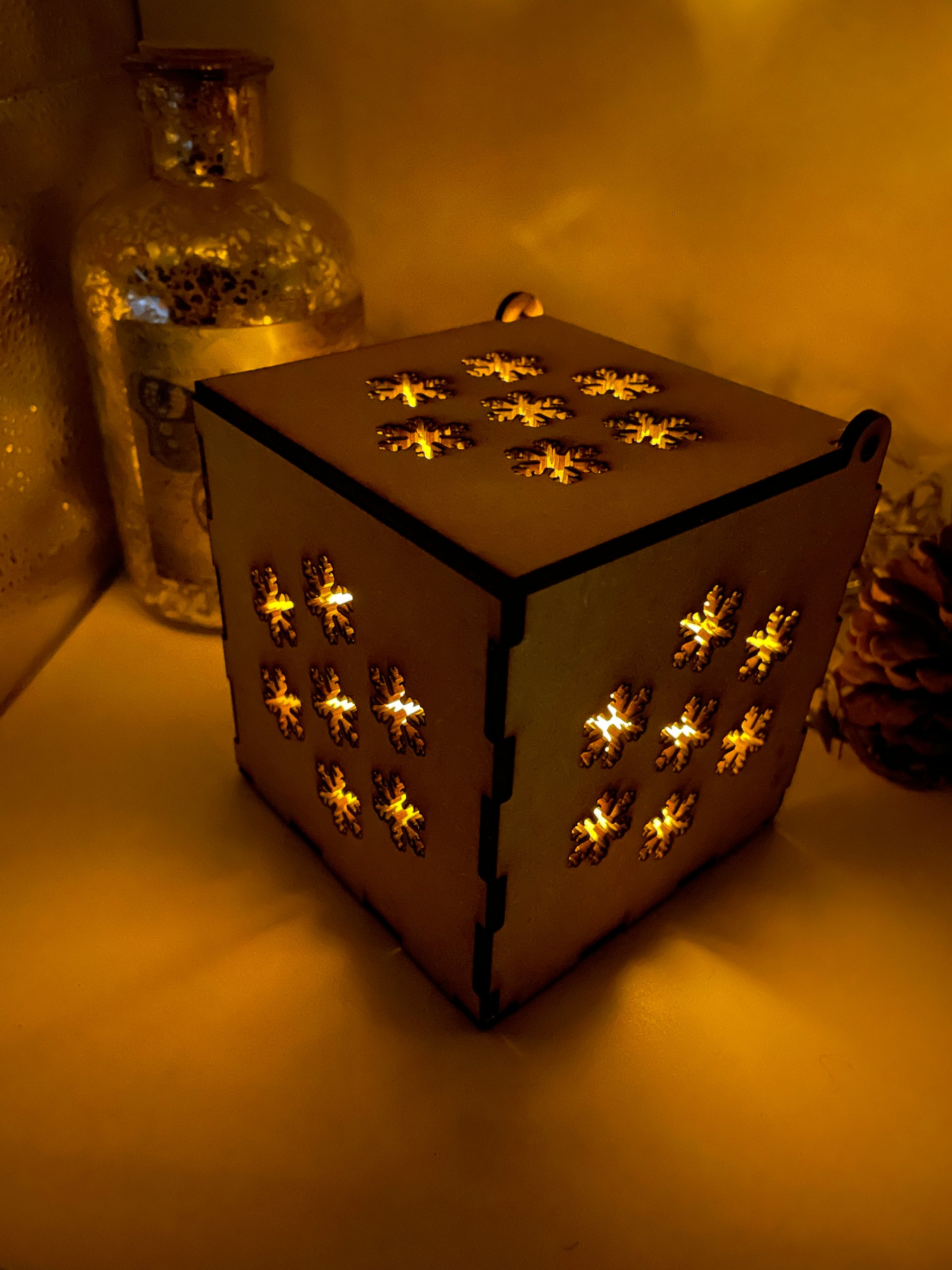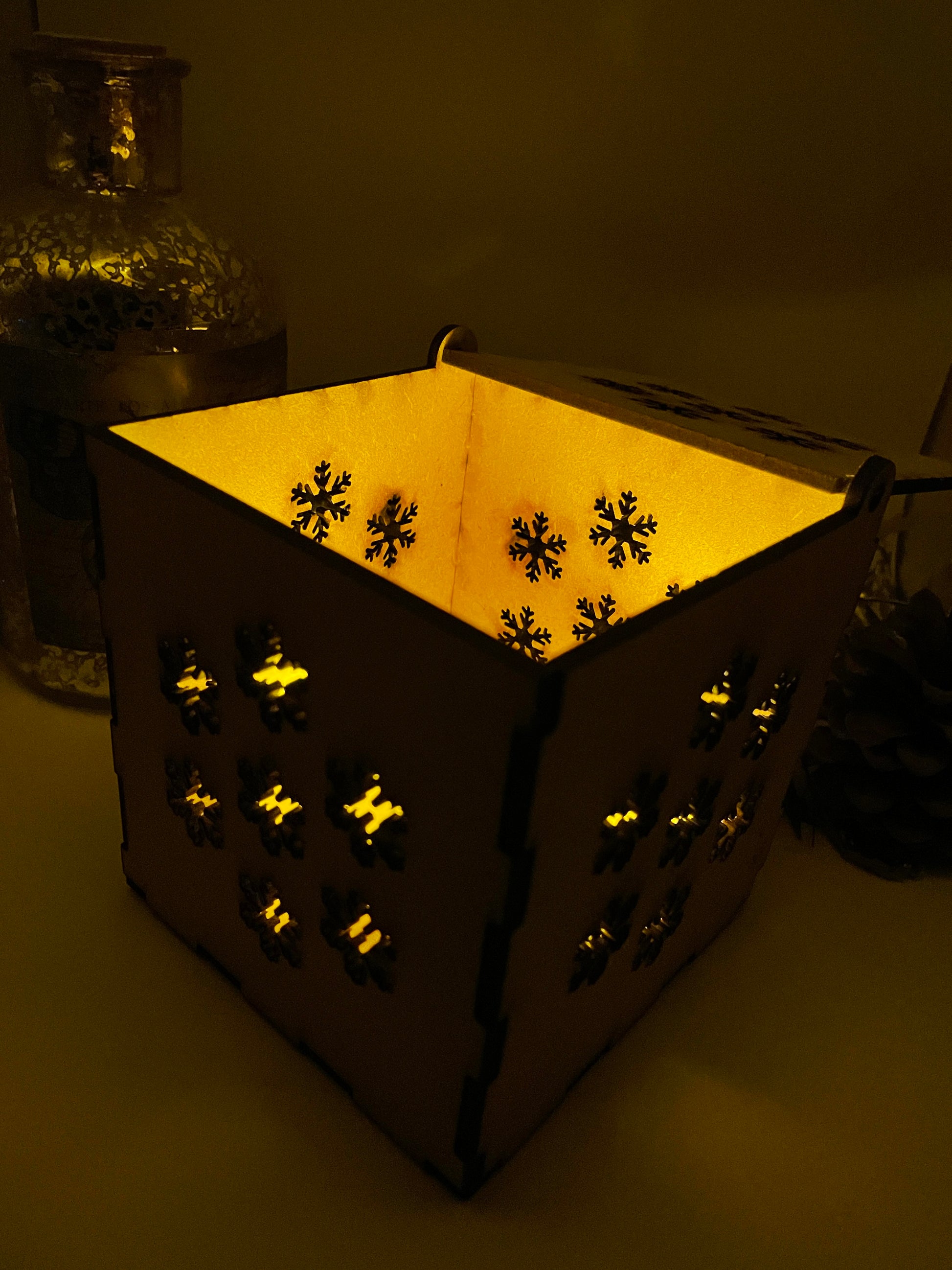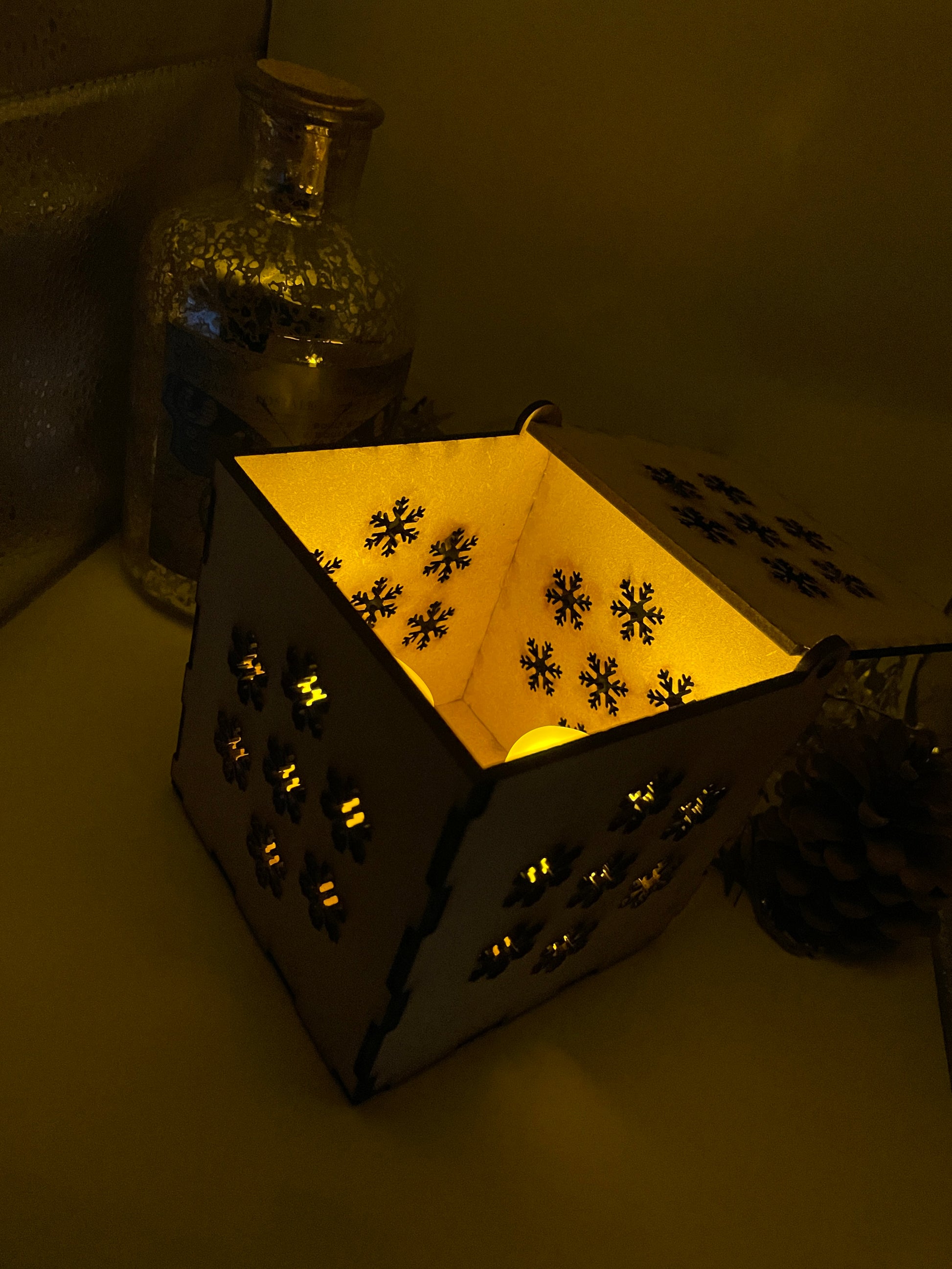 By housing battery-operated candles inside it throws shapes around your room! Decorate it to your tastes using pens, paints, glitter, gems, etc. The box has a solid base and an easy-opening lid. You will need to assemble and glue it together once you have decorated it. We only recommend you use battery-operated candles in these boxes and not real candles as they are made from MDF wood and if you paint or varnish them they could become highly flammable.