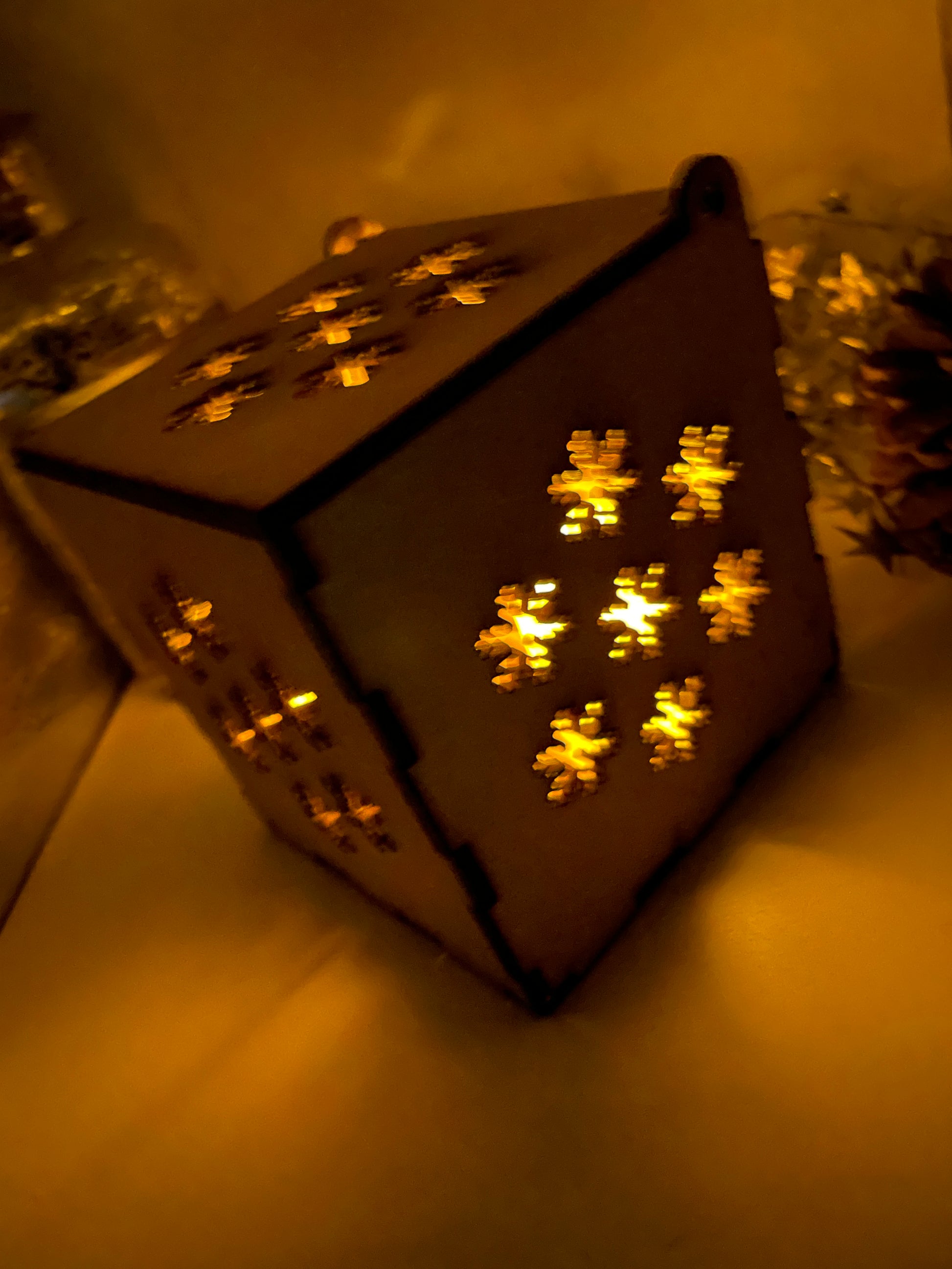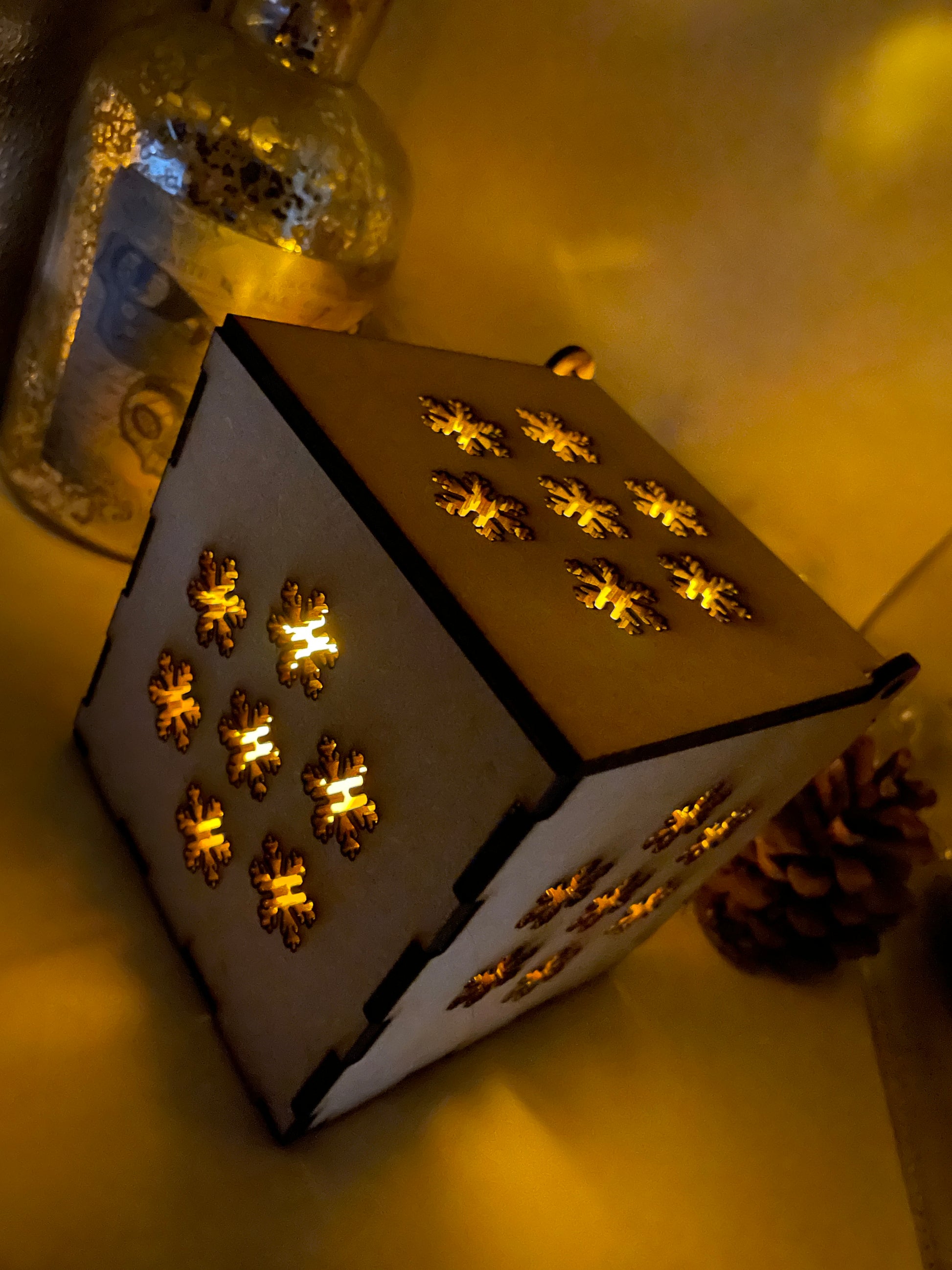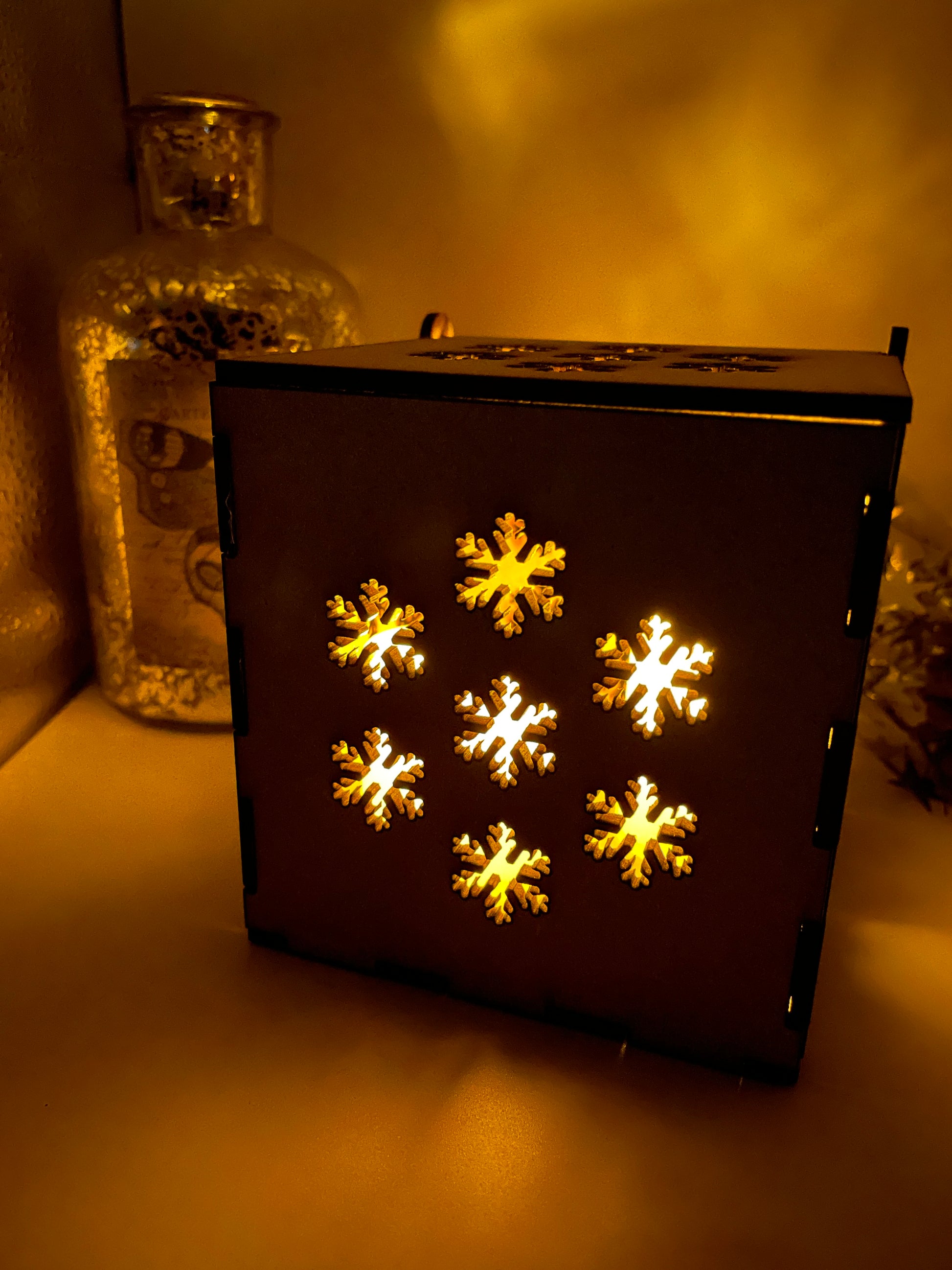By housing battery-operated candles inside it throws shapes around your room! Decorate it to your tastes using pens, paints, glitter, gems, etc. The box has a solid base and an easy-opening lid. You will need to assemble and glue it together once you have decorated it. We only recommend you use battery-operated candles in these boxes and not real candles as they are made from MDF wood and if you paint or varnish them they could become highly flammable.