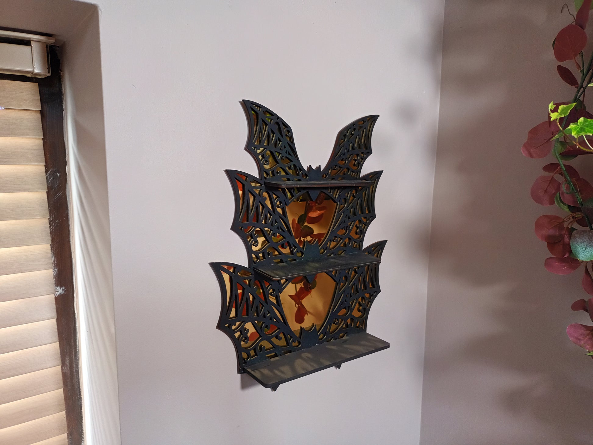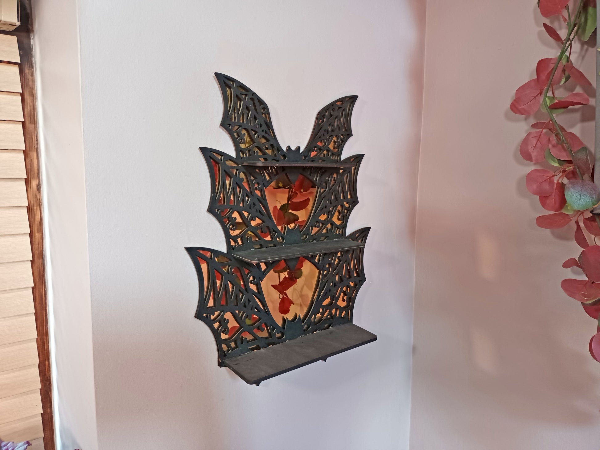 Bat Shelf Mirror, Gothic Display Shelf, Gothic Décor, Gothic Storage, Gothic Shelving, Crystal Show Shelf, Crystal Display Shelf