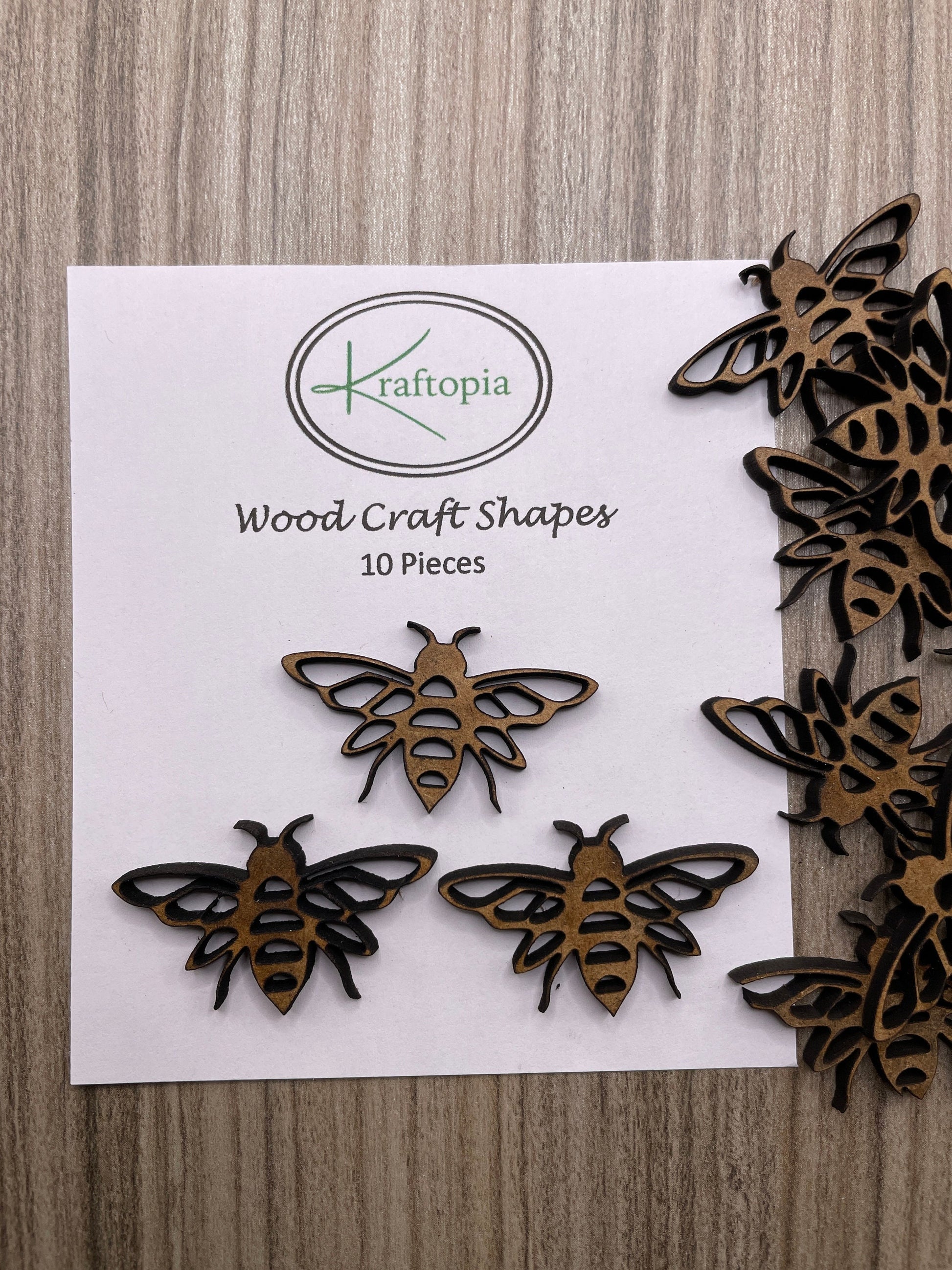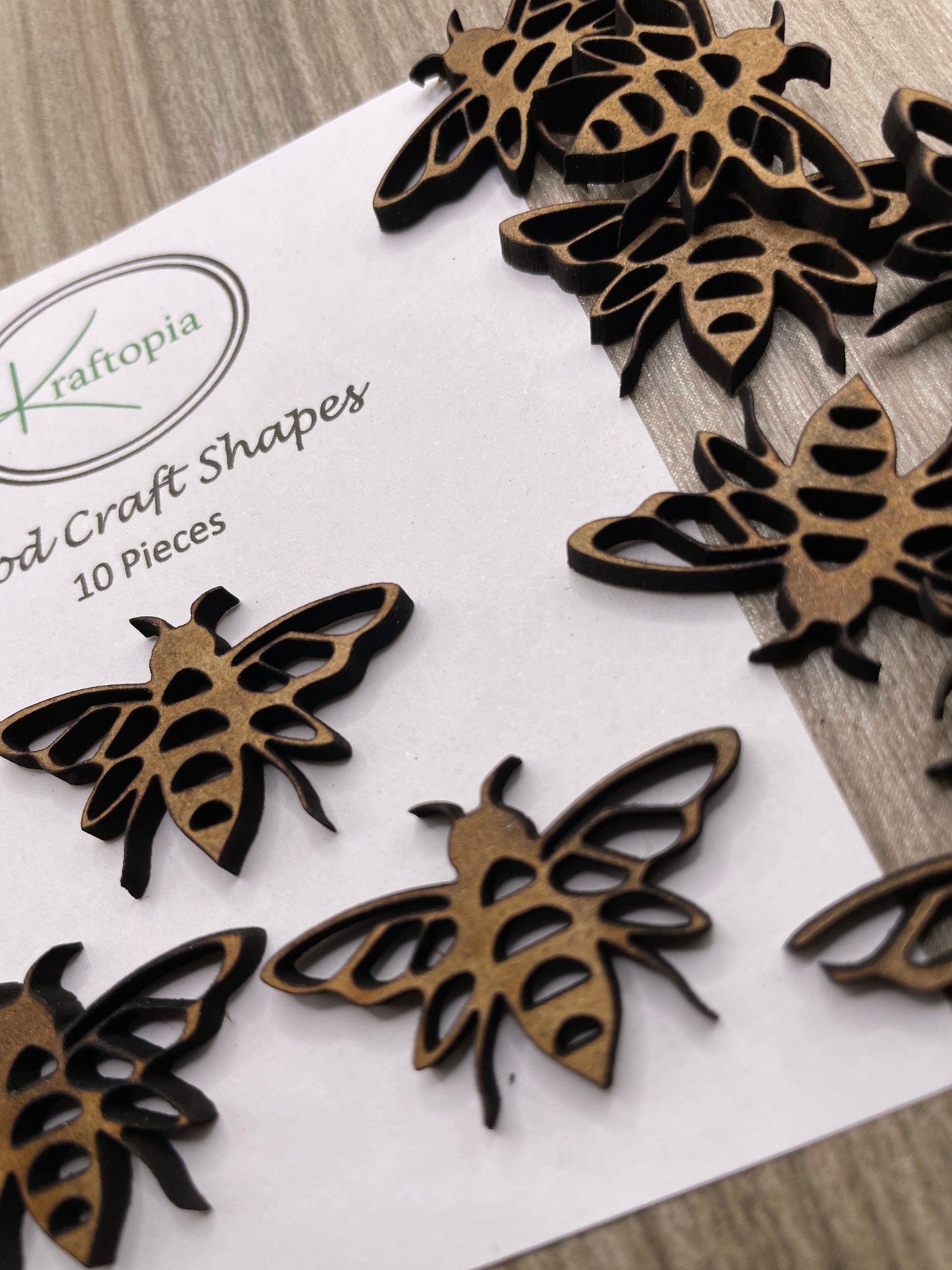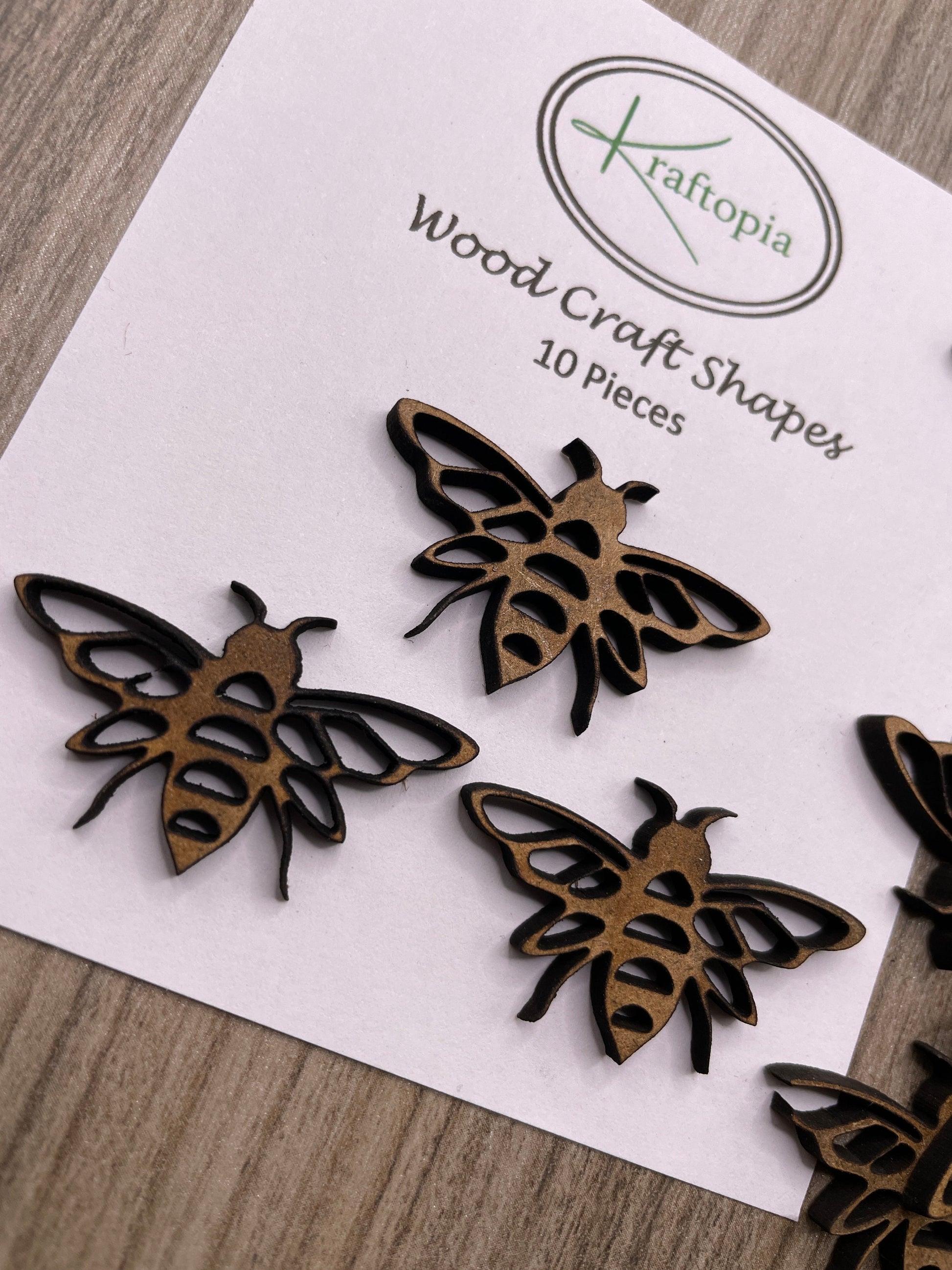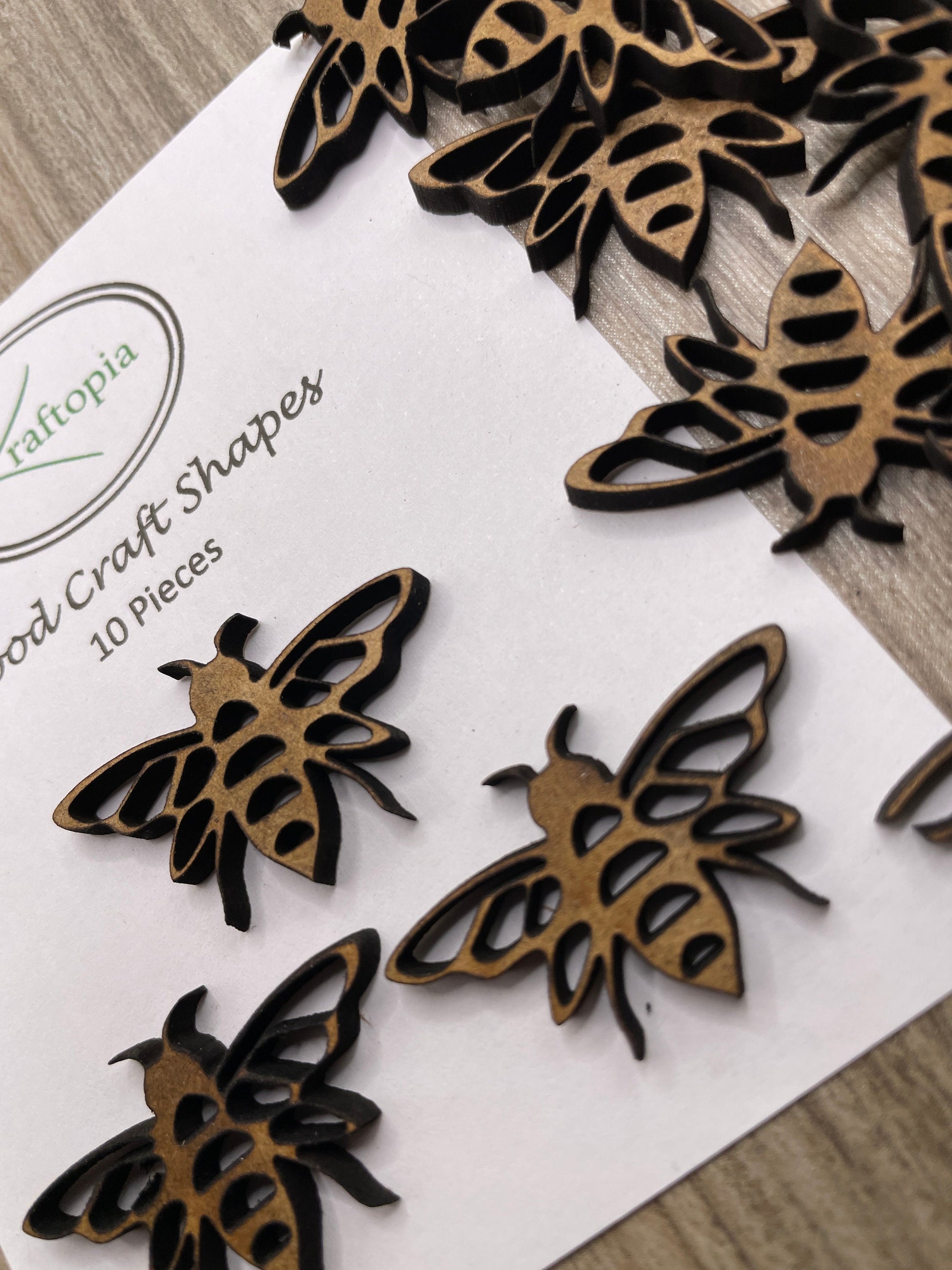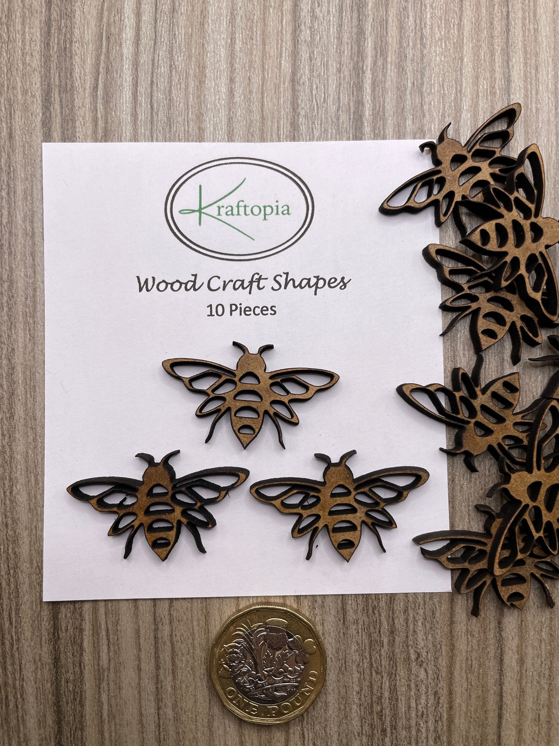 A pack of 10 MDF Bee MDF Craft Blanks or Craft Shapes - Pack of 10 which are perfect for craft projects and jewellery making.