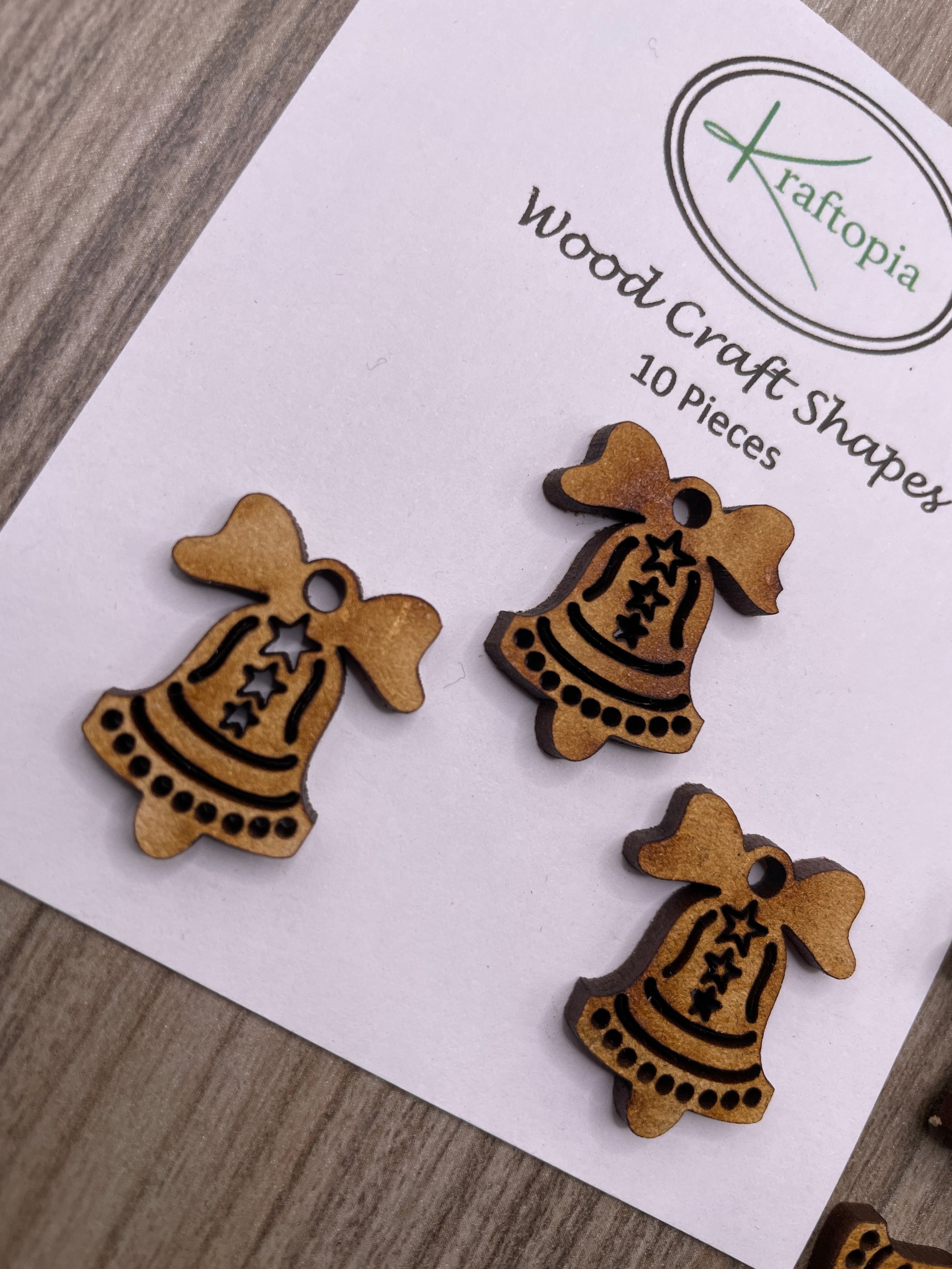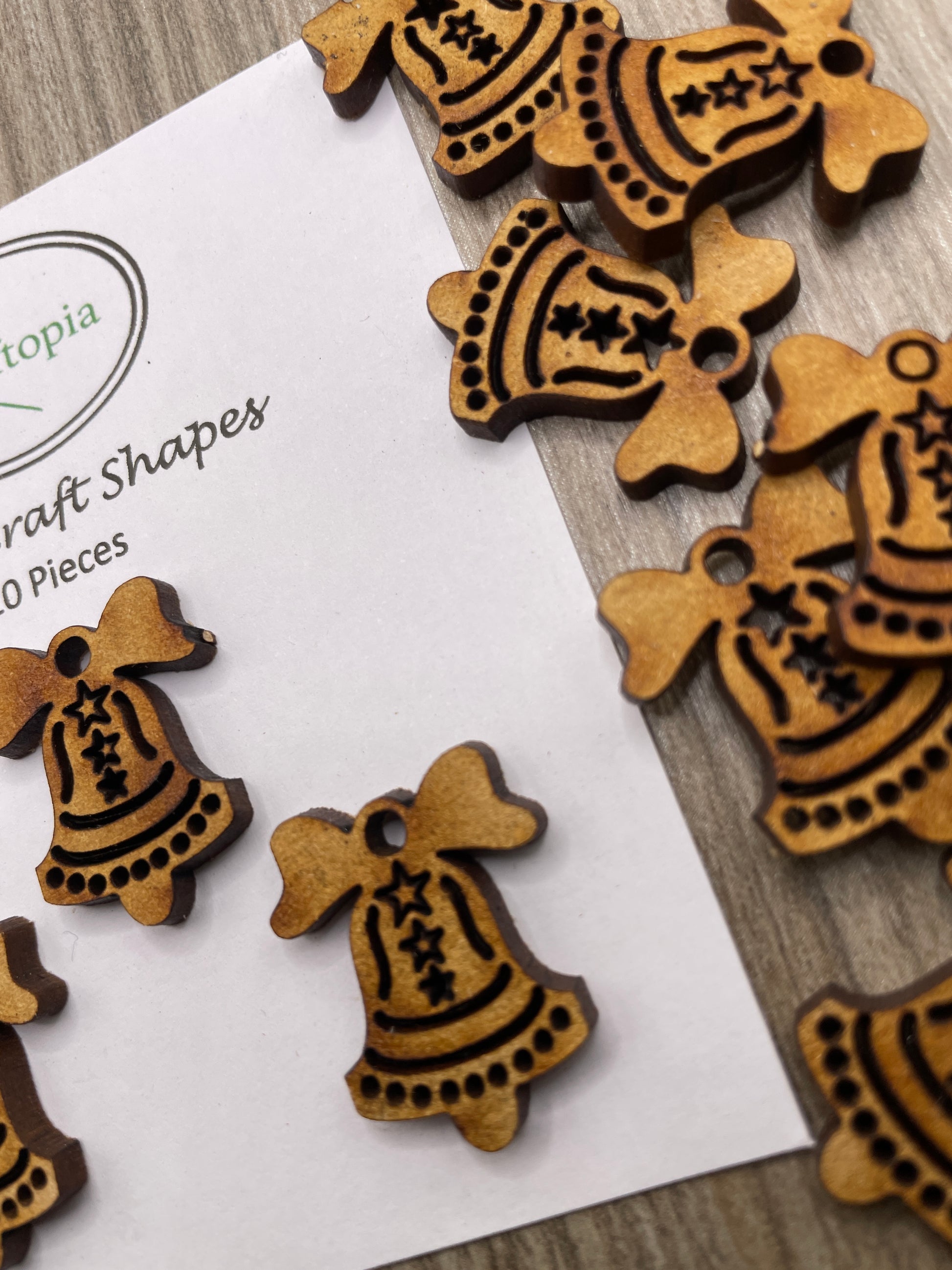 Christmas Bell MDF Pendant Craft Blanks - Pack of 10 / MDF Shapes / Cabochons / Earring Blanks For Jewellery Making