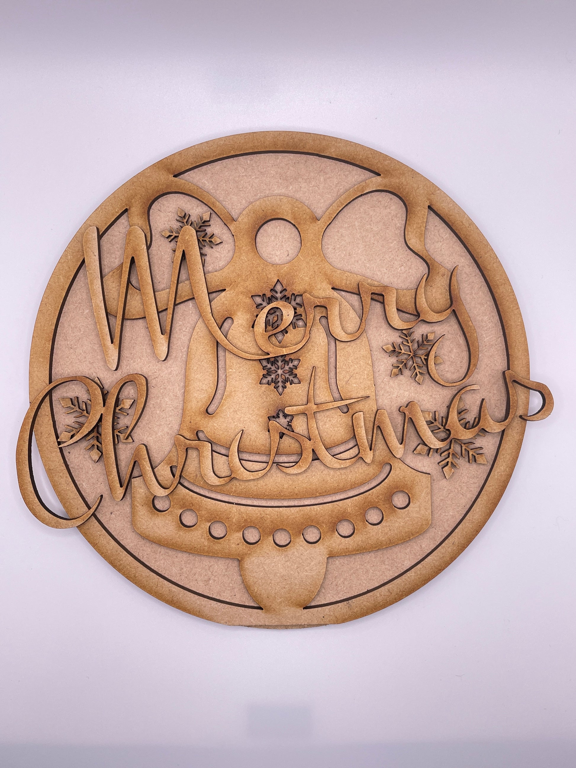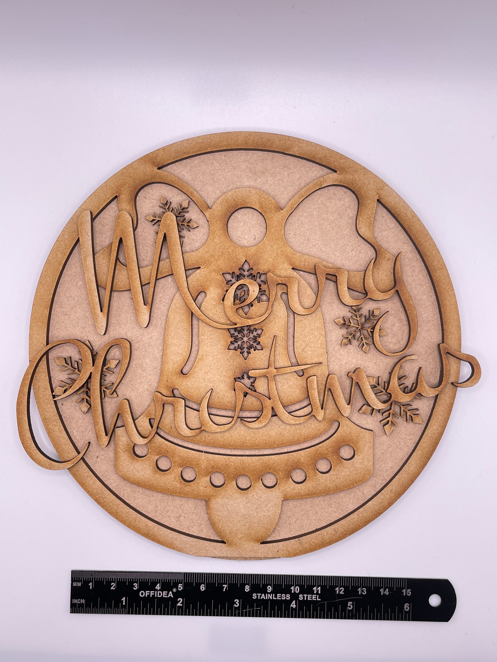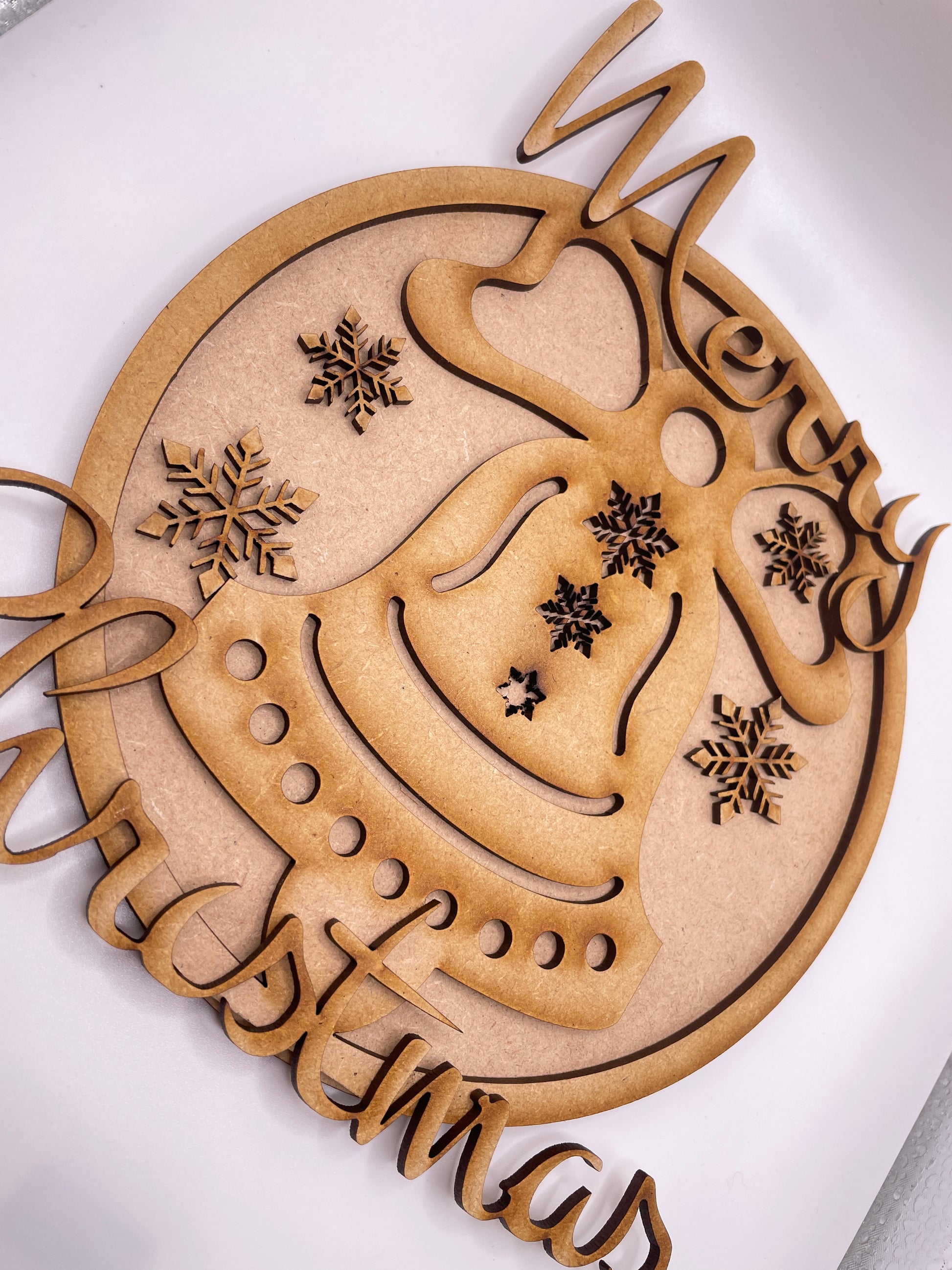 Christmas Bell with Merry Christmas 3d MDF Layered Plaque