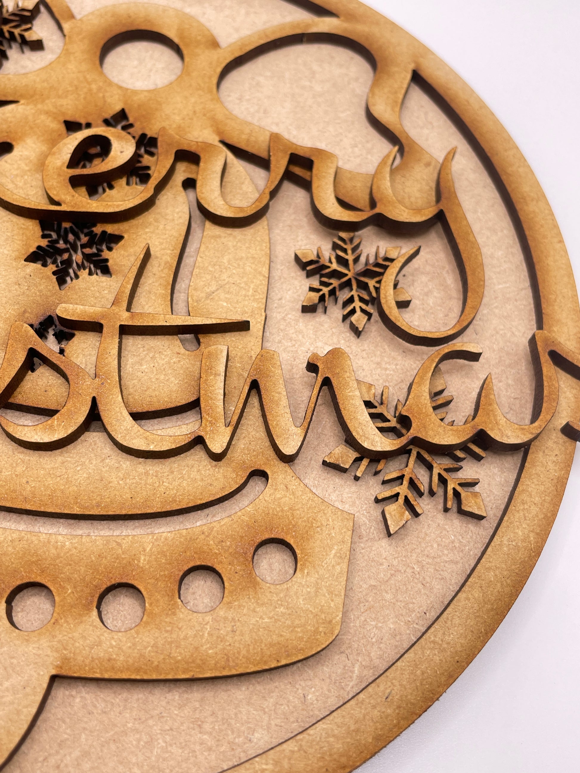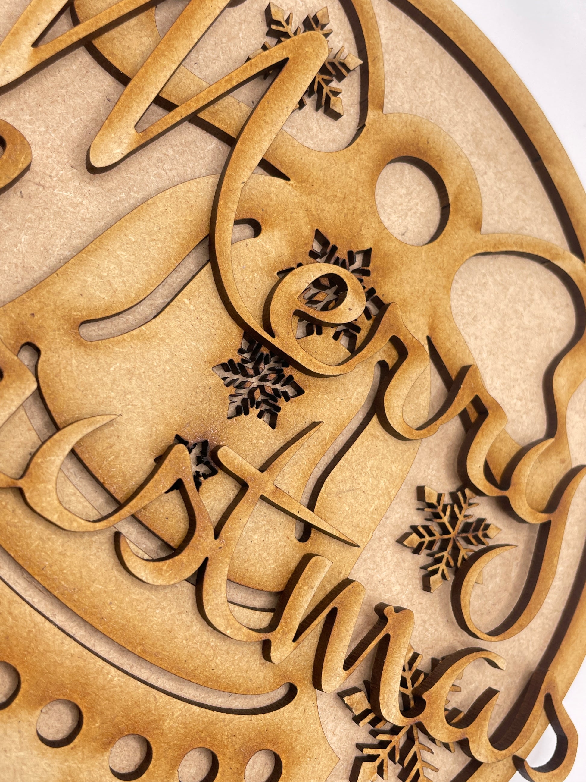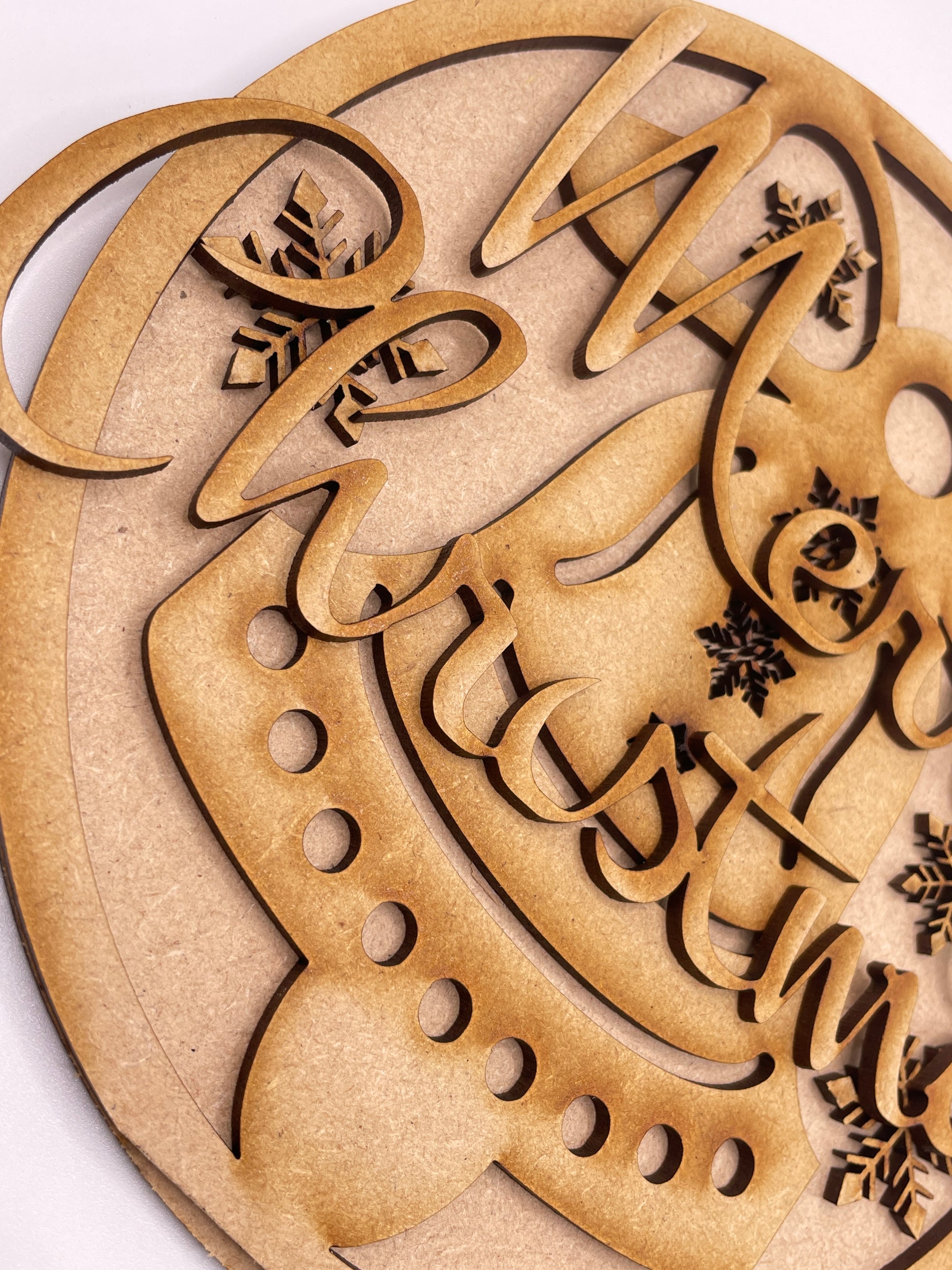 Christmas Bell with Merry Christmas 3d MDF Layered Plaque
