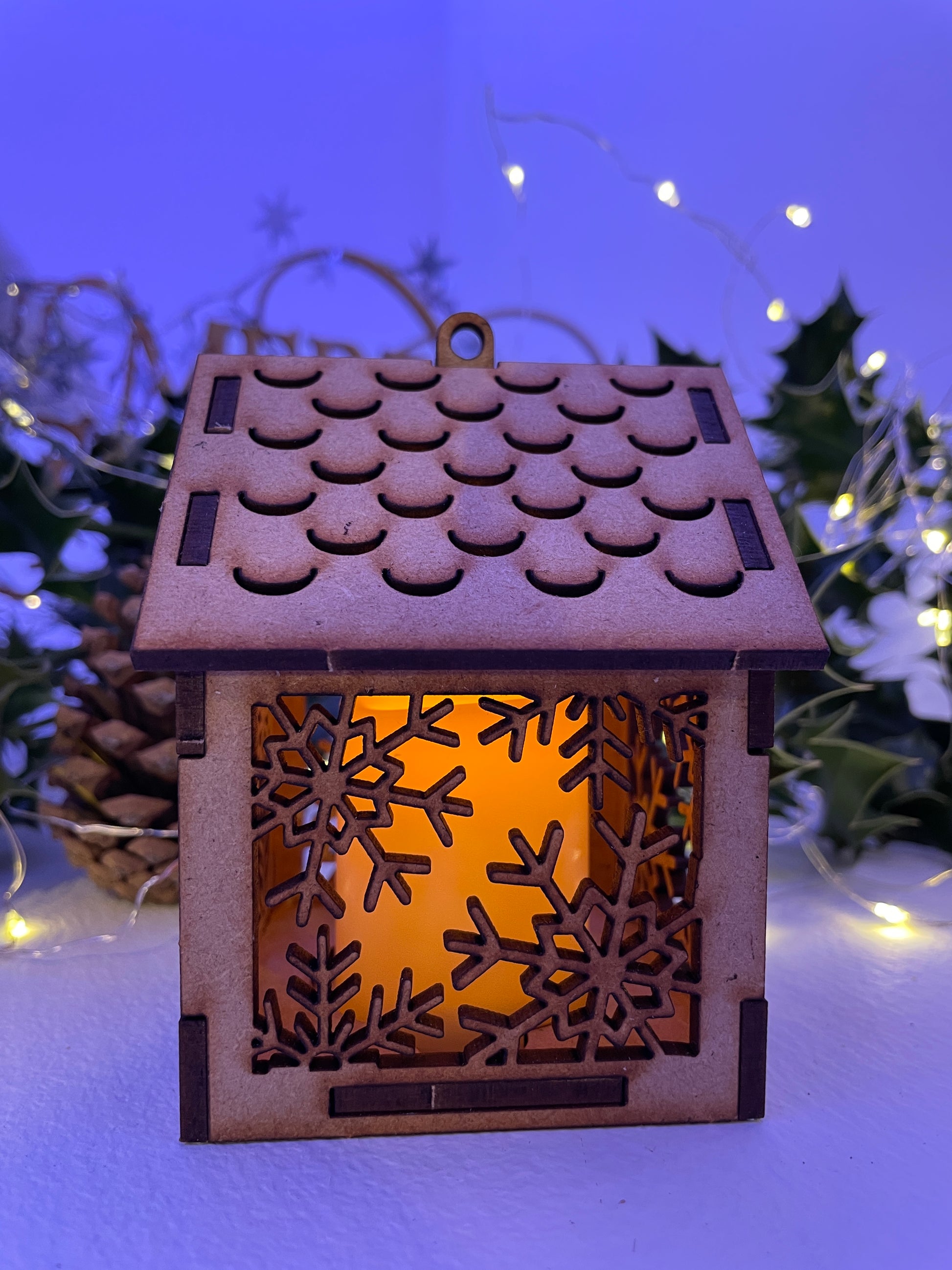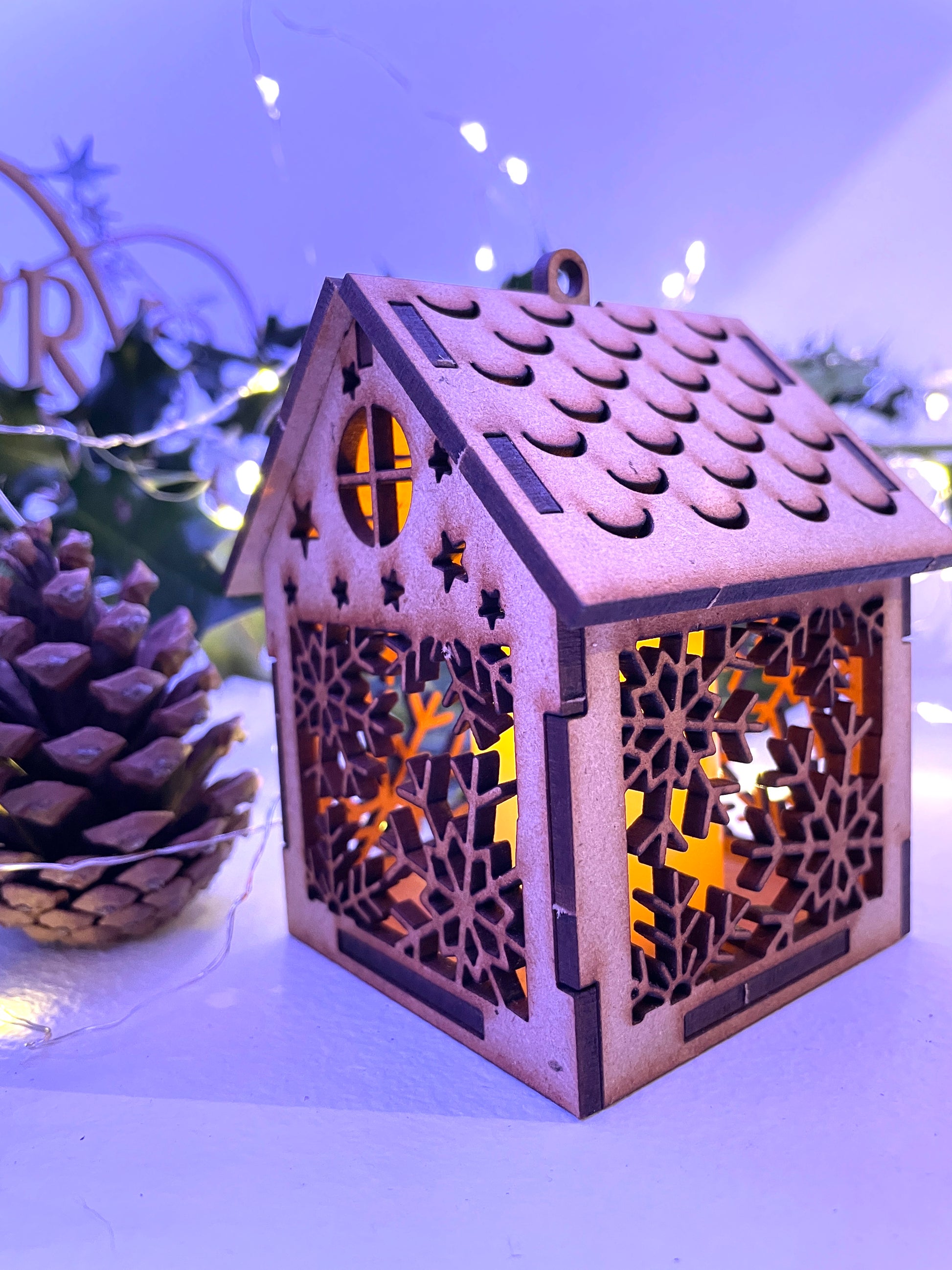 How cute are these!!! These cute wooden hanging houses look stunning on your Christmas tree. They all have a hanging hole at the top to hang them and there is a small twist opening at the bottom to allow you to add a battery-operated candle or string of LED lights so it will light up and create a warm gentle glow in the evenings.