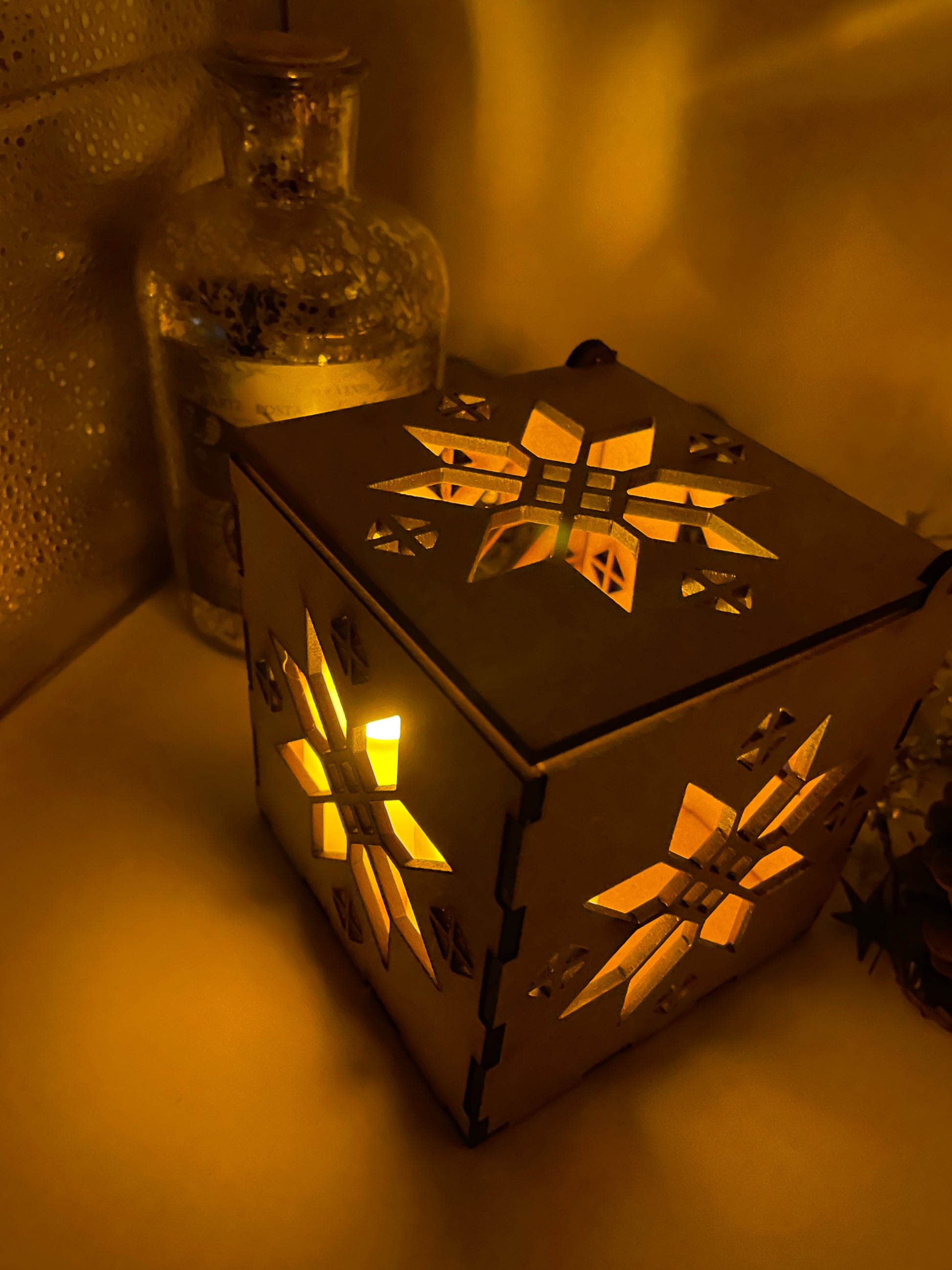 Decorate it to your tastes using pens, paints, glitter, gems etc. The box has a solid base and an easy-opening lid. You will need to assemble and glue it together once you have decorated it. We only recommend you use battery-operated candles in these boxes and not real candles as they are made from MDF wood and if you paint or varnish them they could become highly flammable.