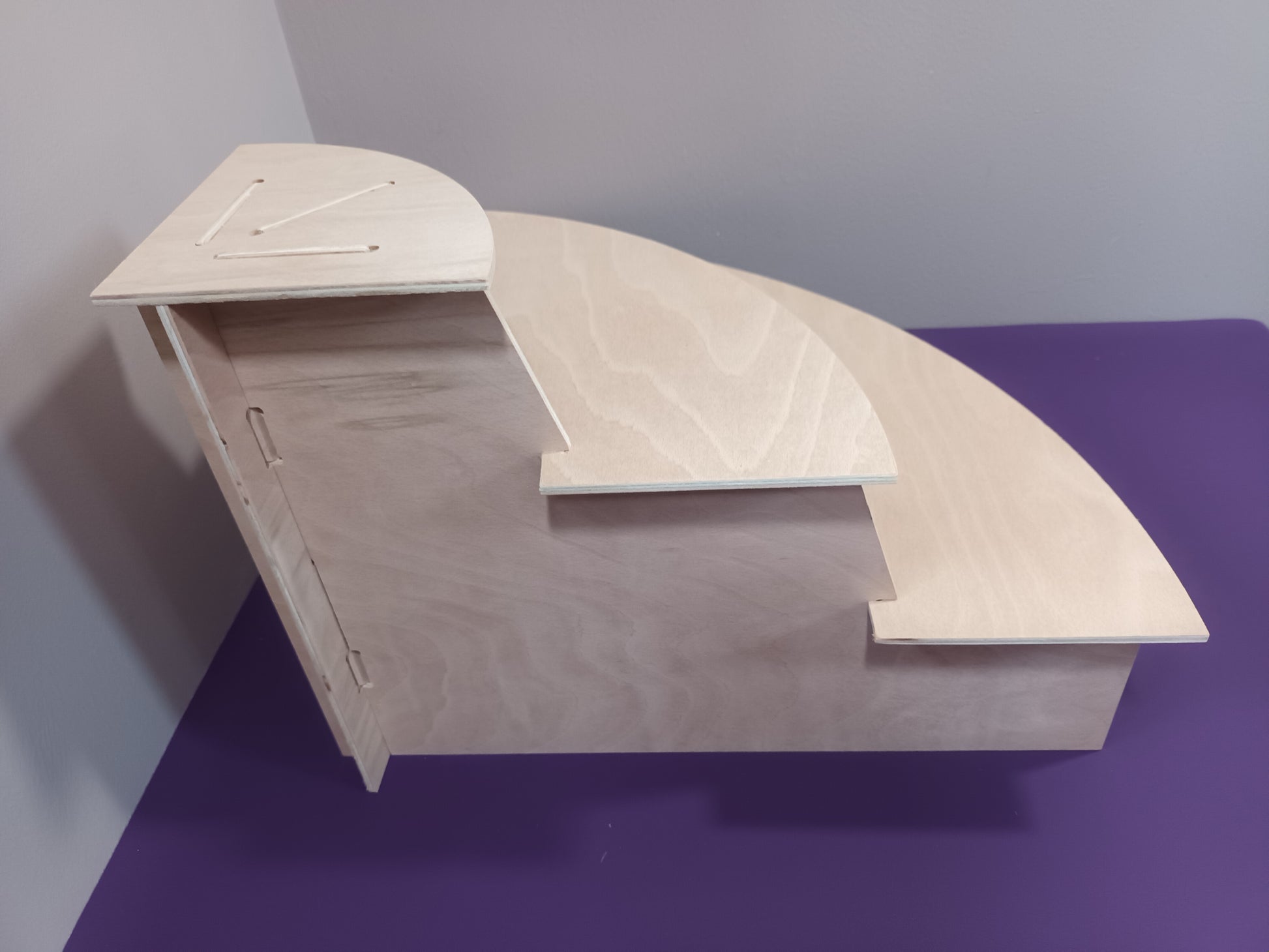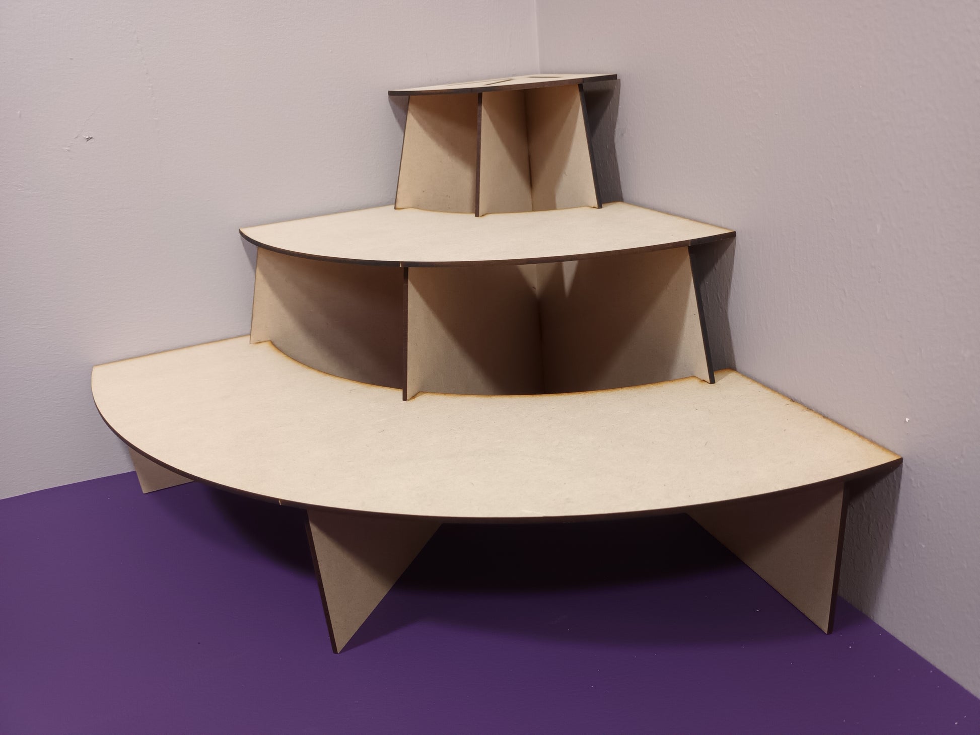 The Large Stand is made from 6mm ply. The lower shelf measures 640mm total width x 150mm deep x 120mm high.