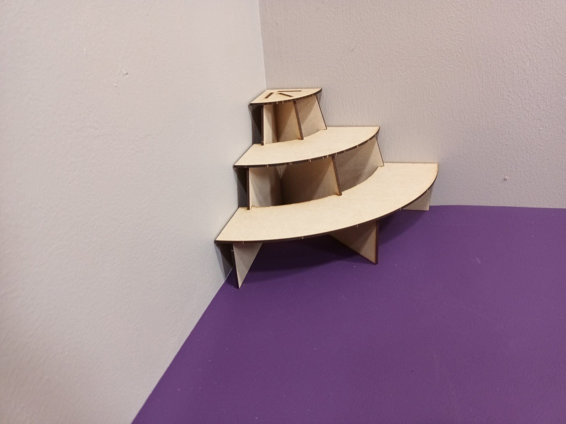 The small stand is made from 3mm MDF. The lower shelf measures 320mm total width x 75mm deep x 75mm high.