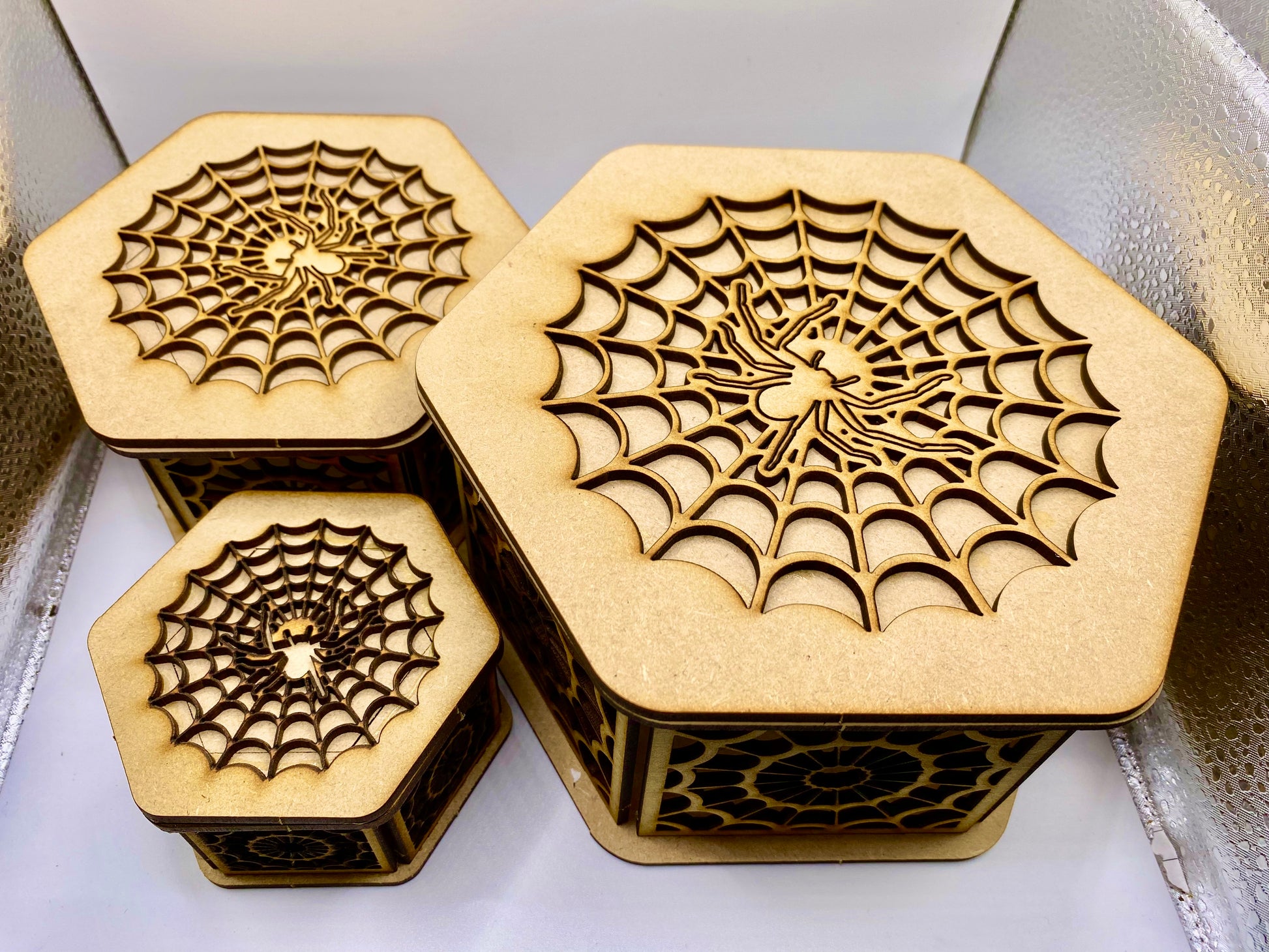 Cobweb Pattern Trinket Storage Boxes MDF Craft Kit