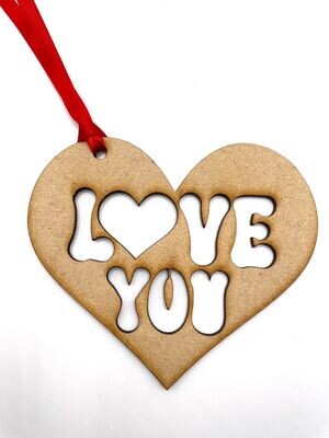Valentine Heart Hanging Ornament/Decoration - Love You - Unique Keepsake Gift