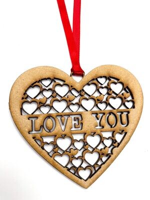 Valentine Heart Hanging Ornament/Decoration - Ornate Love You - Unique Keepsake Gift