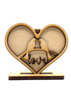 Stunning MDF Valentines Heart Ornament/Decoration lovebirds keepsake gift. The perfect token for someone special this Valentines Day!