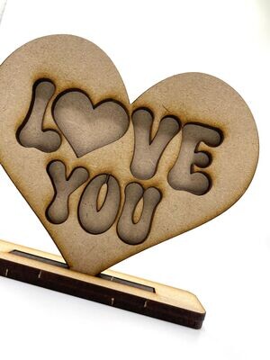 Stunning MDF Valentines Heart Ornament/Decoration keepsake gift with LOVE YOU. The perfect token for someone special this Valentines Day!