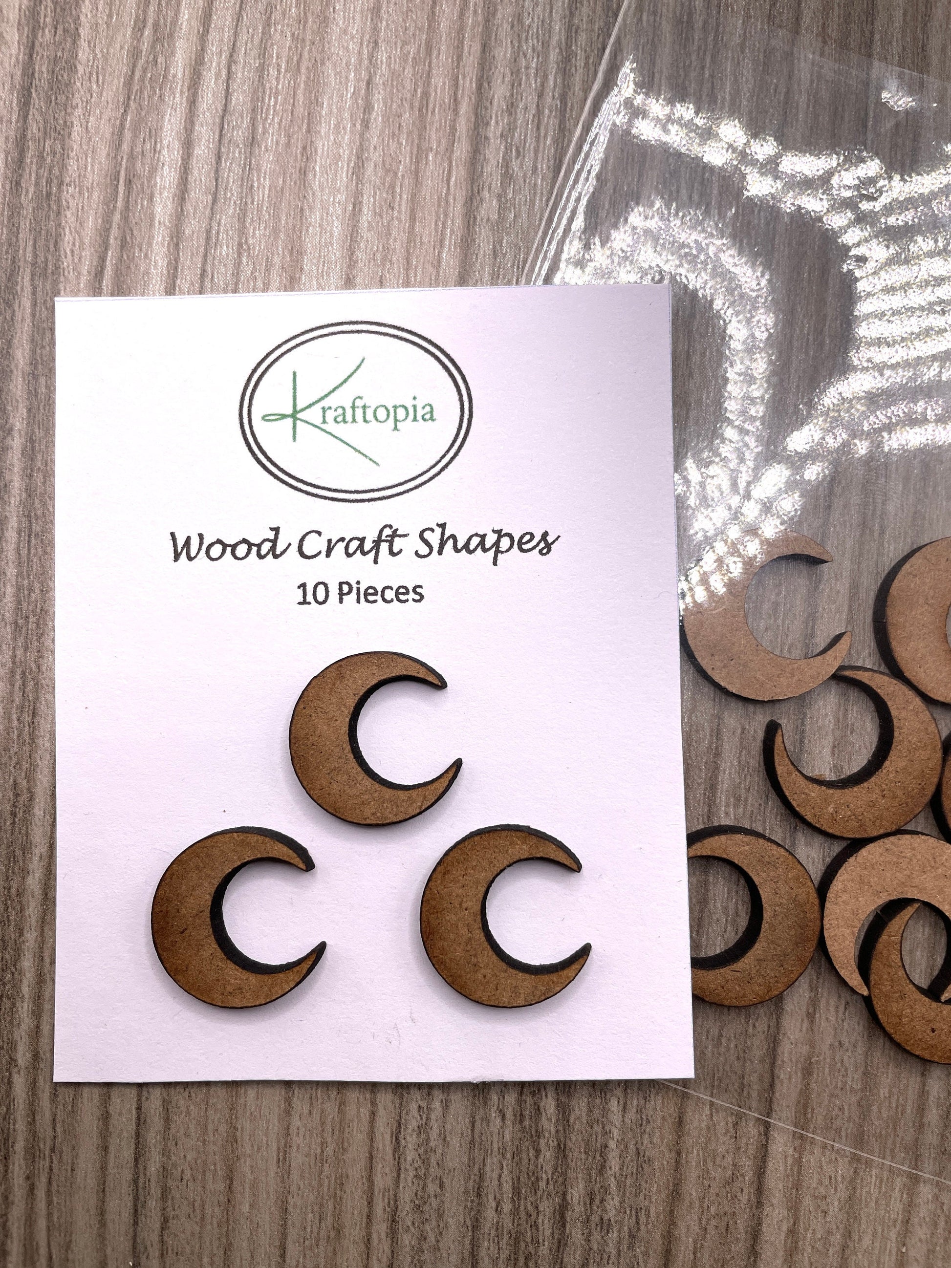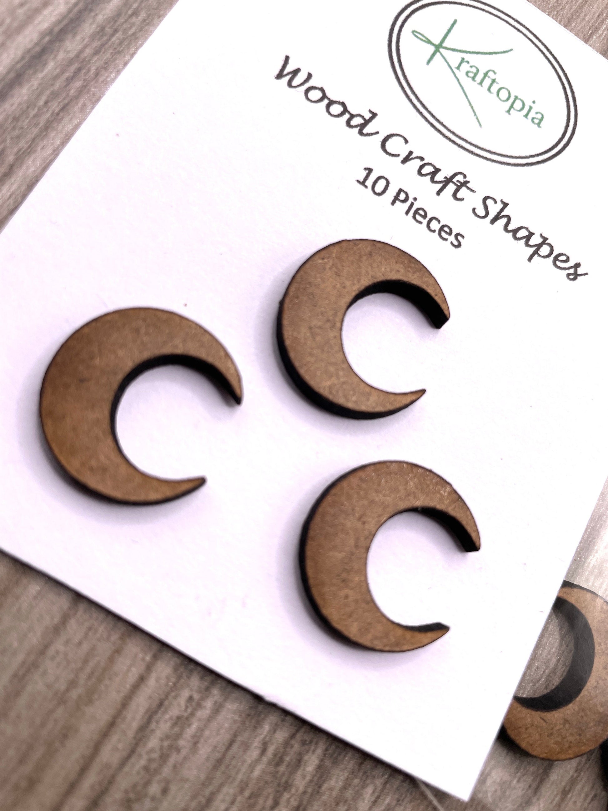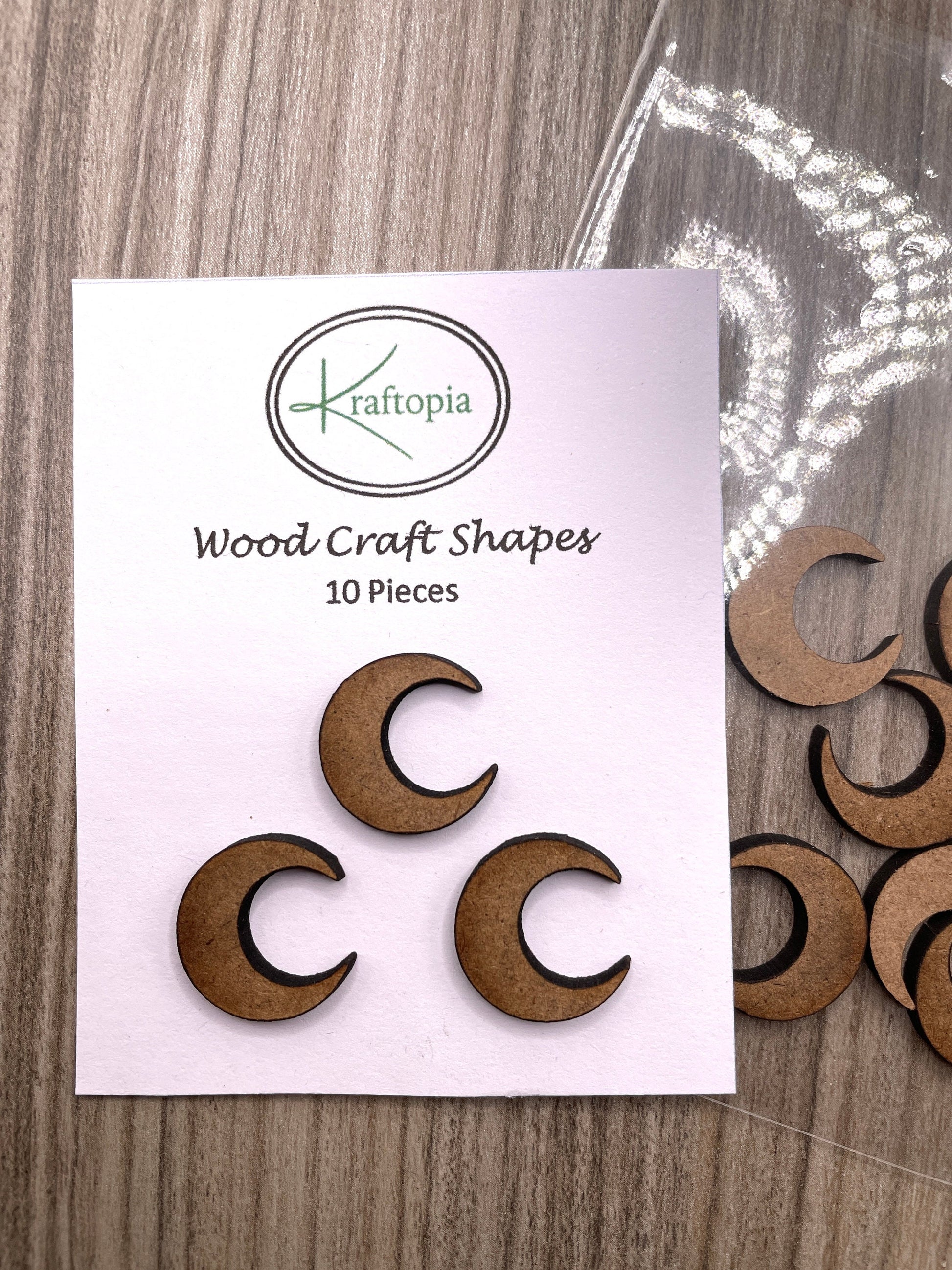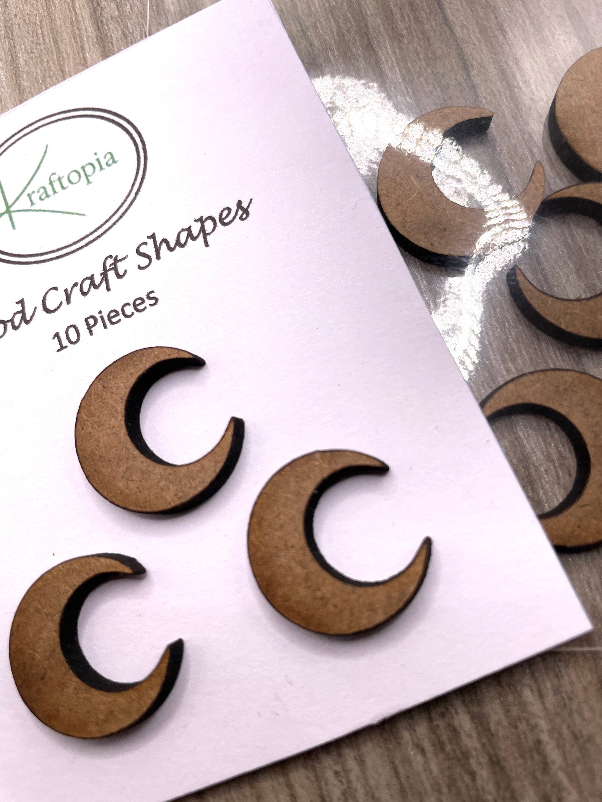 Crescent Moon MDF Craft Blanks or Craft Shapes - Pack of 10 which are perfect for craft projects and jewellery making.