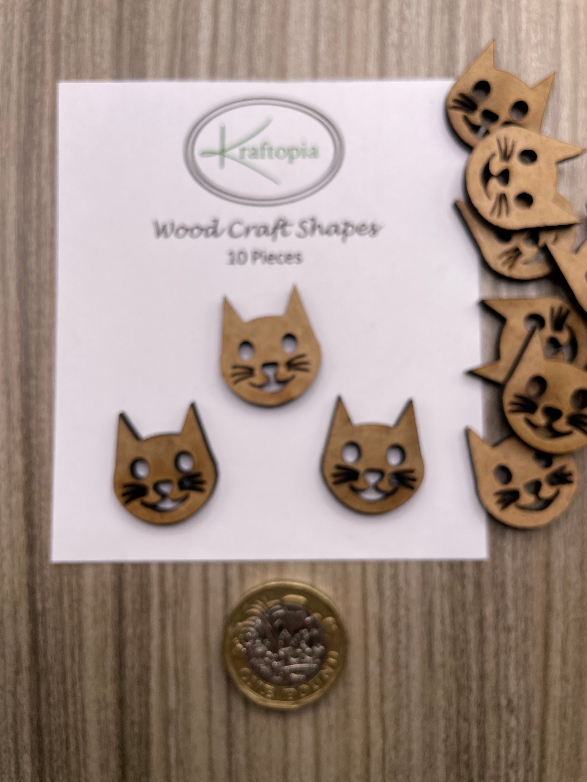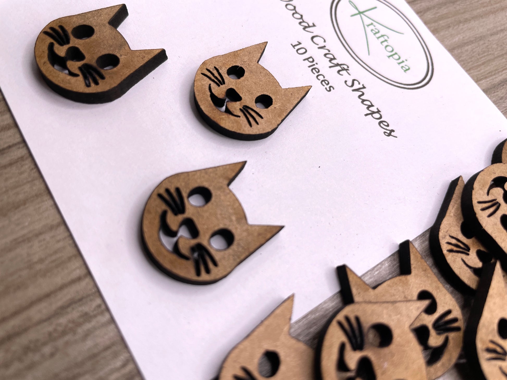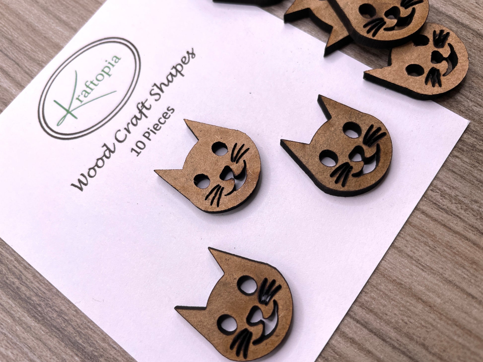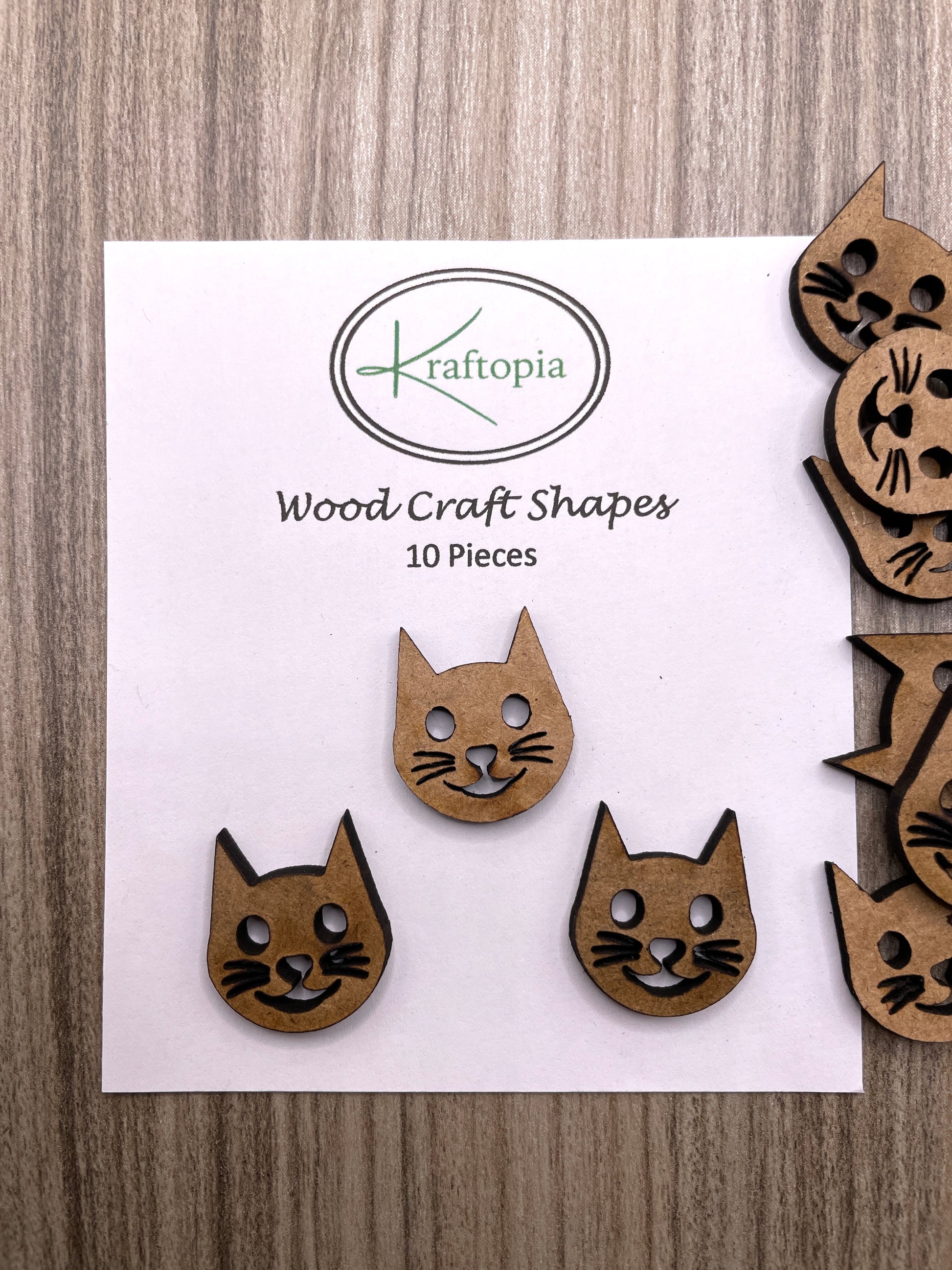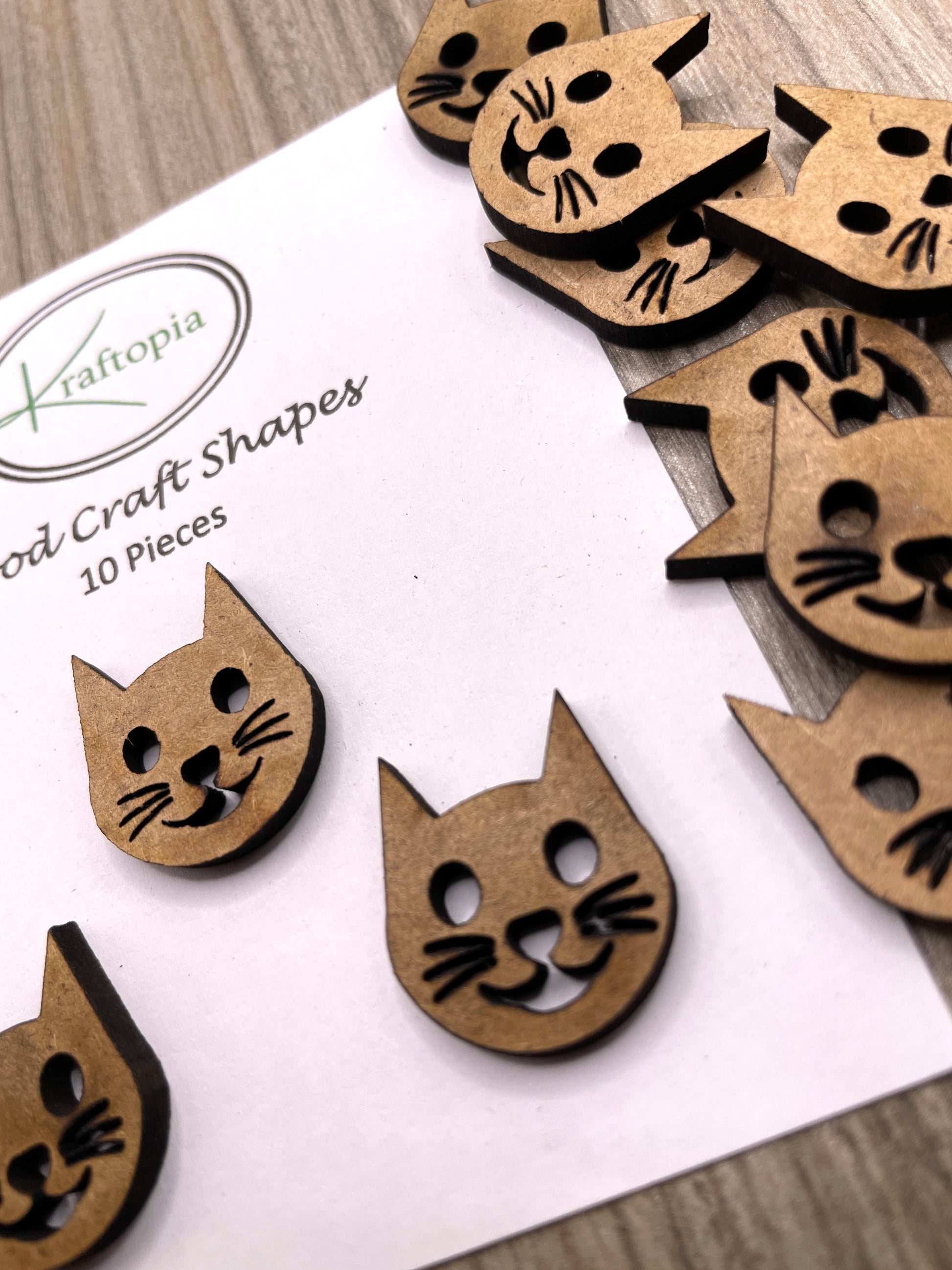 Cute Cat Head MDF Craft Blanks or Craft Shapes - Pack of 10 / Cabochons / Earring Blanks For Jewellery Making