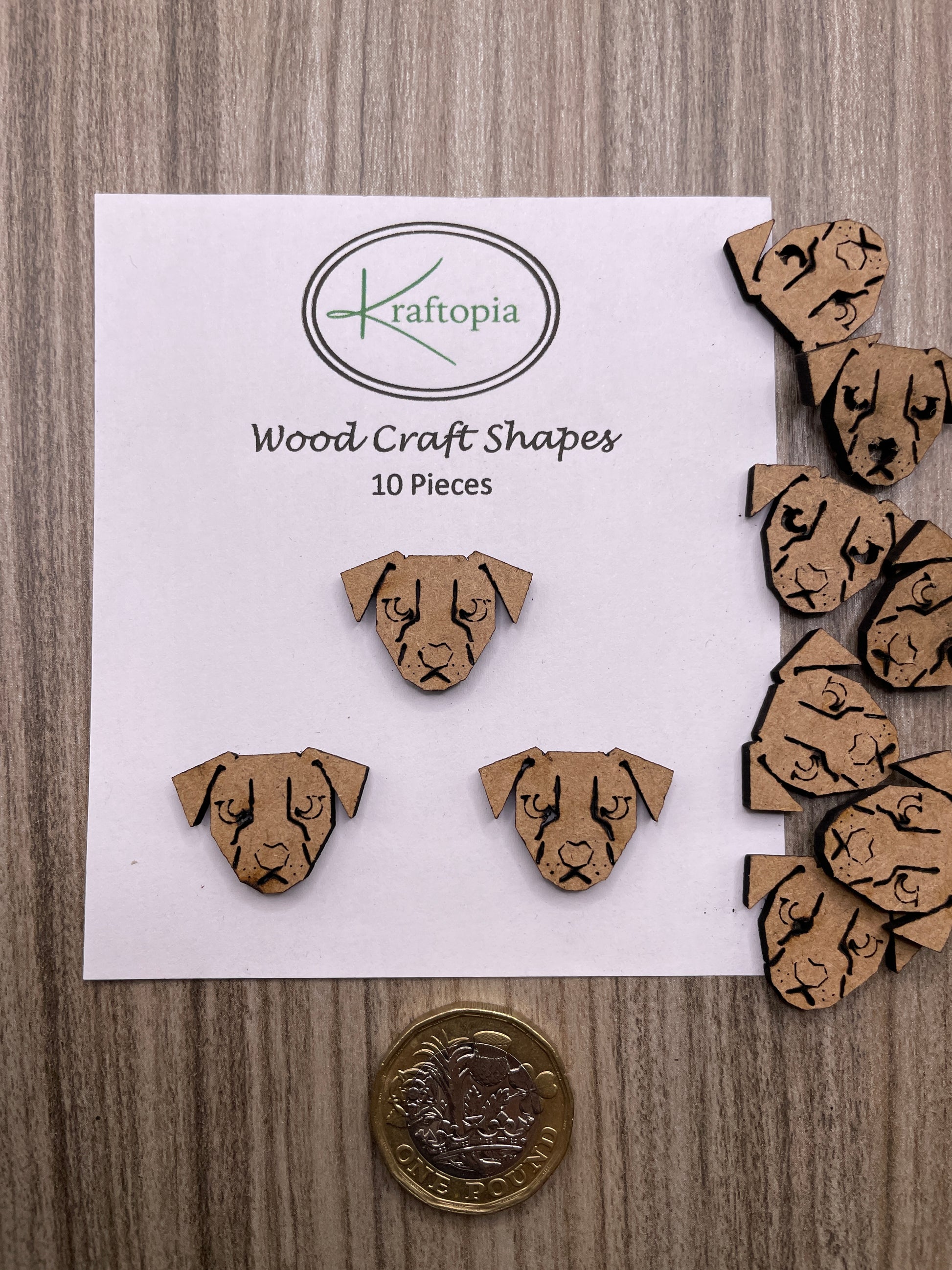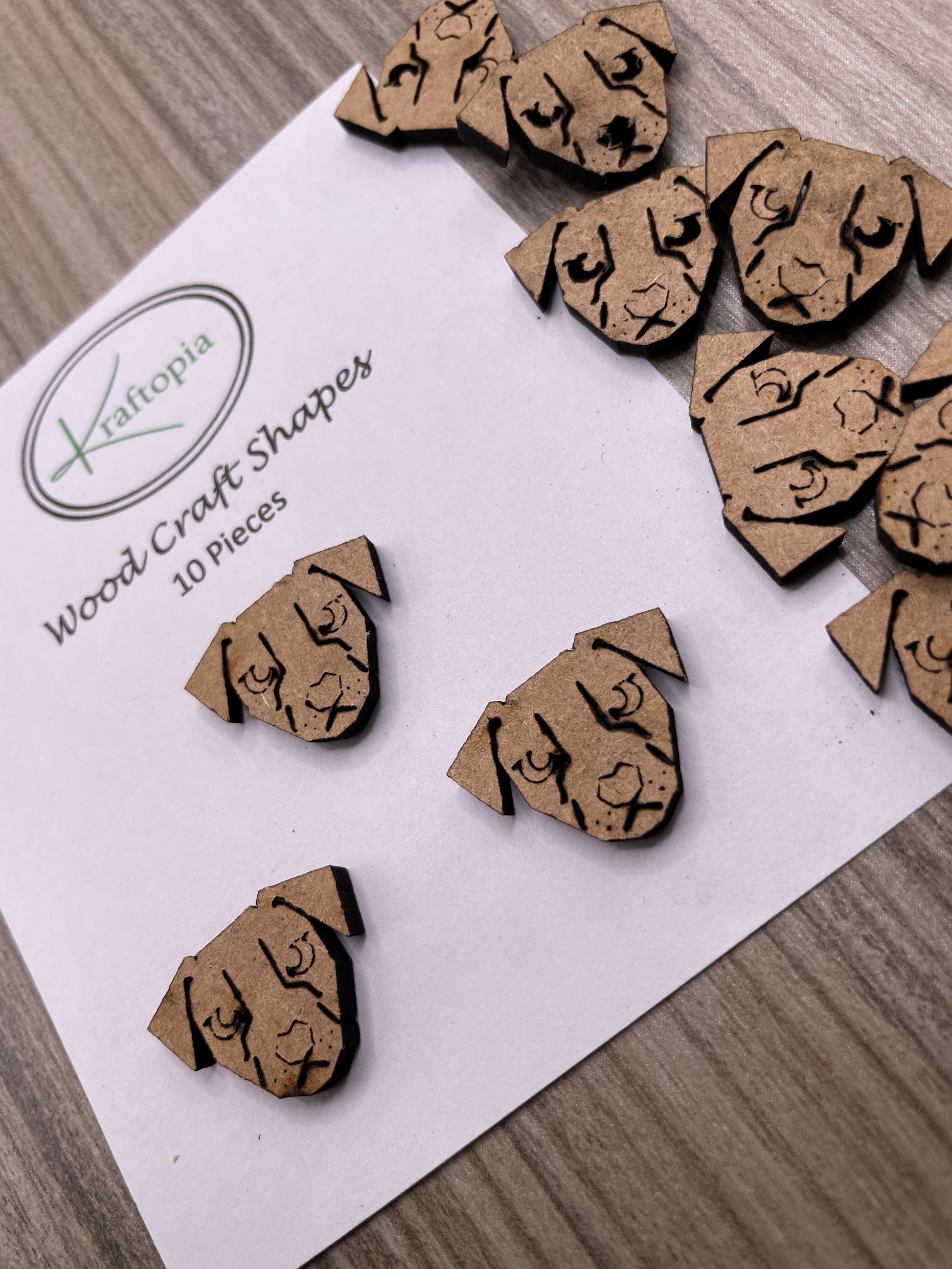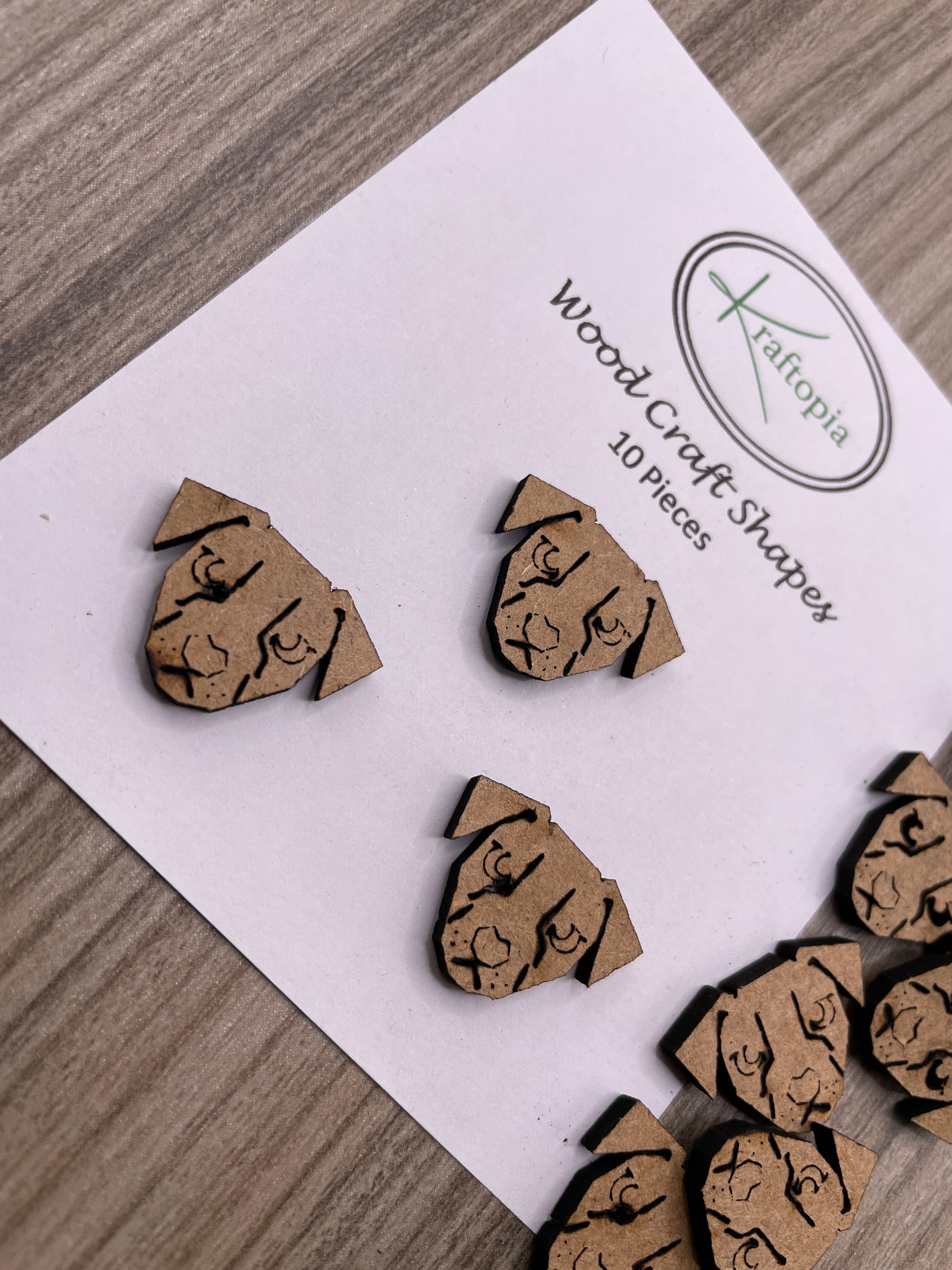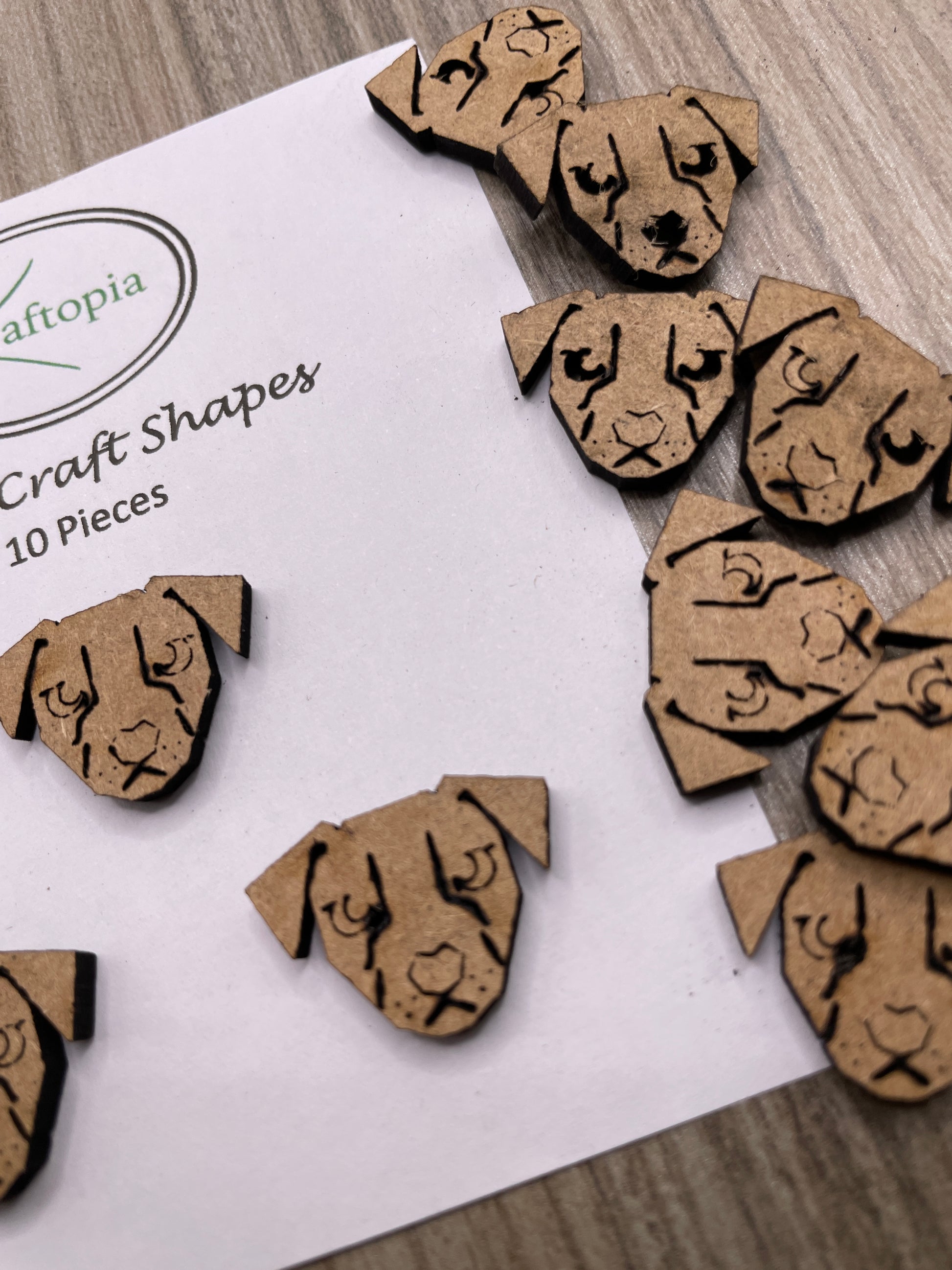 Cute Dog Face MDF Craft Blanks or Craft Shapes - Pack of 10 / Cabochons / Earring Blanks For Jewellery Making