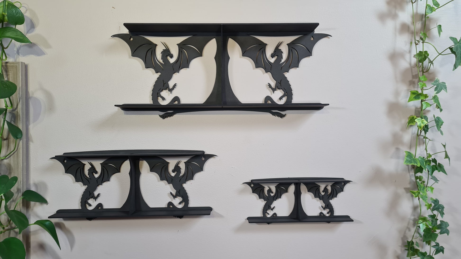 Add a little style to your home with these dragon-style shelving units. Made from 3mm MDF.