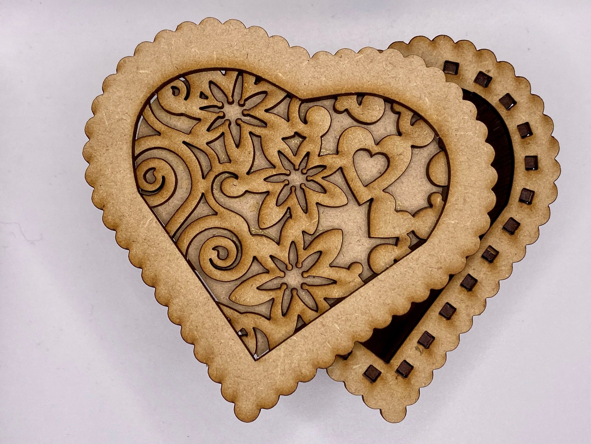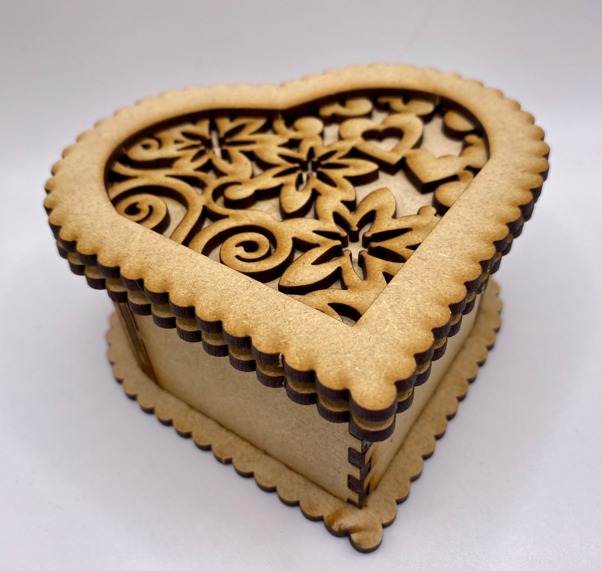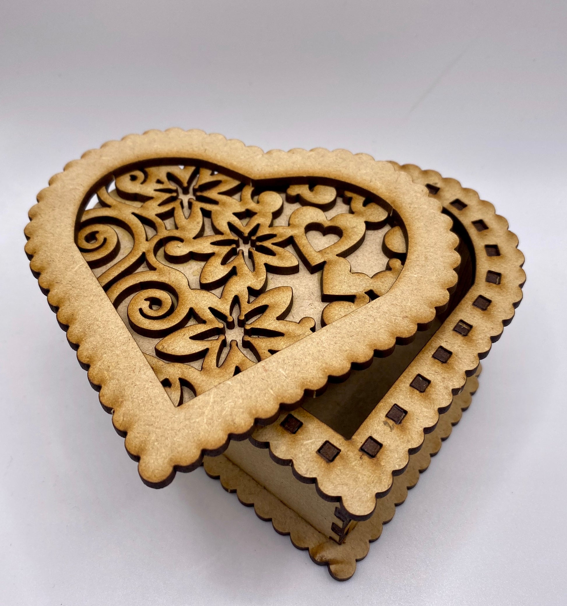 Heart Shaped Flowers and Hearts Trinket Storage Box MDF Craft Kit