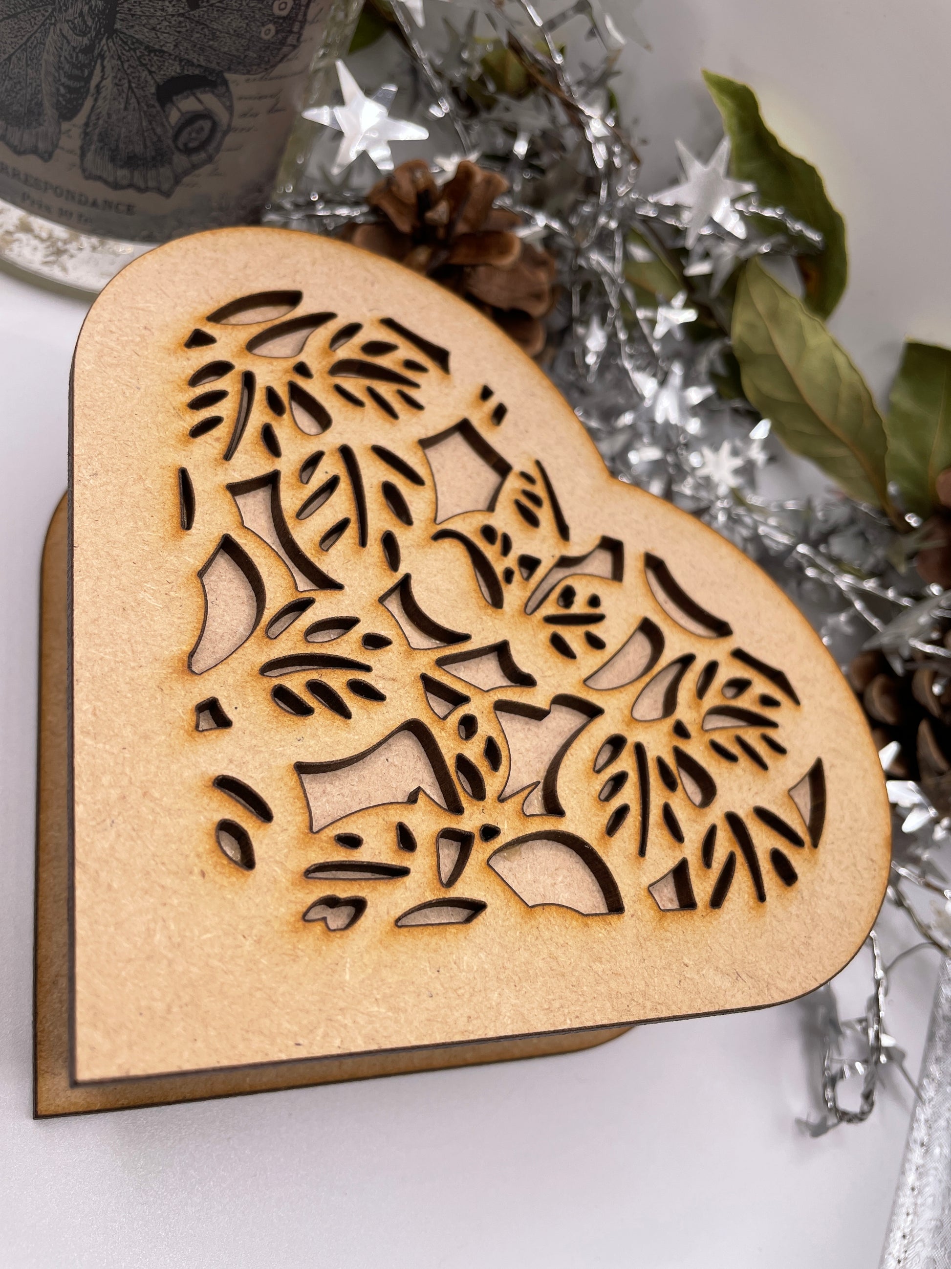 Heart Shaped Leaves Trinket Storage Box MDF Kit