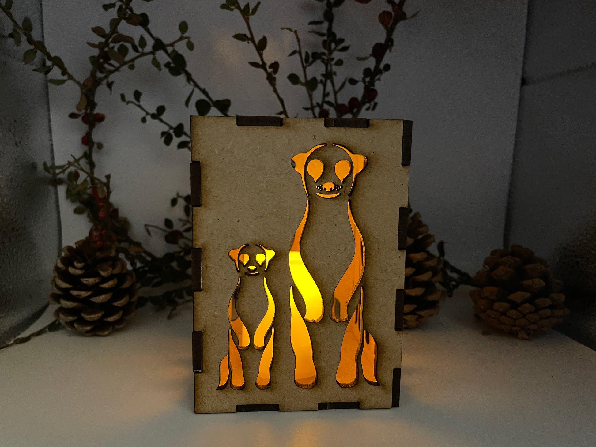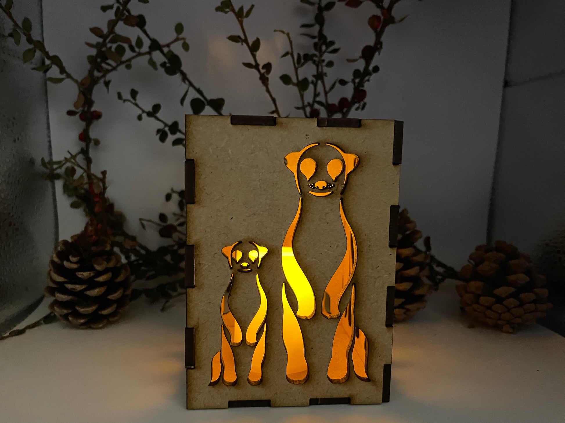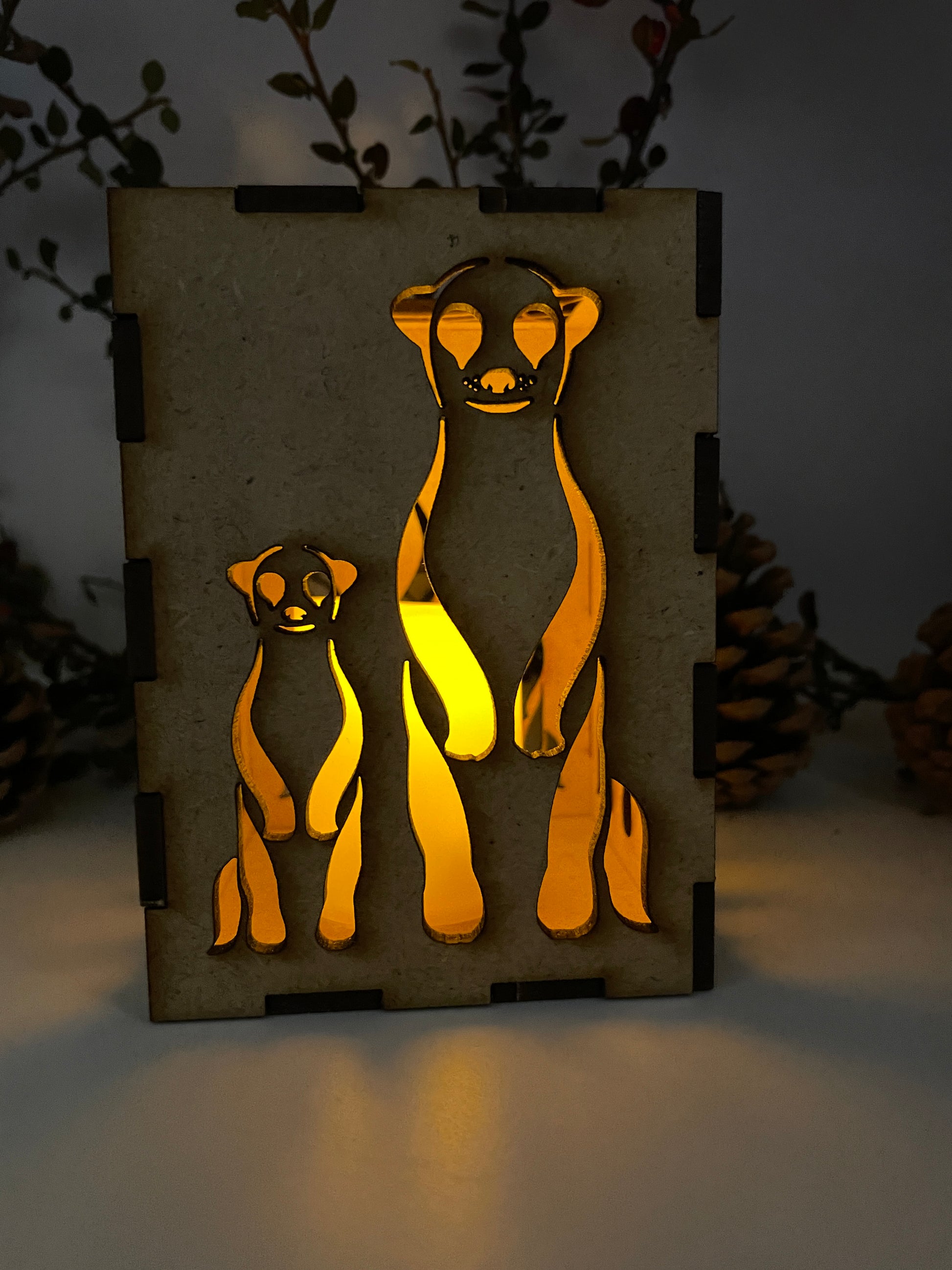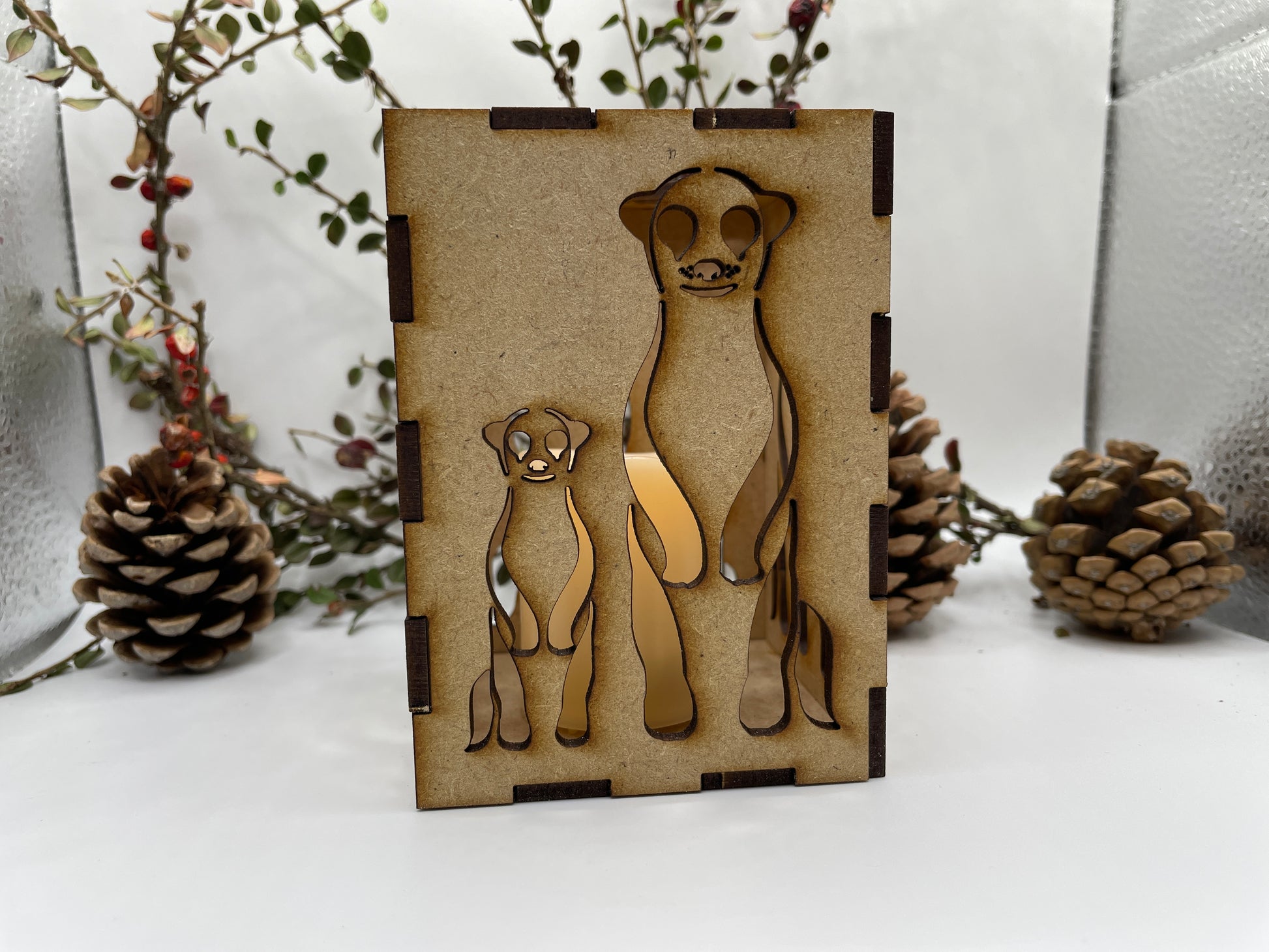 Meercat & Baby Lantern MDF - Small for LED lights or Battery Operated Candles