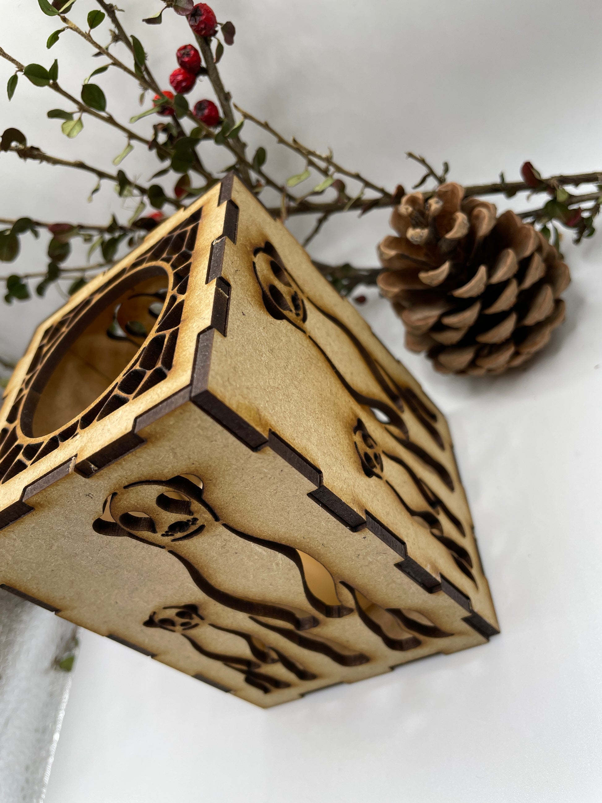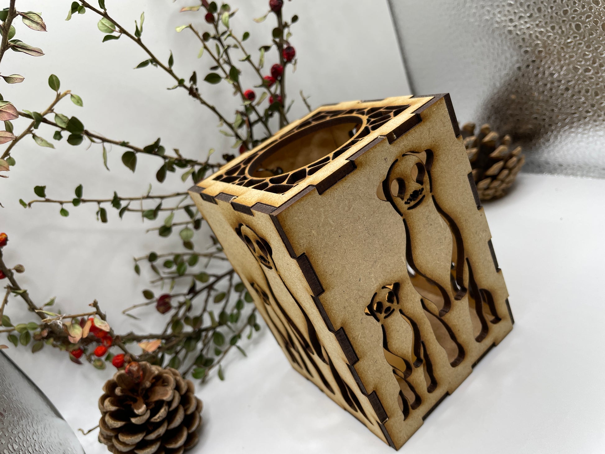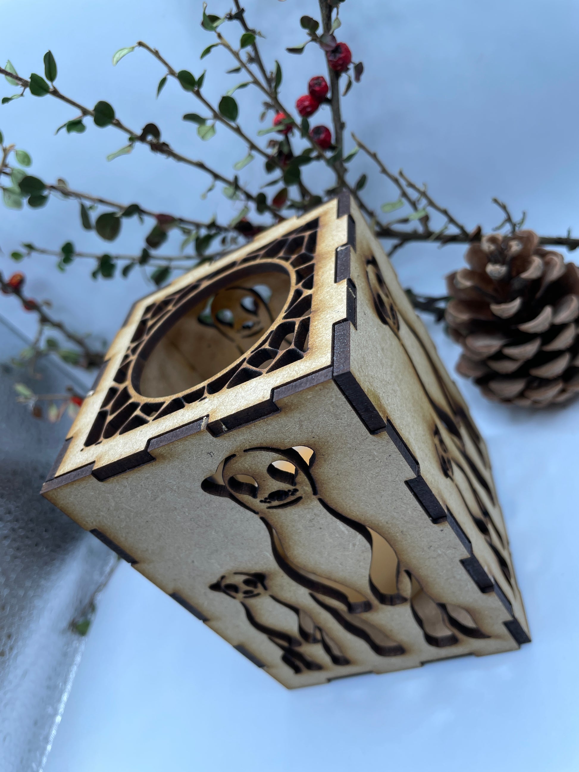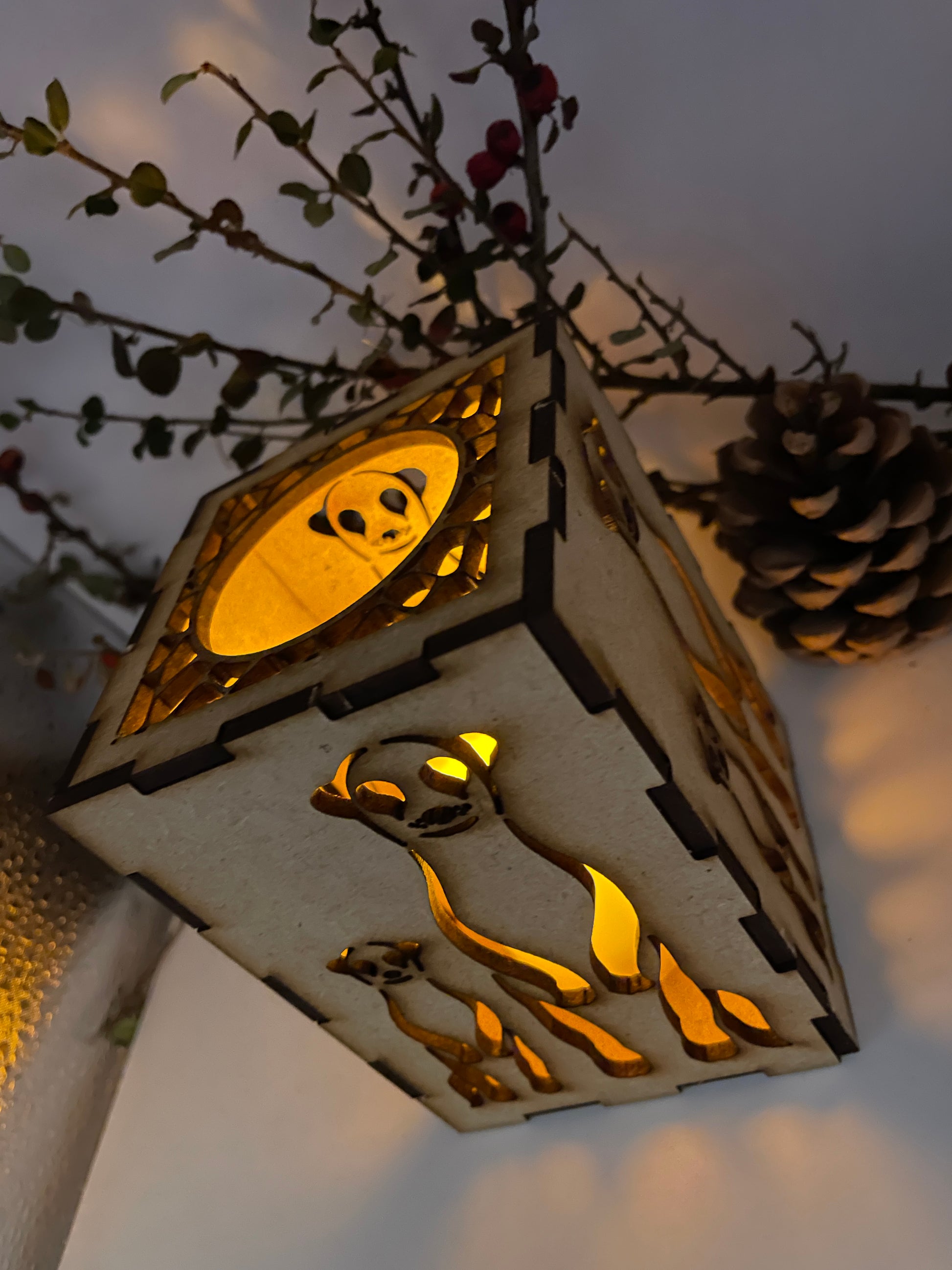 A stunning four-sided Lantern with a gorgeous Meercat & Baby pattern on each side. The lantern has a round hole at the top to allow easy access to put your battery-operated candles or LED lights inside. Looks stunning at night with lights inside!