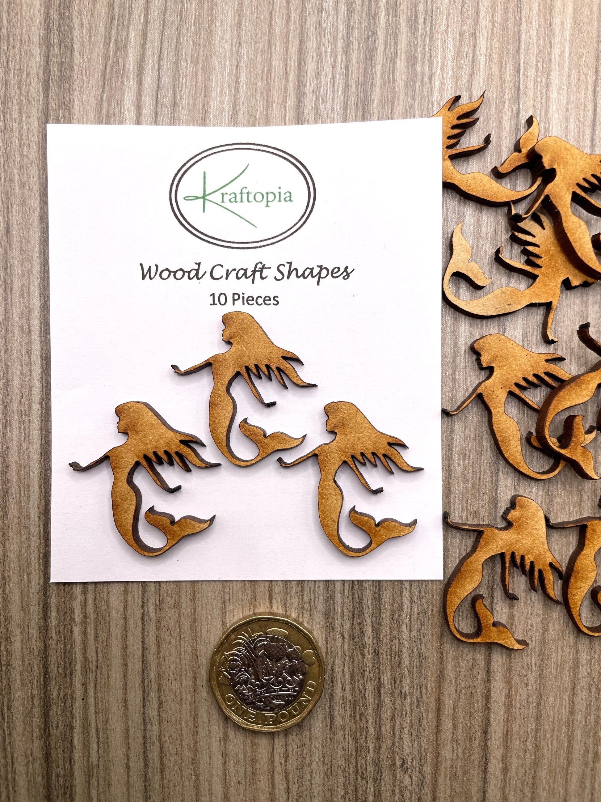 Mermaid MDF Craft Blanks or Craft Shapes - Pack of 10 / Cabochons / Earring Blanks For Jewellery Making