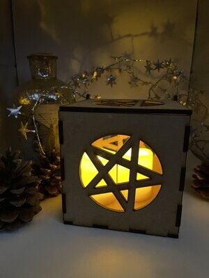 Pentagram MDF Craft Kit Night Light or Light Box - 3D Ornate MDF Shadow Box with Pentagram Cut-outs