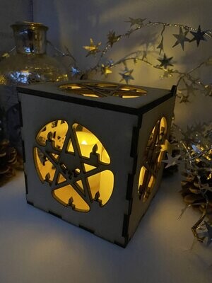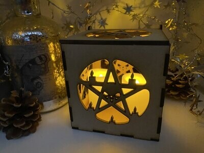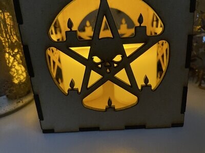Pentagram with Candle MDF Craft Kit Night Light or Light Box - 3D Ornate MDF Shadow Box with Cut-outs