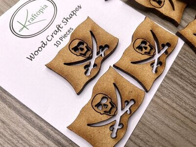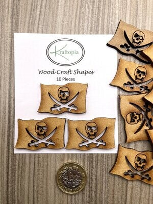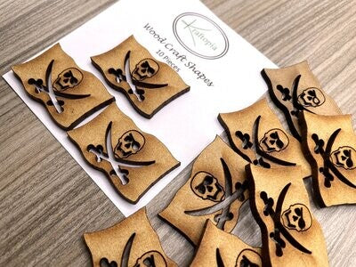 Pirate Flag MDF Craft Blanks or Craft Shapes - Pack of 10 / Cabochons / Earring Blanks For Jewellery Making