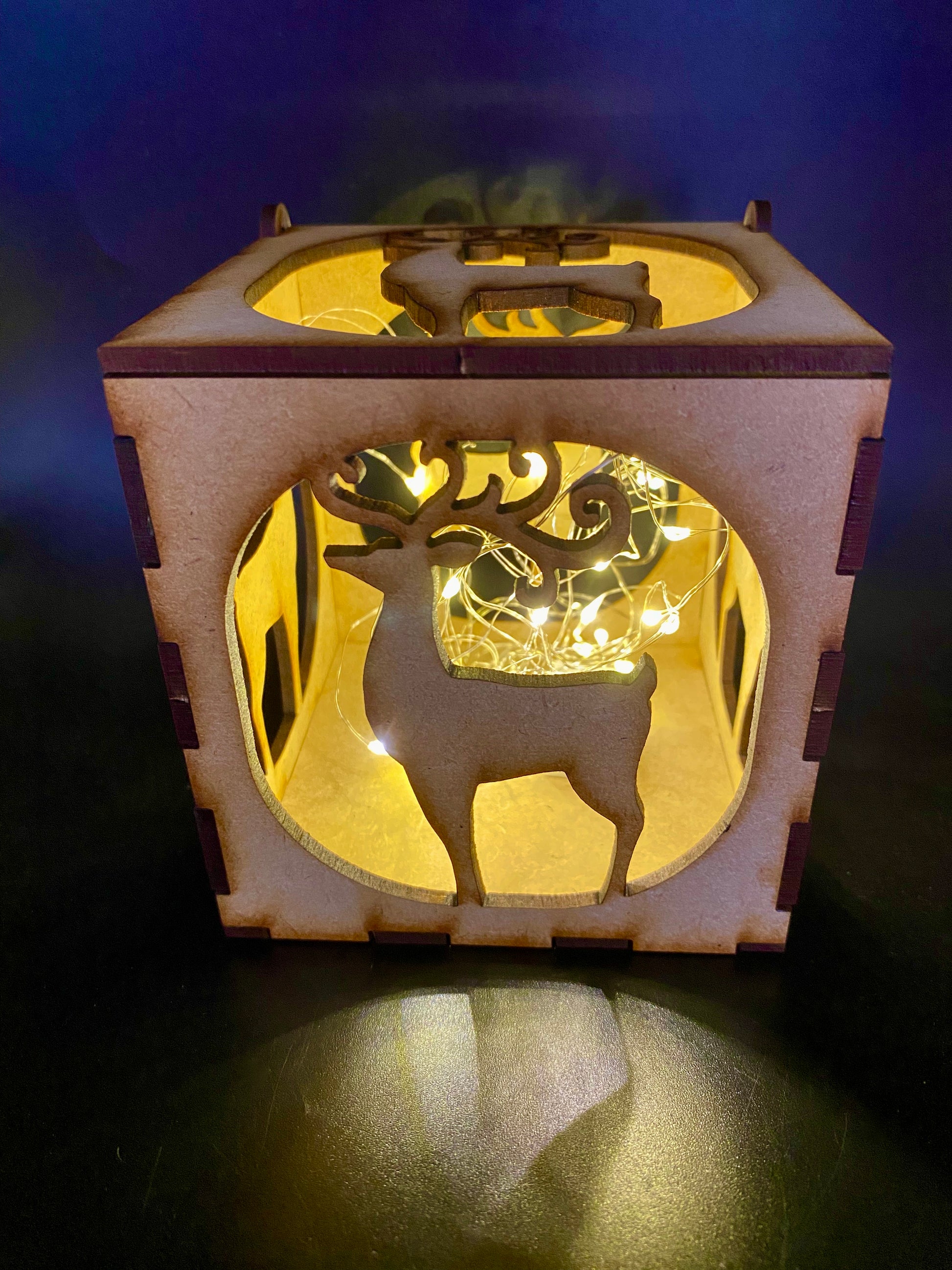 Reindeer MDF Craft Kit Night Light or Light Box - 3D Ornate MDF Shadow Box with Cut-outs