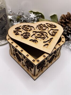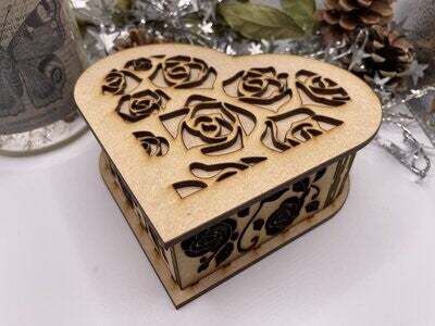 Roses Heart Shaped Trinket Storage Box MDF Craft Kit