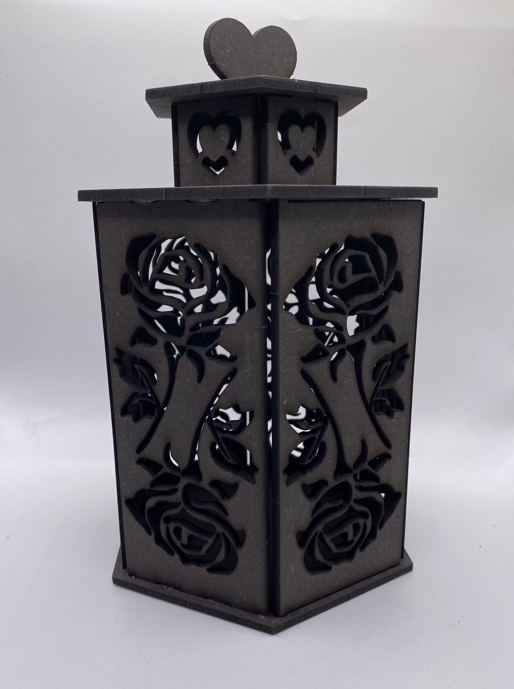 A stunning six-sided Lantern with Two Roses on each panel. The lantern has two opening doors to allow easy access to put your battery-operated candles or LED lights inside