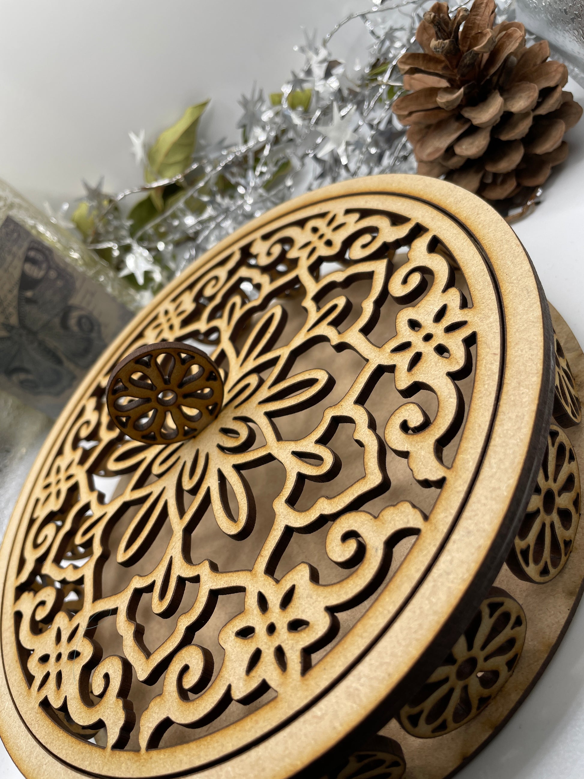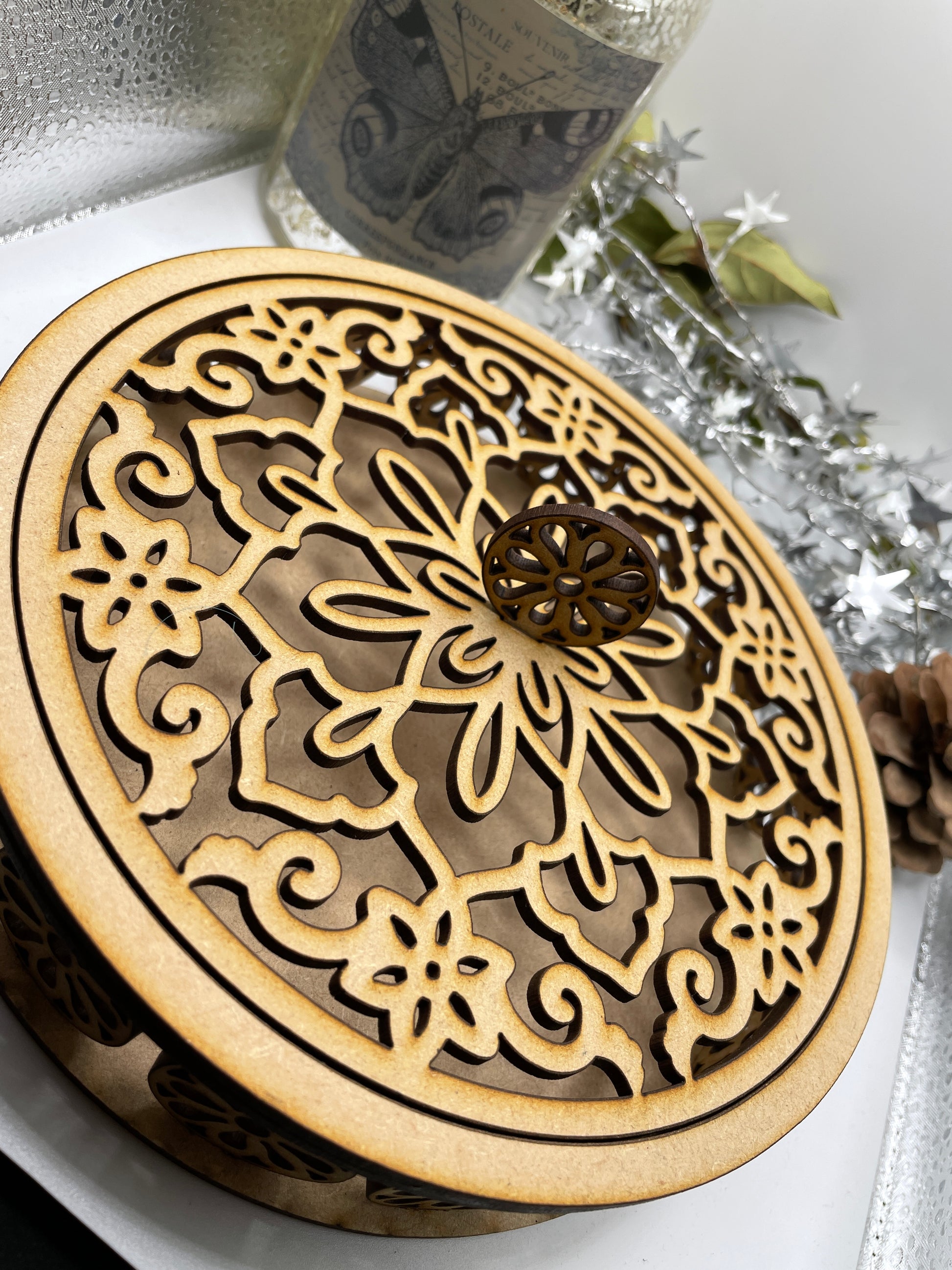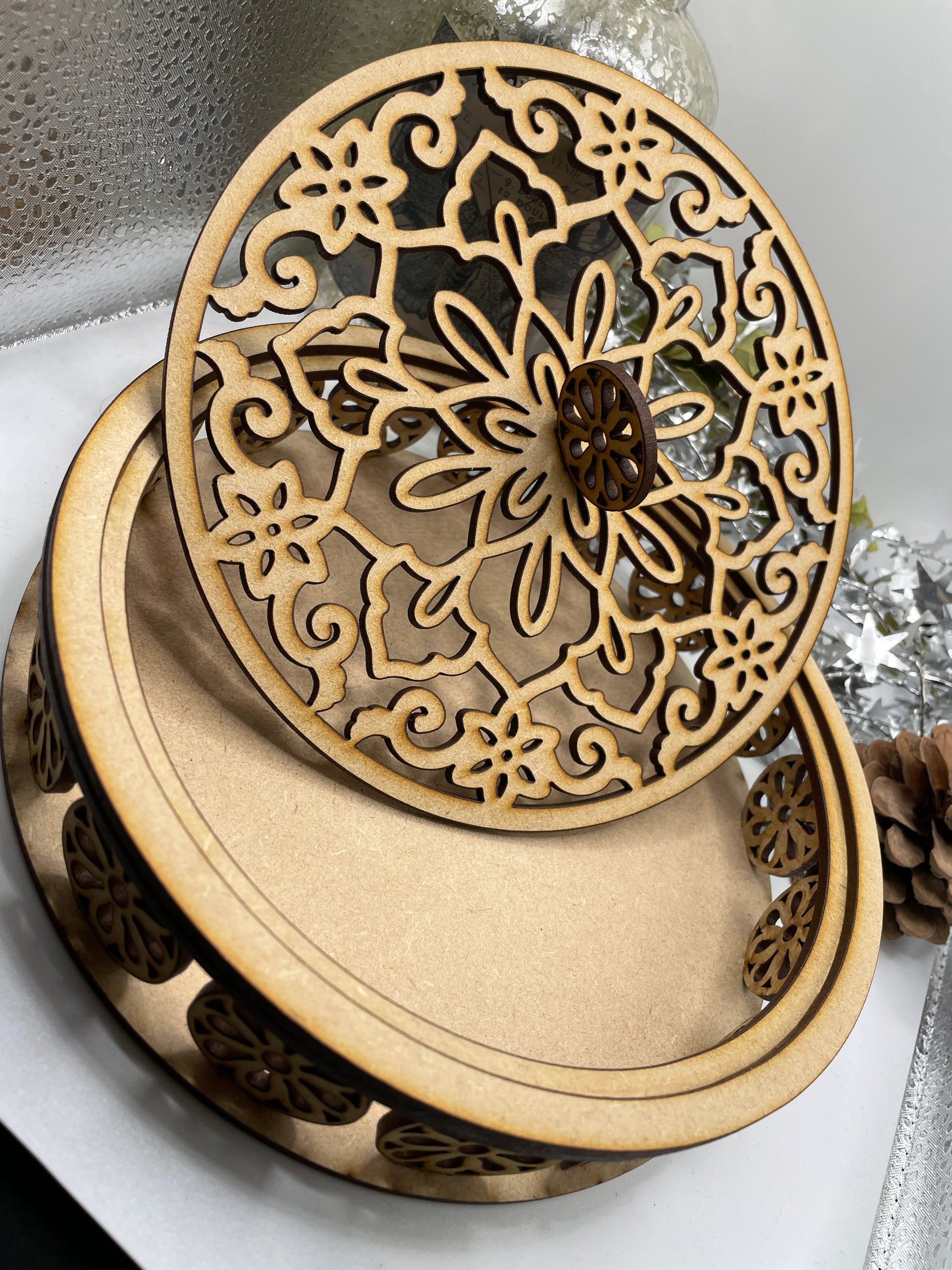 Round Ornate Trinket Storage Box MDF Craft Kit