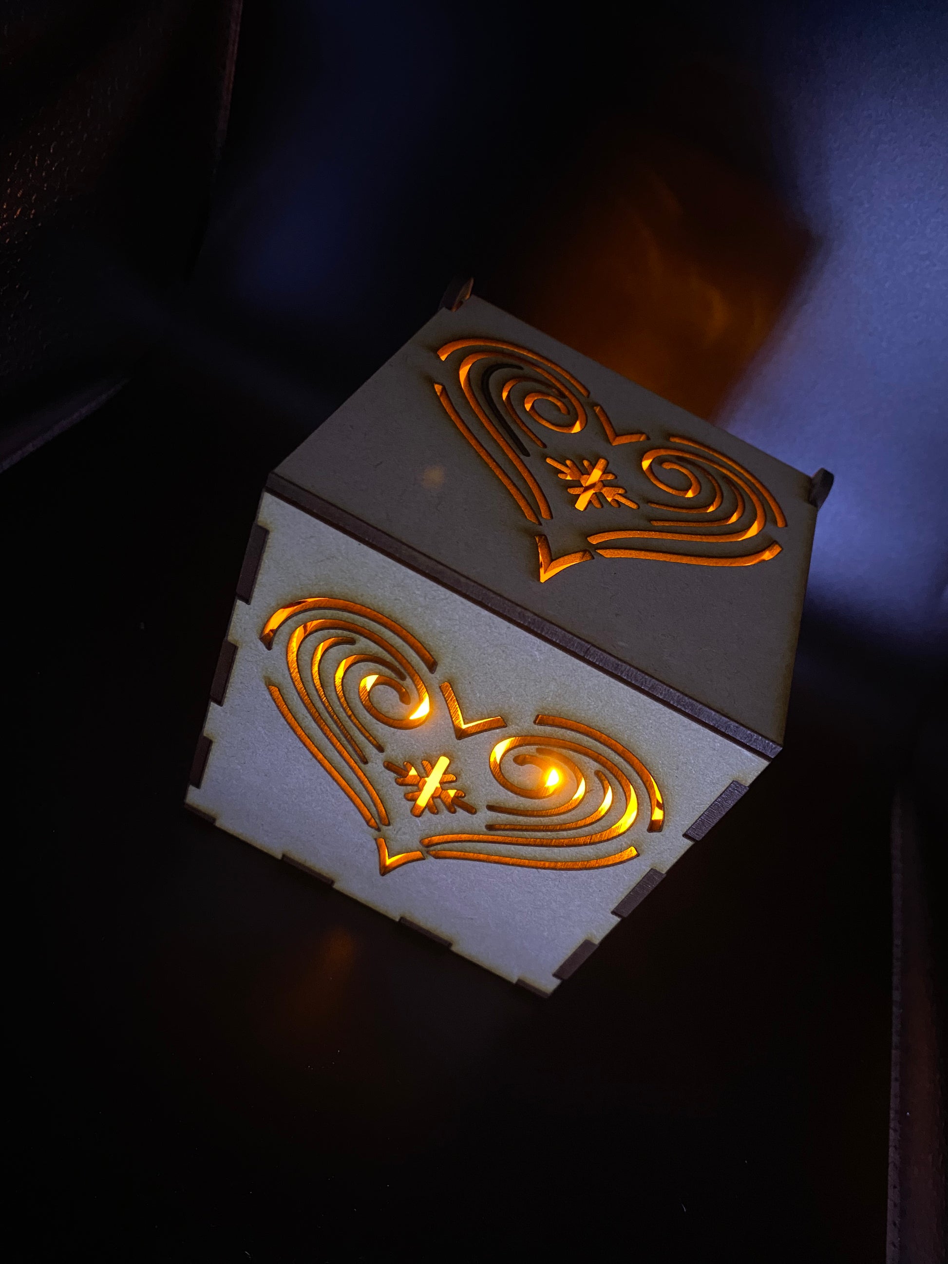 By housing battery-operated candles inside it throws shapes around your room! Decorate it to your tastes using pens, paints, glitter, gems, etc. The box has a solid base and an easy-opening lid. You will need to assemble and glue it together once you have decorated it. We only recommend you use battery-operated candles in these boxes and not real candles as they are made from MDF wood and if you paint or varnish them they could become highly flammable.