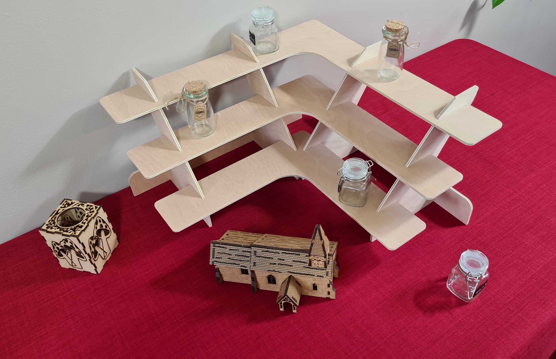 The wooden display stands are designed to be practical and portable, with each layer being easy to install and disassemble without screws and drills. They can be left in their natural state or painted to your tastes.