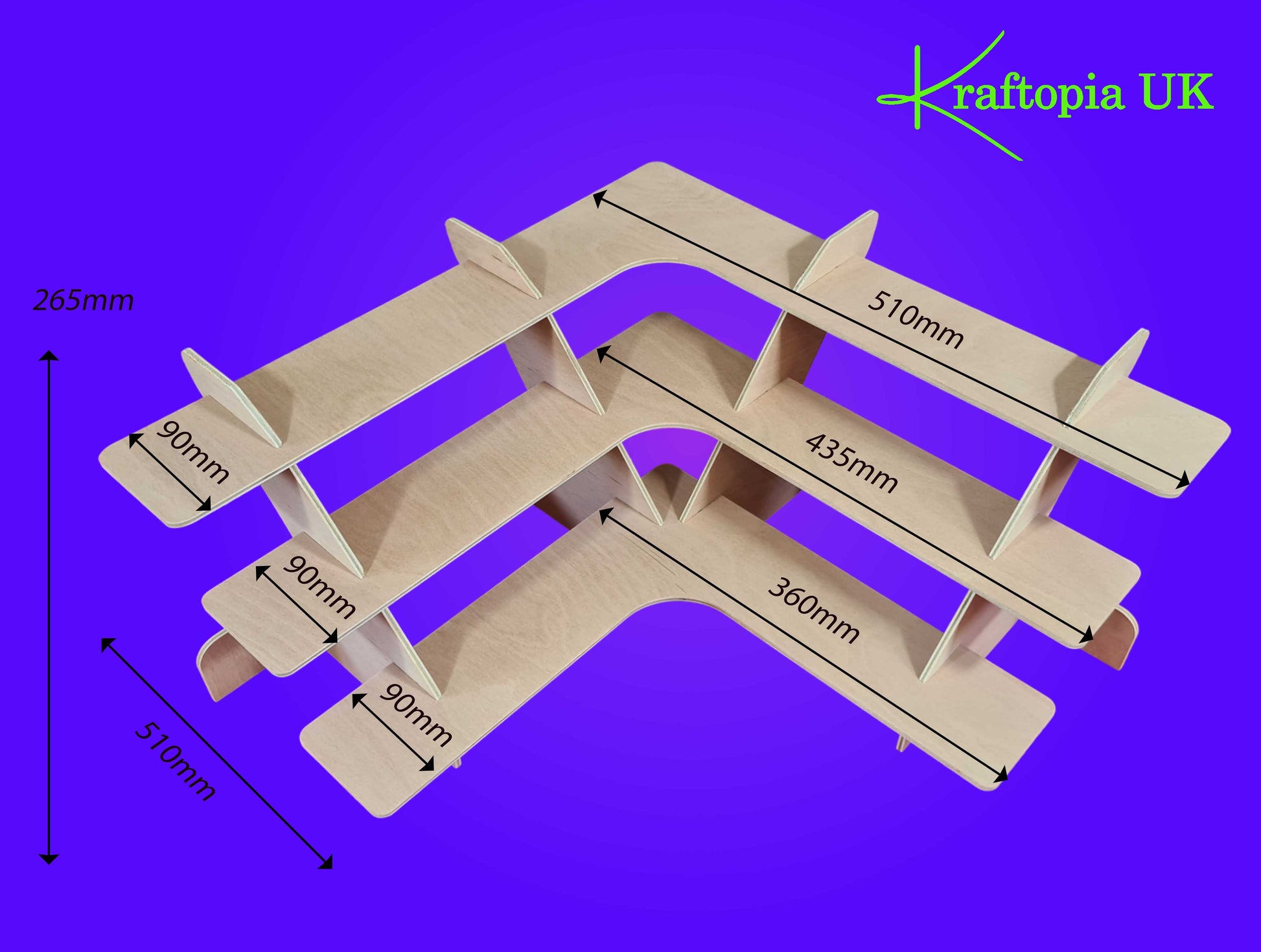 * 3 Tier Corner Product Display Stand made from solid 6mm Ply