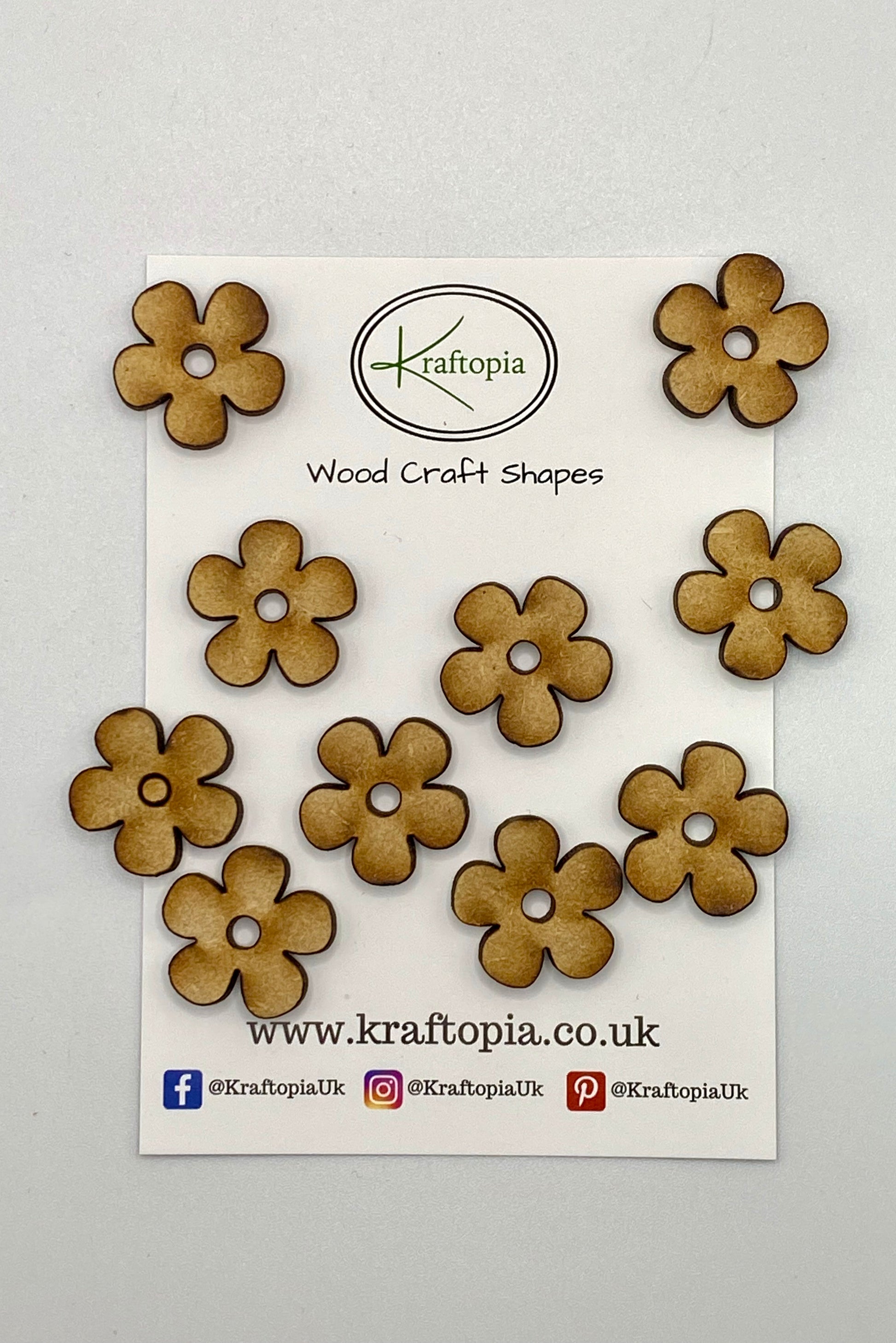 Small Flower MDF Craft Blanks or Craft Shapes - Pack of 10 which are perfect for craft projects and jewellery making.