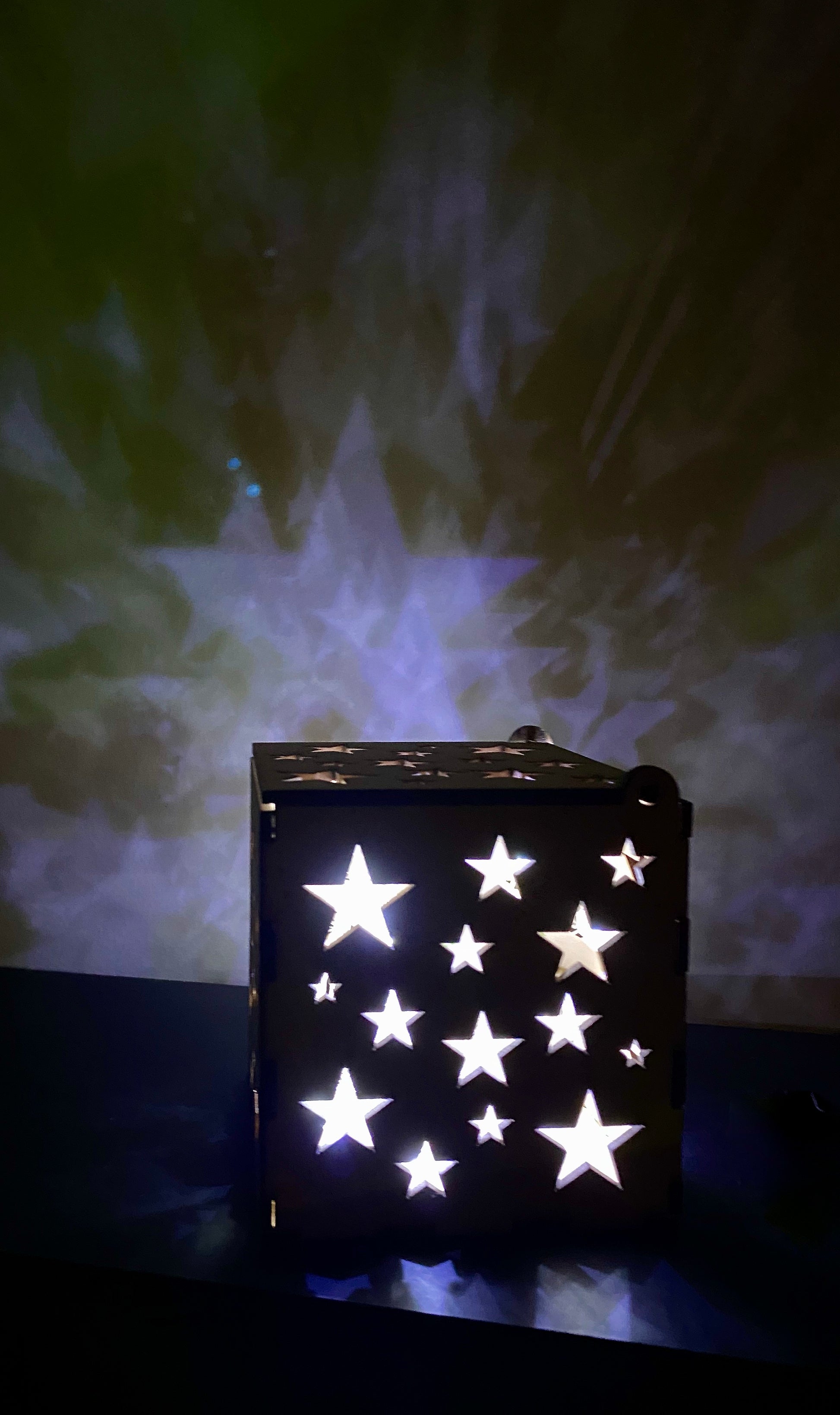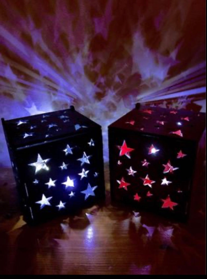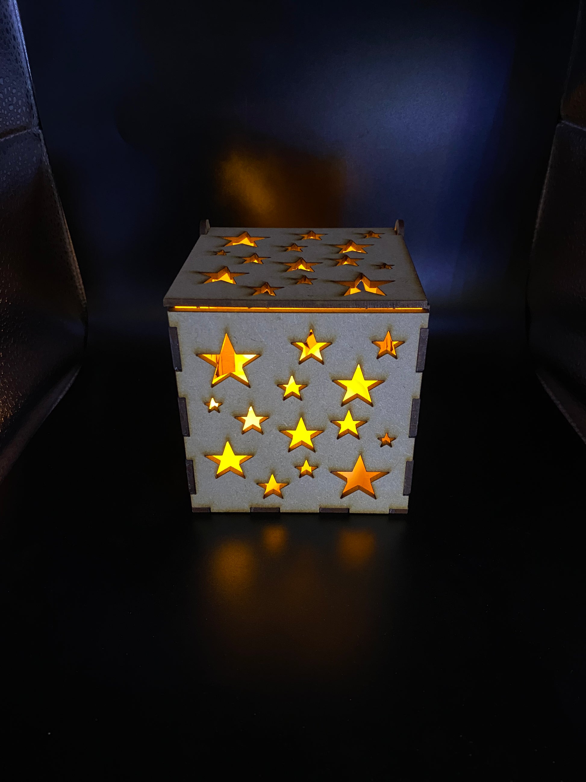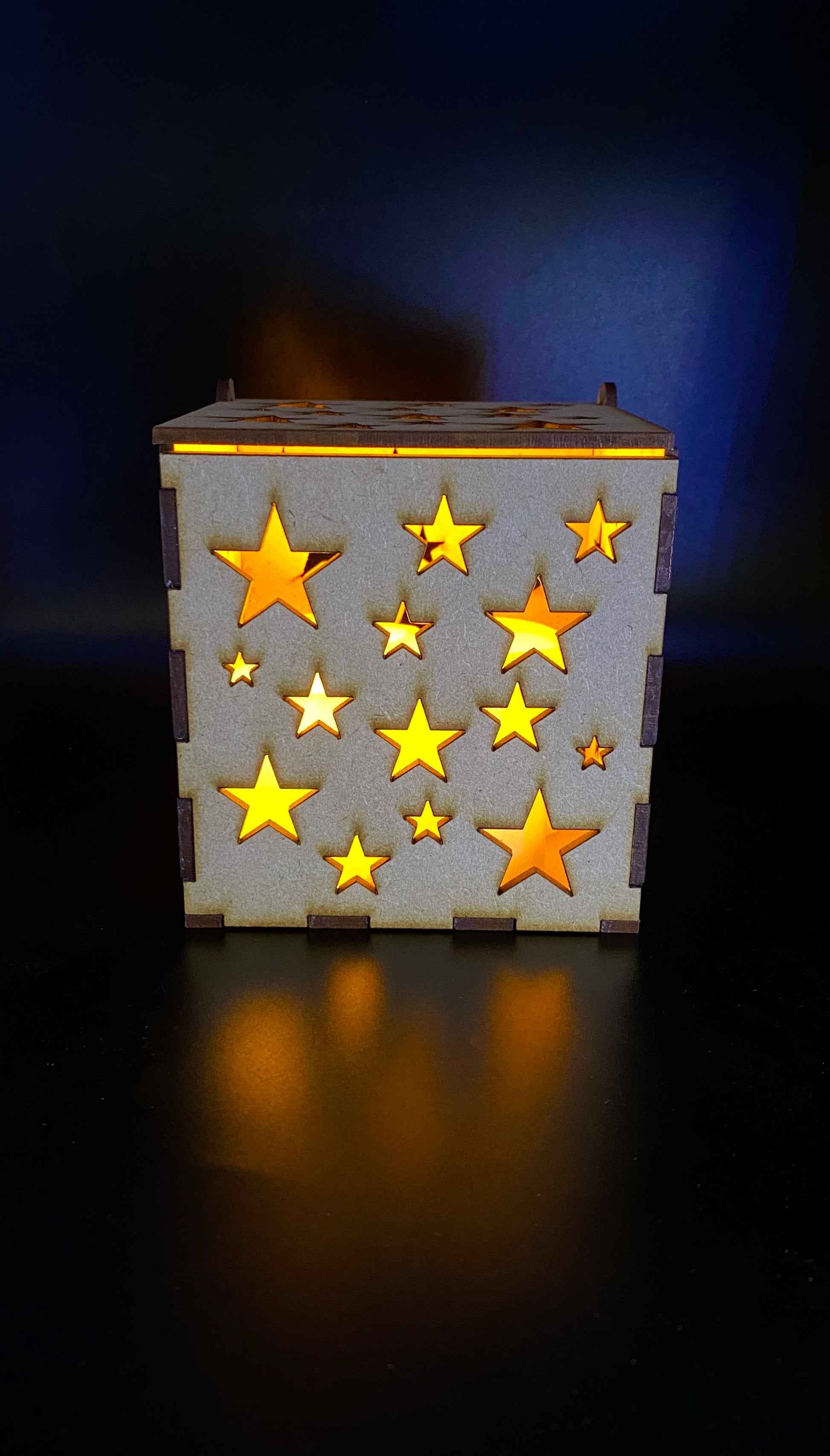 By housing battery-operated candles inside it throws shapes around your room! Decorate it to your own tastes using pens, paints, glitter, gems, etc. The box has a solid base and an easy-opening lid. We only recommend you use battery-operated candles in these boxes and not real candles as they are made from MDF wood and if you paint or varnish them they could become highly flammable.