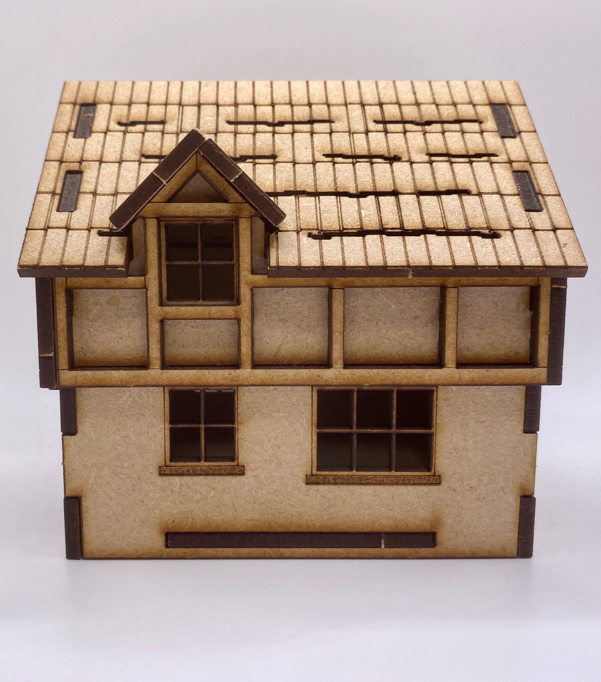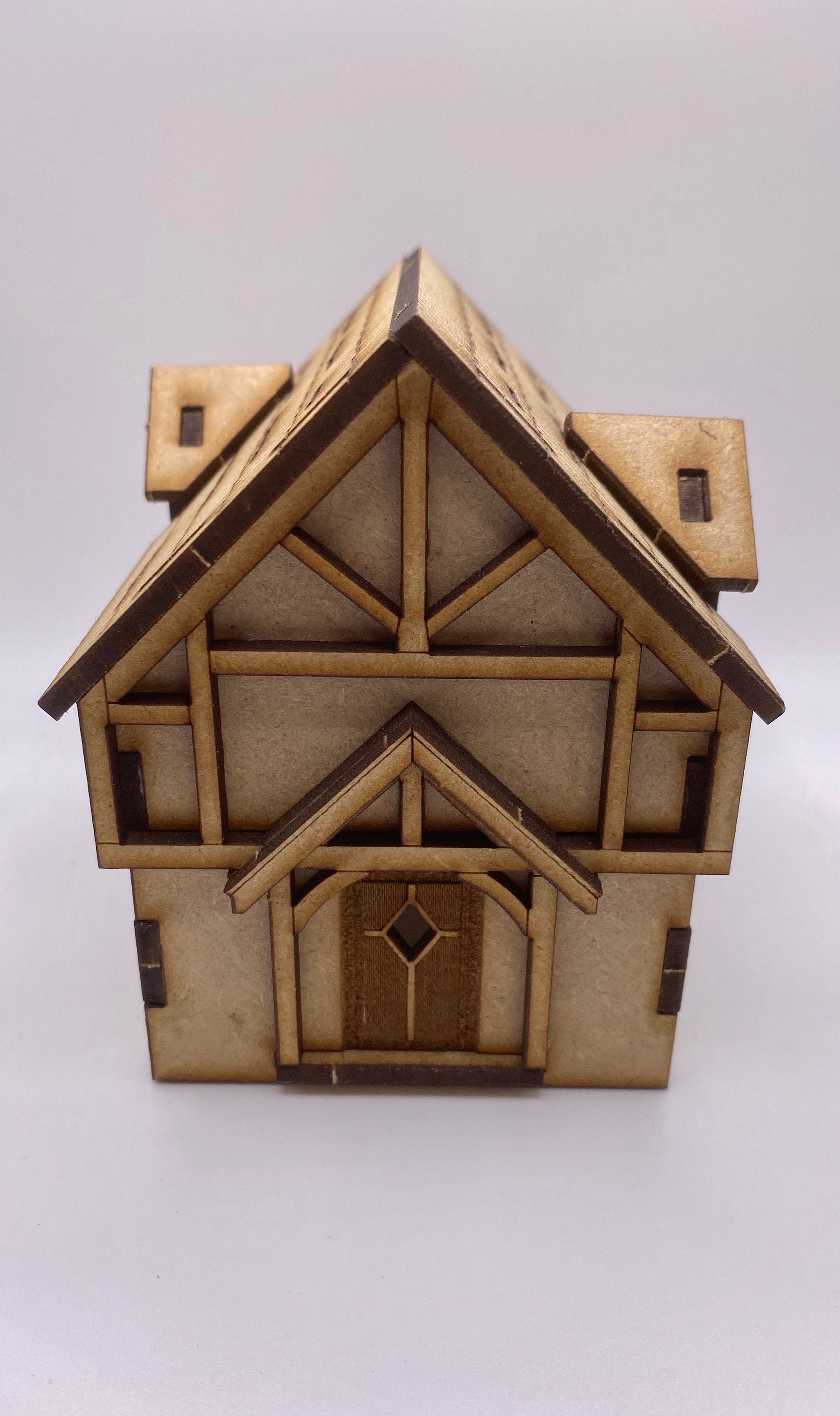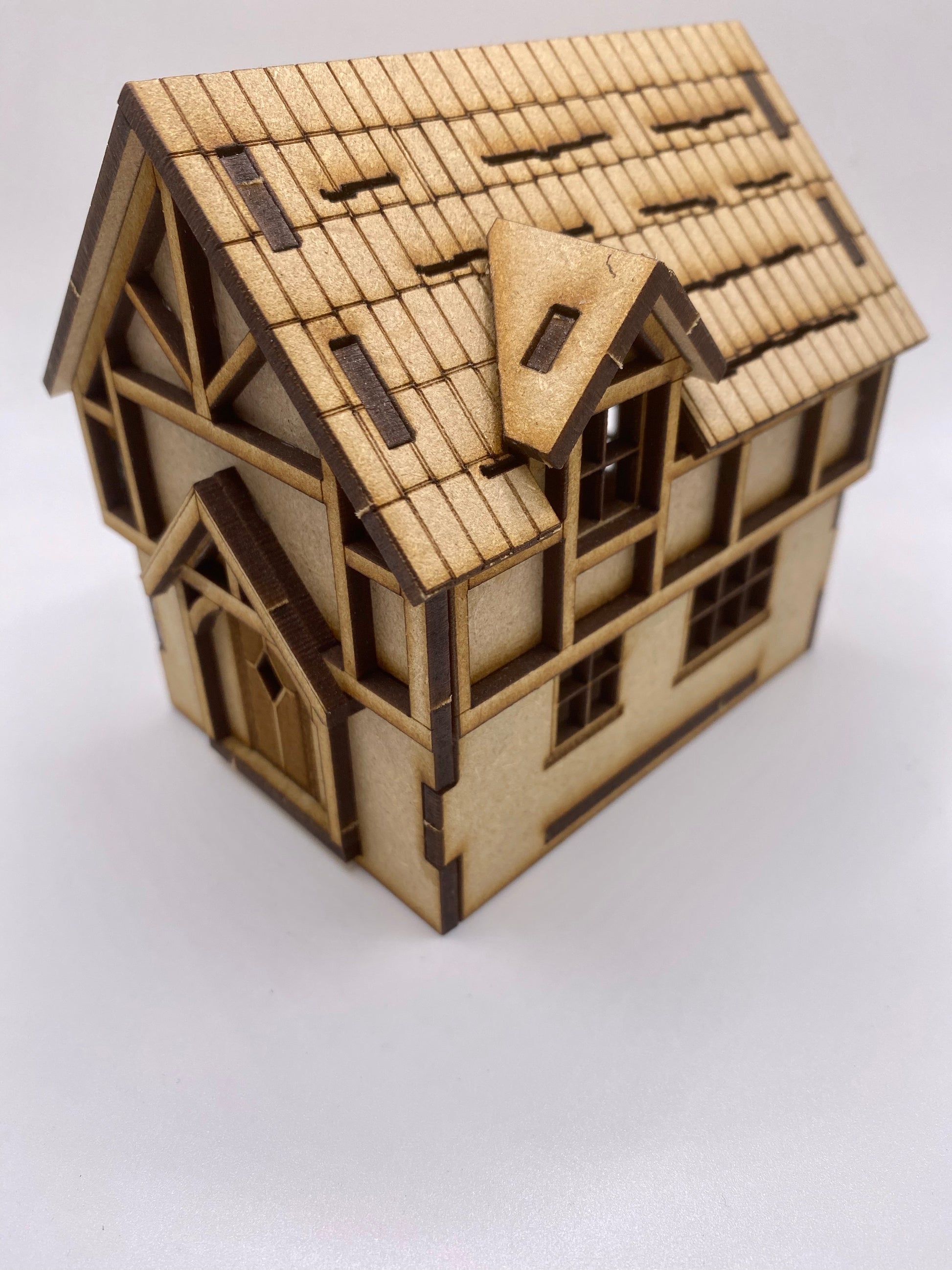 Tudor House 1.5 Storey with Dormer MDF Craft kit. Intricate Engraved detail on the roof and sides.