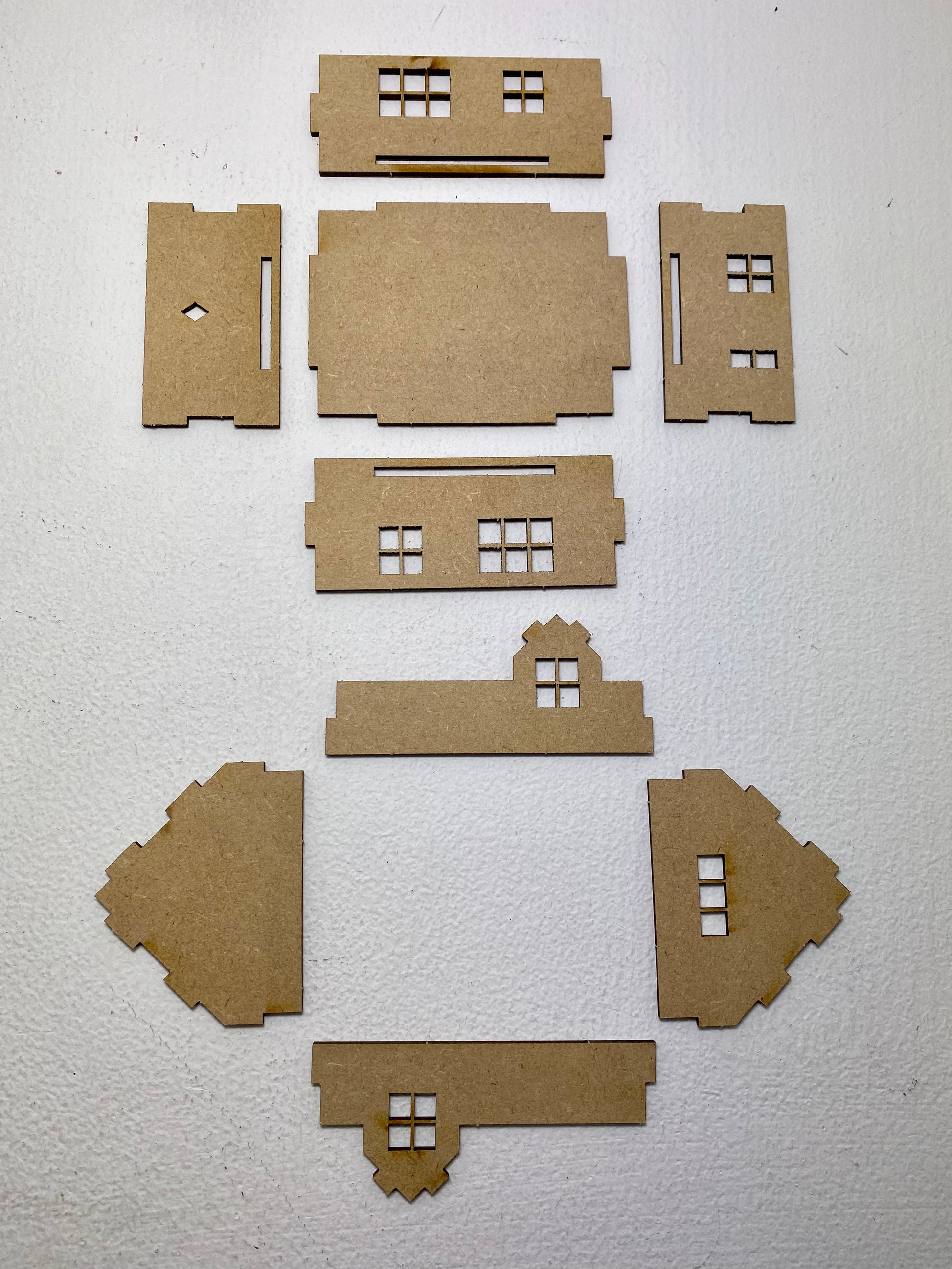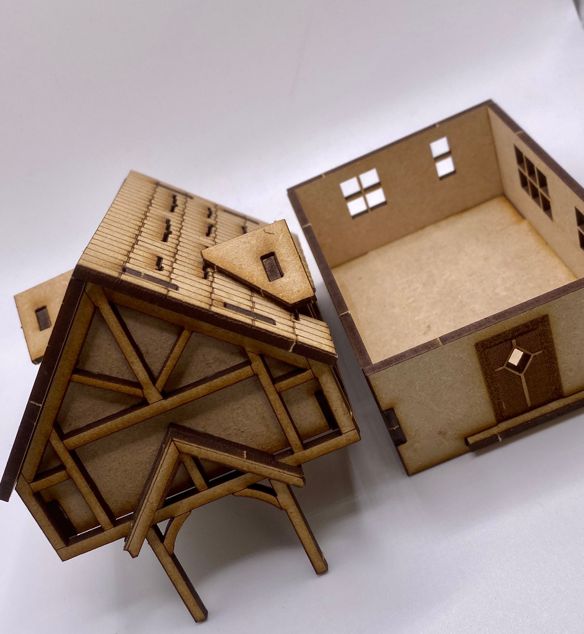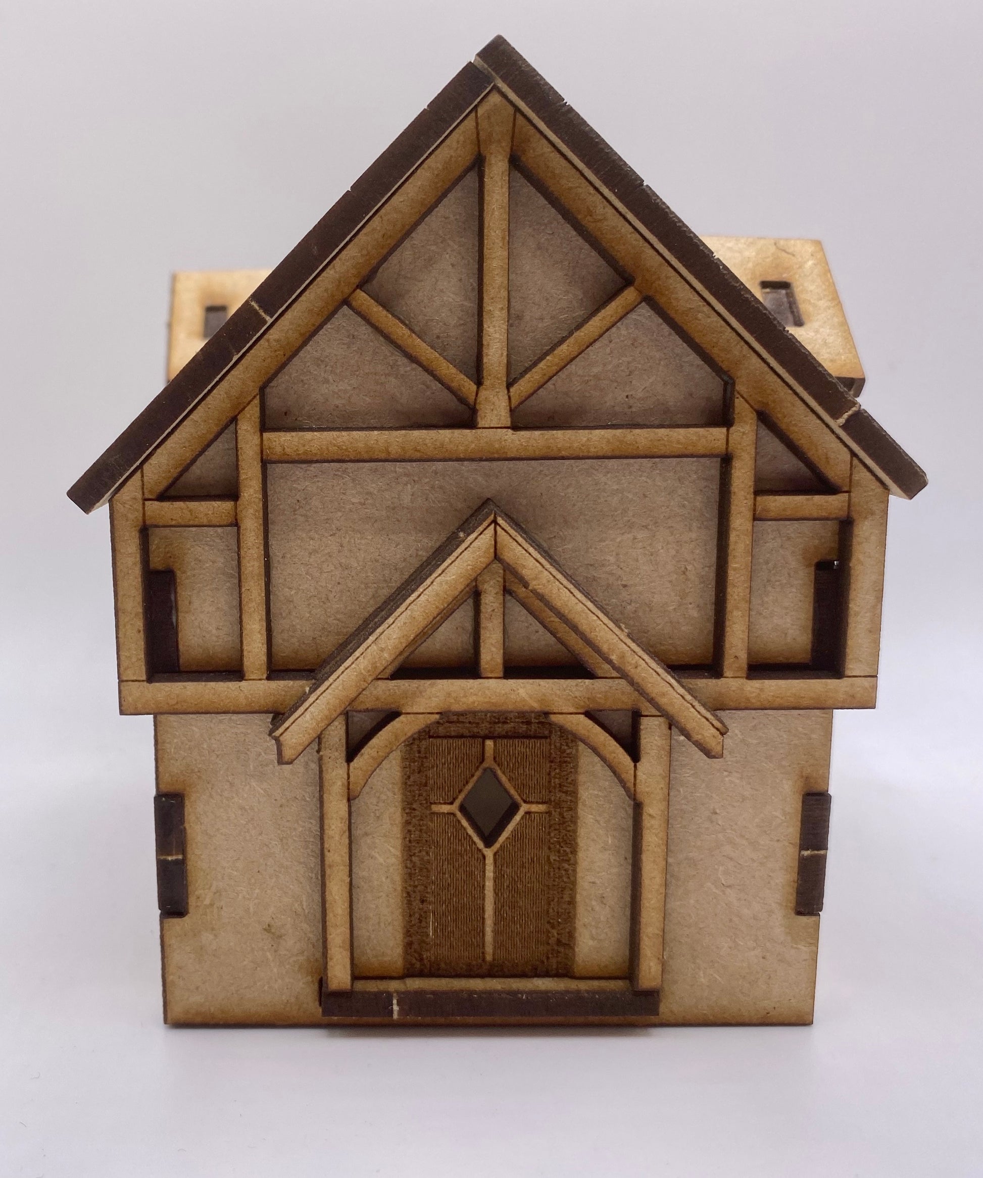 Tudor House 1.5 Storey with Dormer MDF Craft kit. Intricate Engraved detail on the roof and sides.
